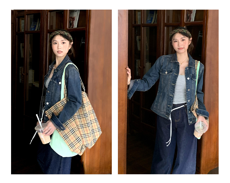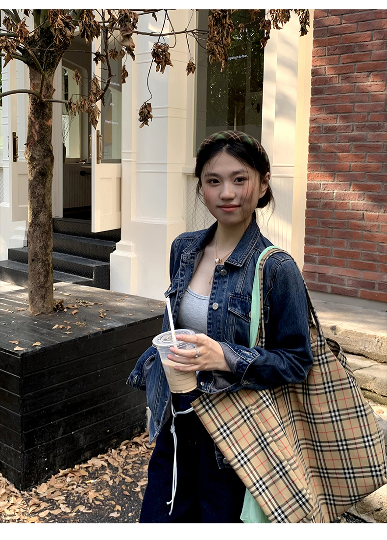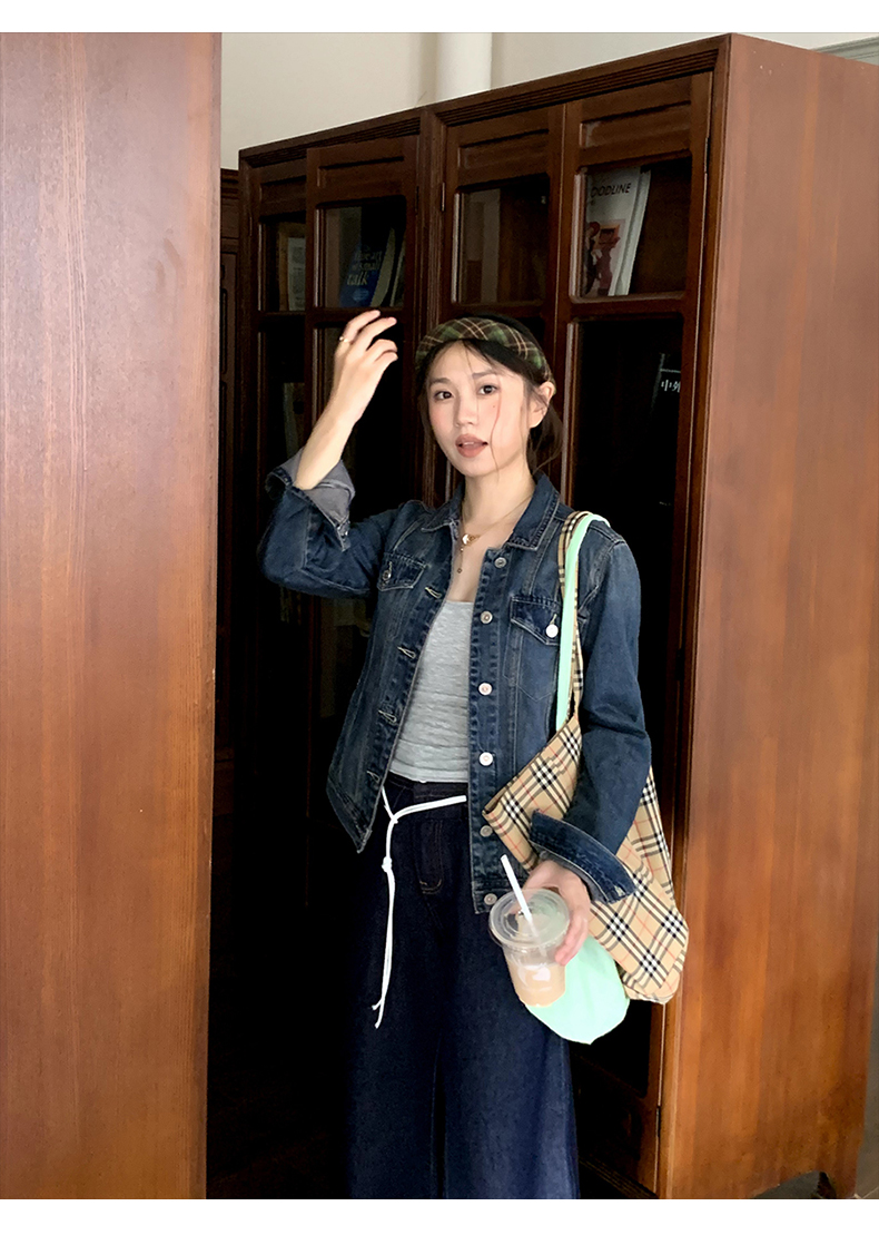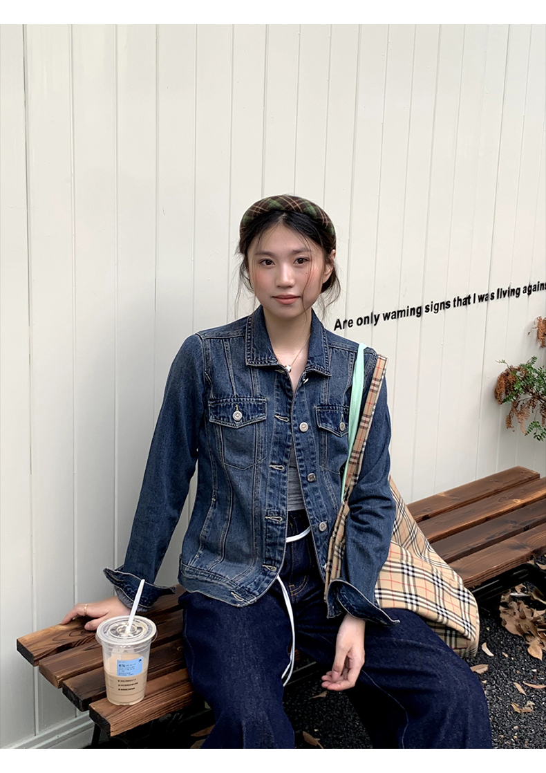 橘子树在哪儿复古正肩软牛仔外套女春季显瘦气质百搭短款夹克上衣
