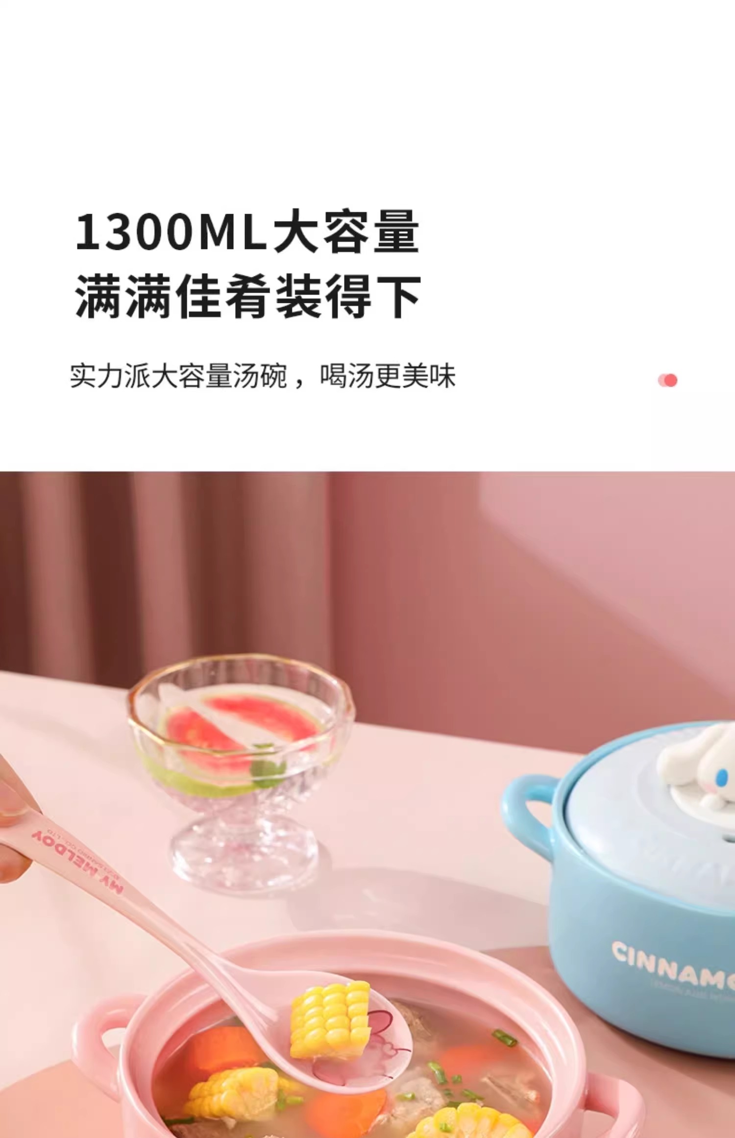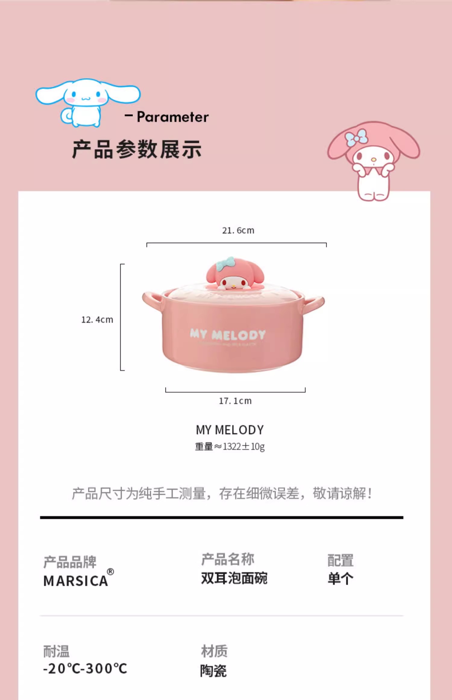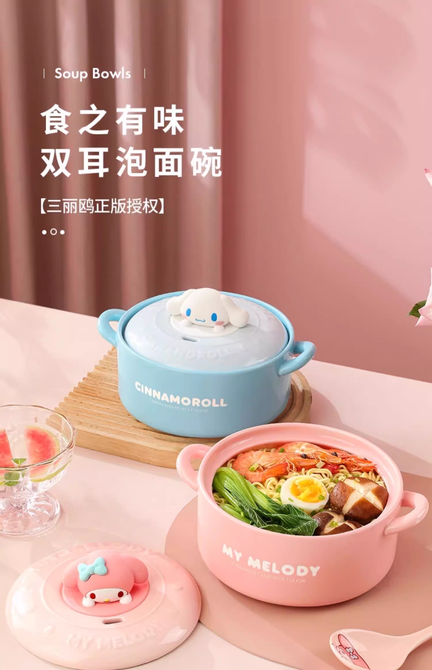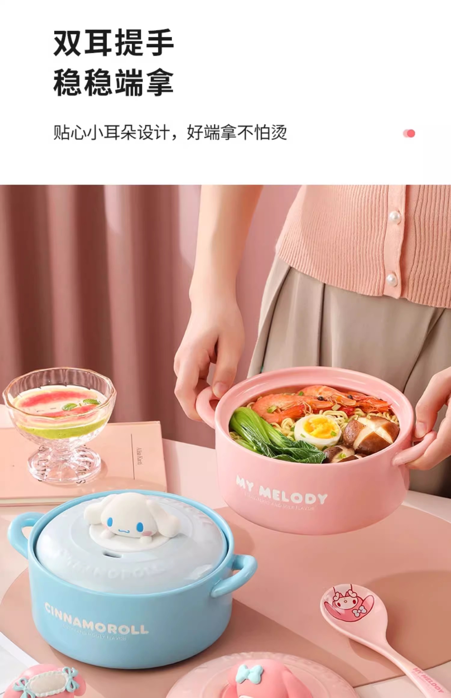 三丽鸥泡面碗陶瓷带盖家用大容量学生个人专用大号可爱方便面汤碗