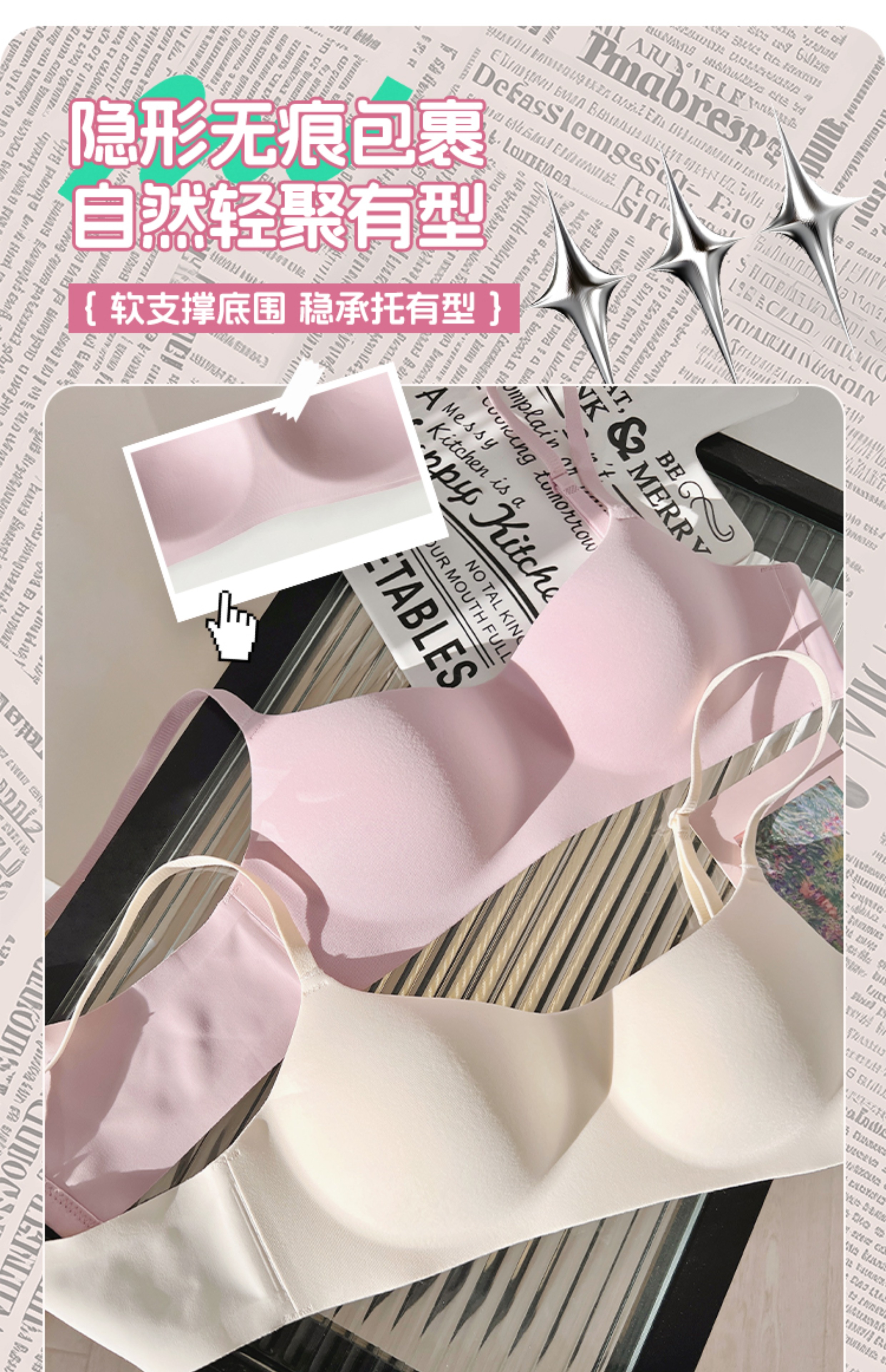 六只兔子一片式无痕内衣女小胸聚拢性感半杯无钢圈软支撑轻薄文胸