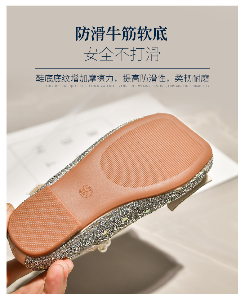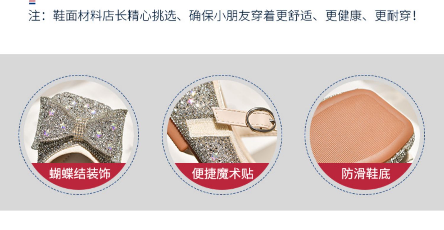 女童爱莎闪闪公主鞋2025新款春秋季儿童水晶鞋女宝宝单鞋舞蹈皮鞋