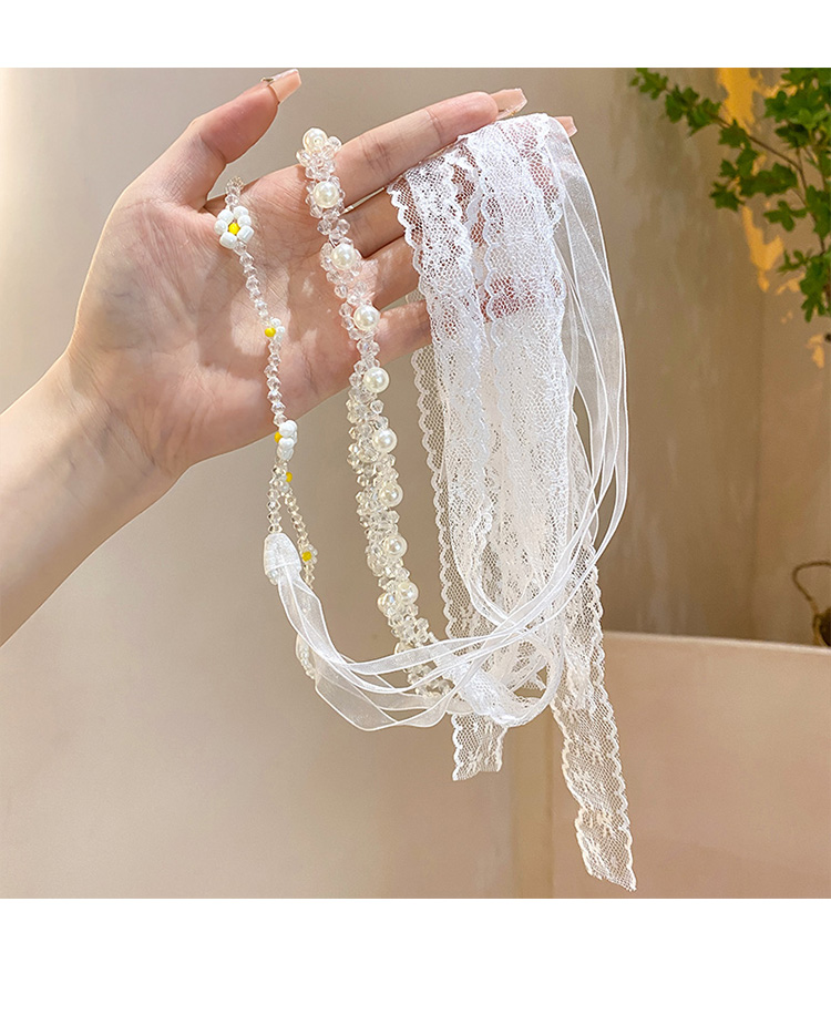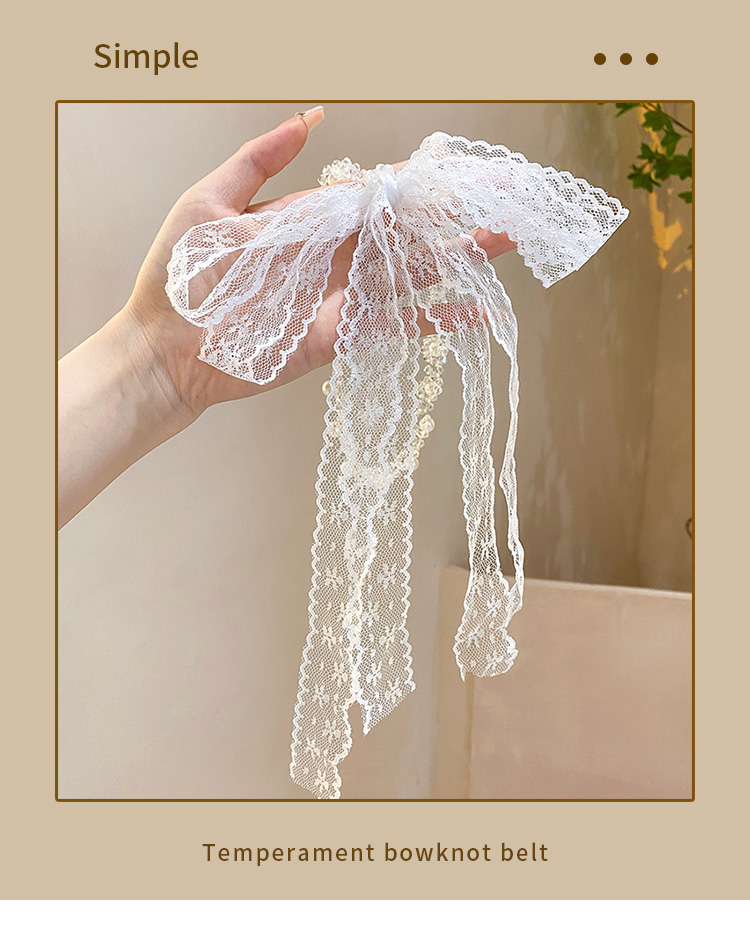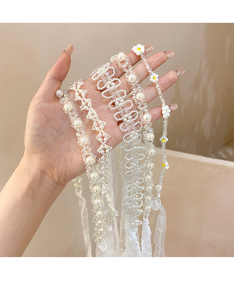 婴儿蝴蝶结发带儿童水晶珍珠飘带女童2024年新款网红网纱宝宝发饰