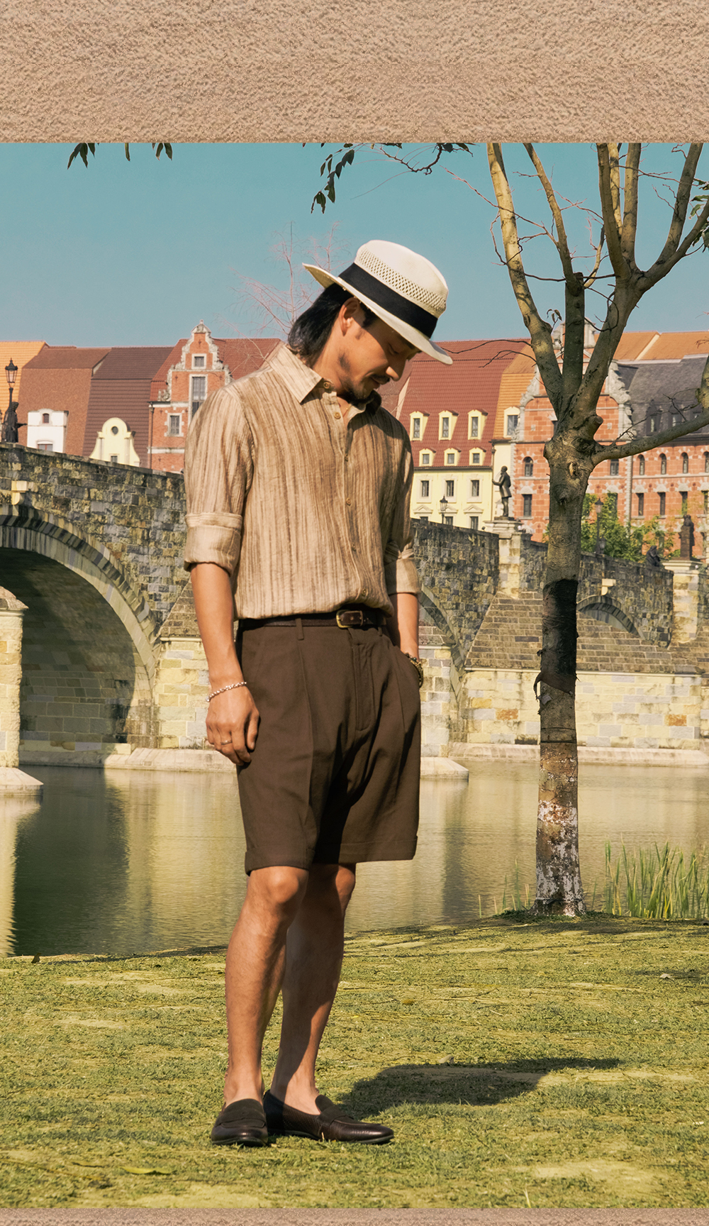 SOARIN美式复古亚麻短裤男 夏季透气薄款直筒休闲百搭西装5分裤子