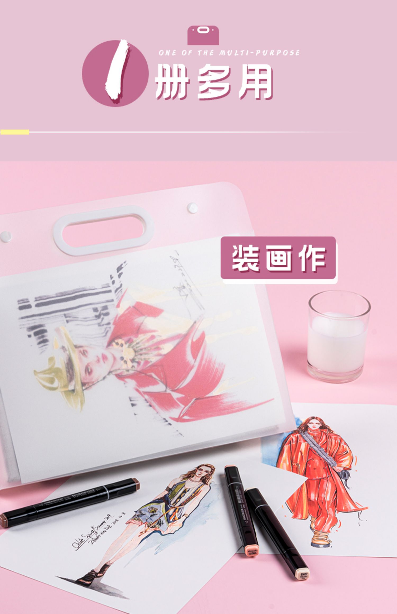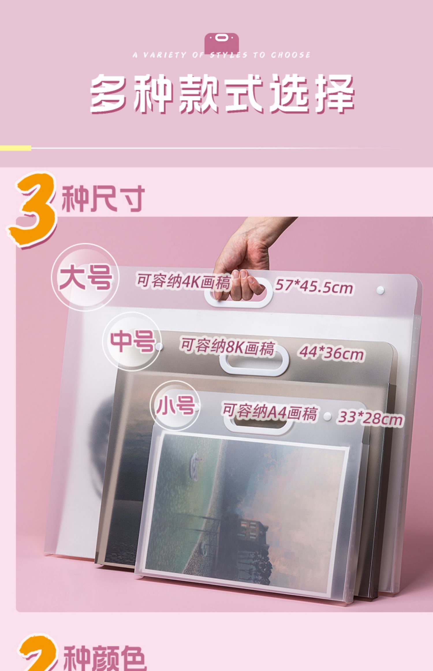 4K画册收纳美术生儿童画纸画袋画稿画夹手提袋美术作品集8K素描水粉纸奖状收纳袋纸海报a3文件夹绘画画纸A4