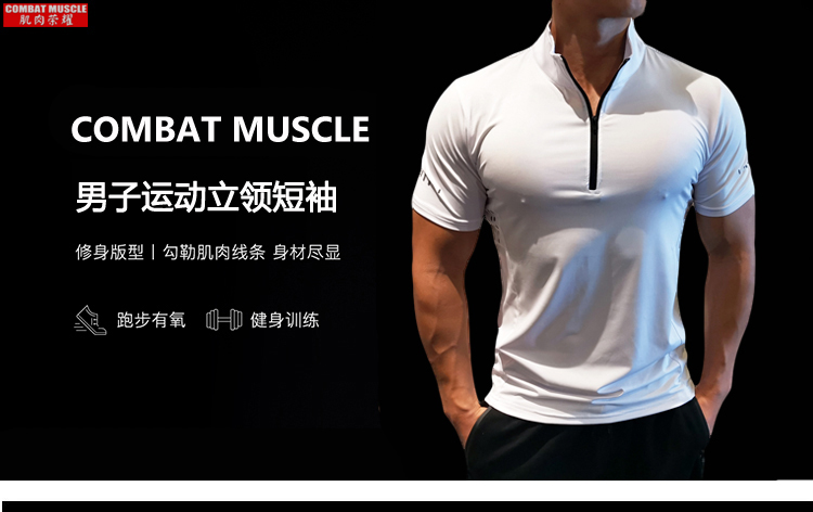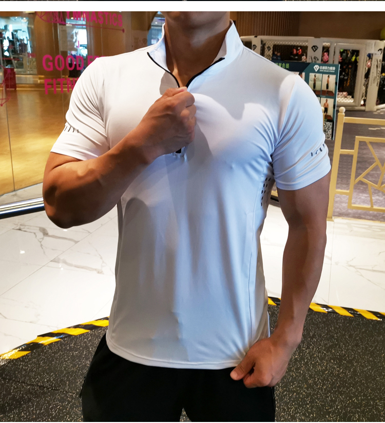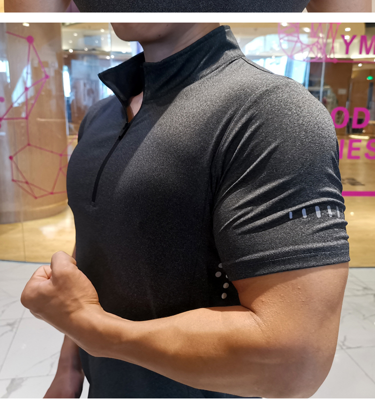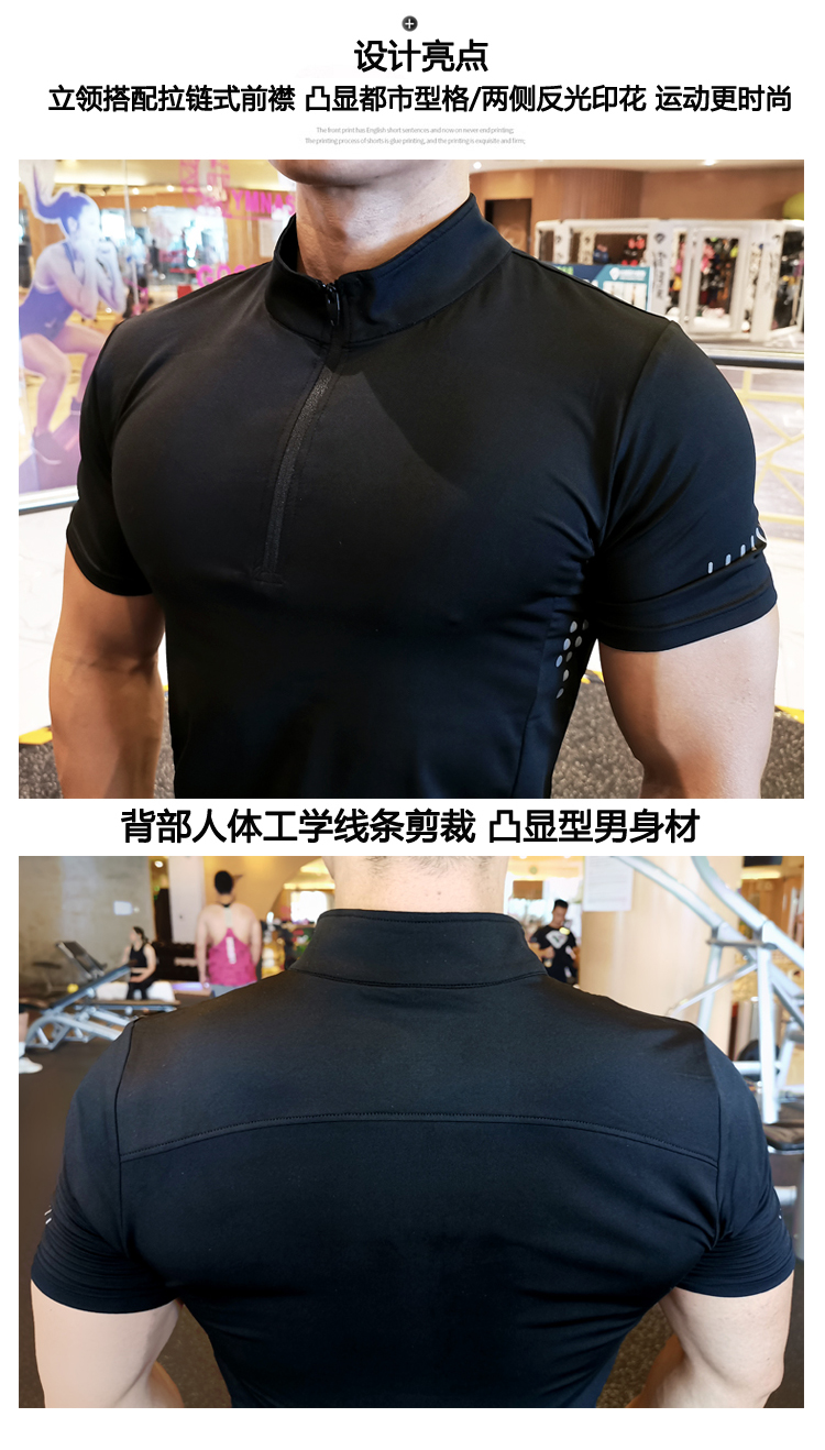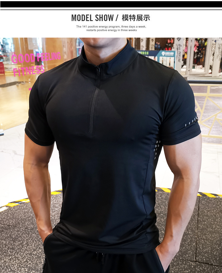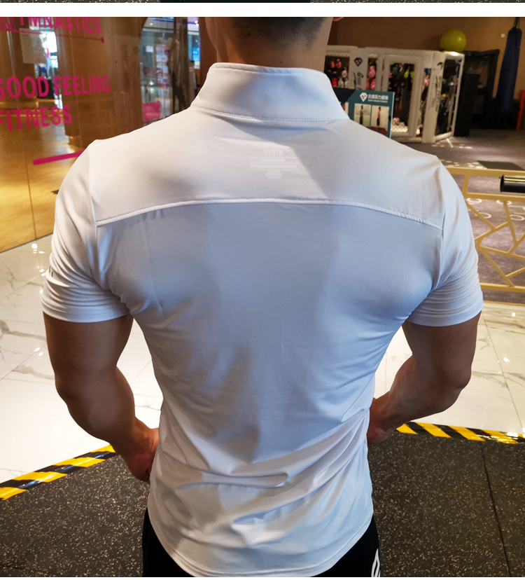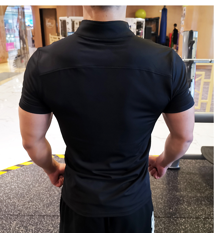 健身运动POLO衫男夏立领短袖速干高弹透气紧身衣私人教练工服定制