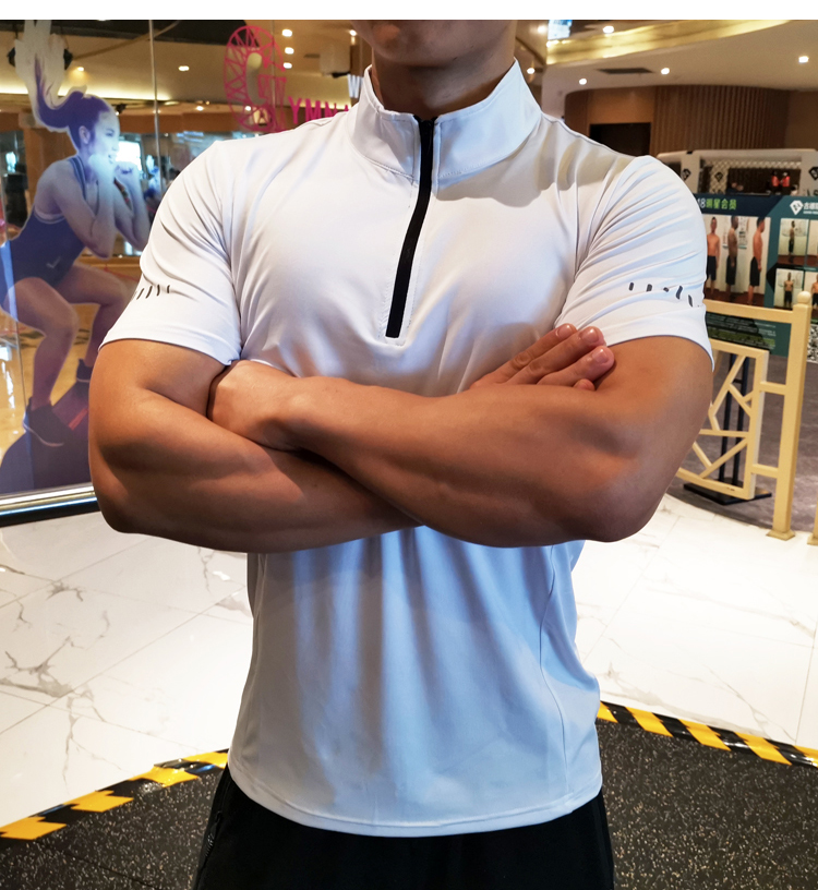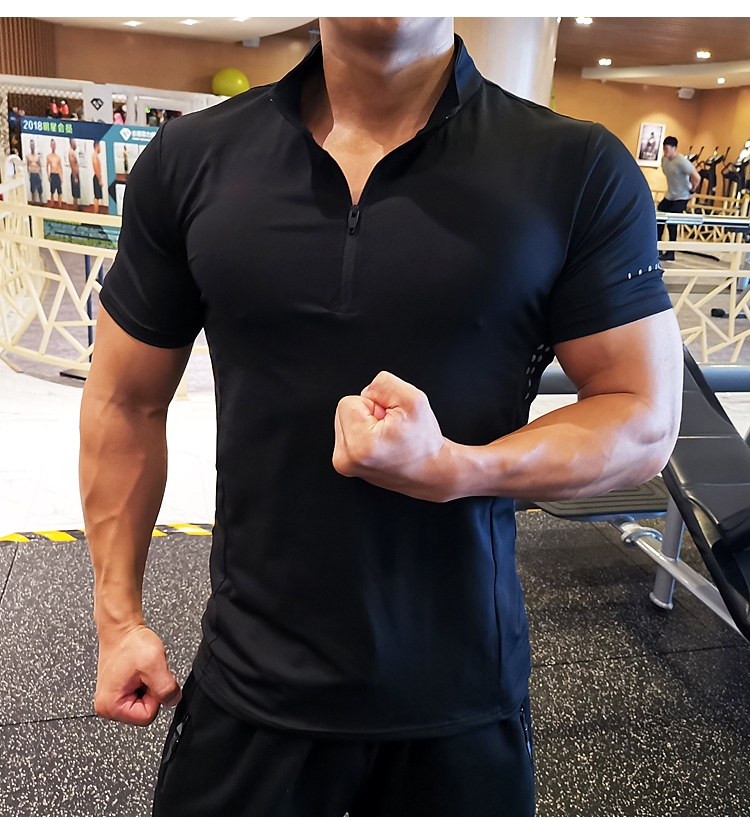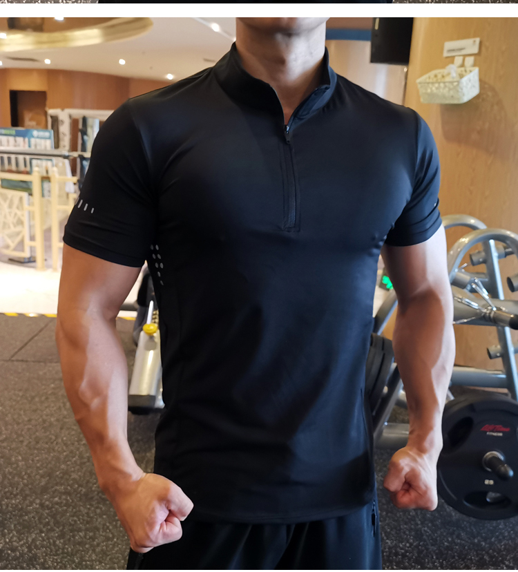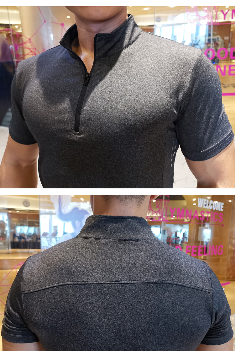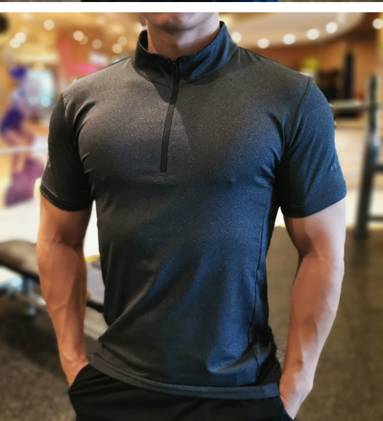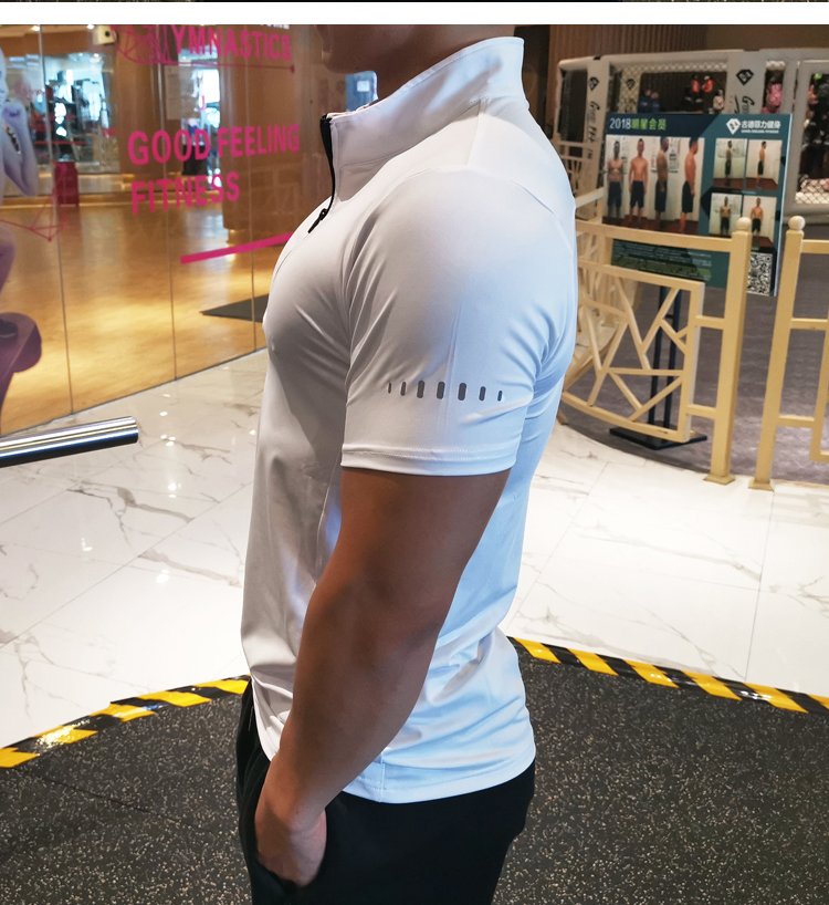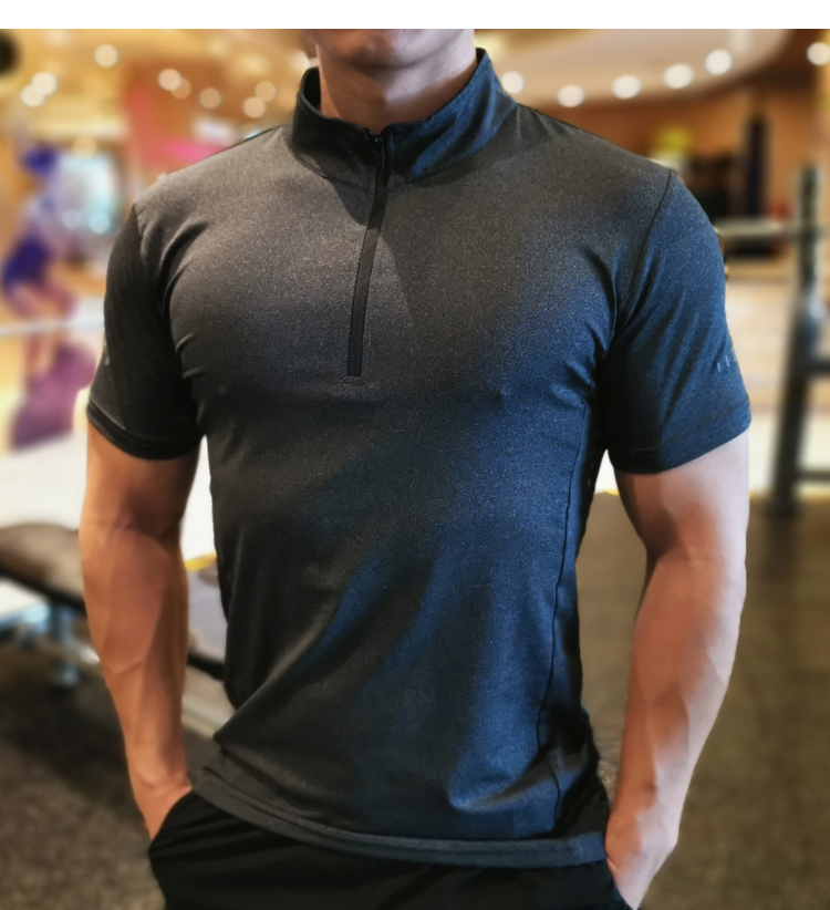 健身运动POLO衫男夏立领短袖速干高弹透气紧身衣私人教练工服定制