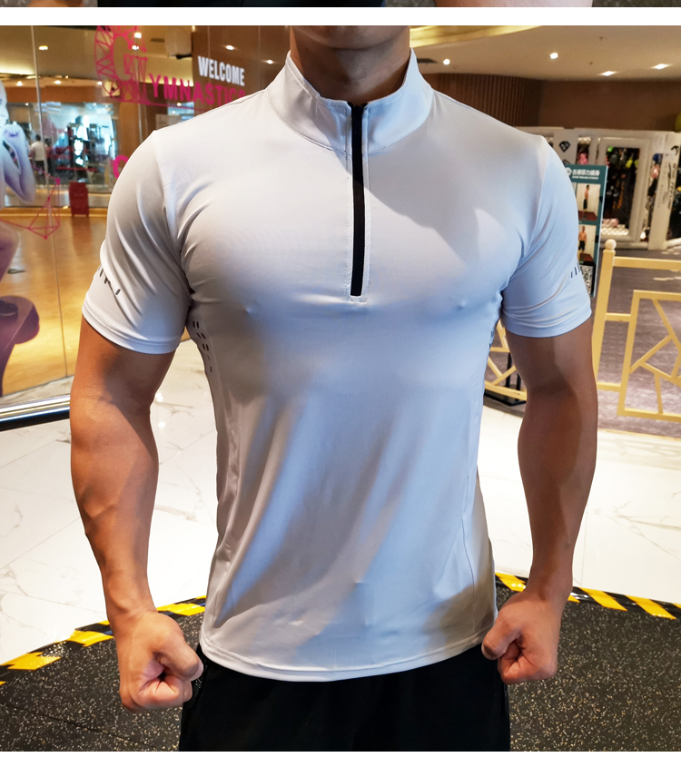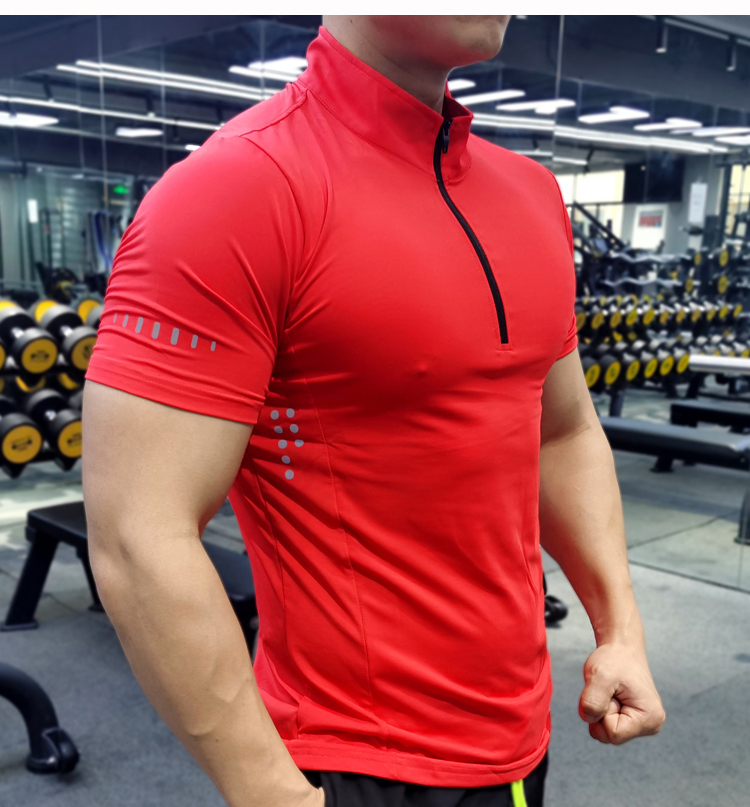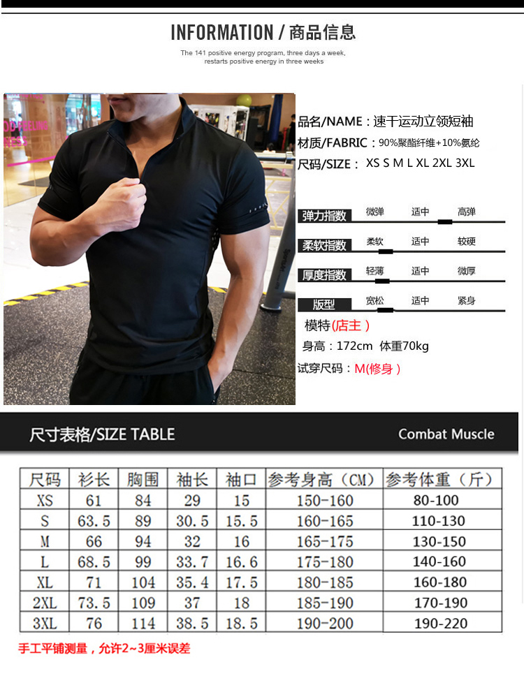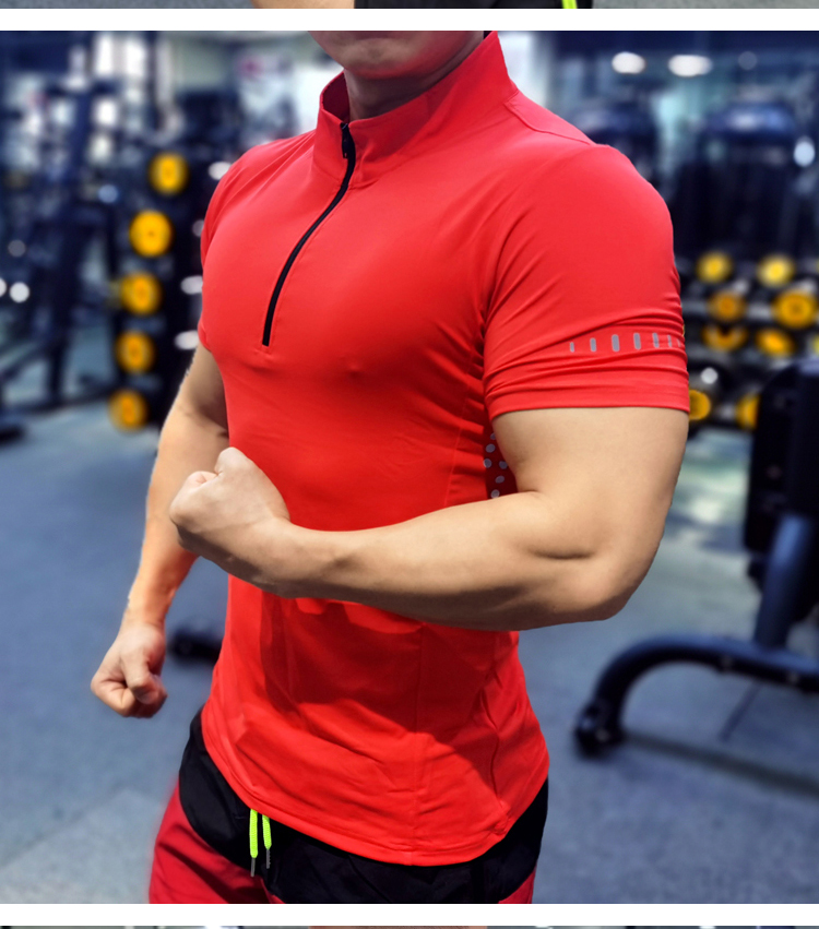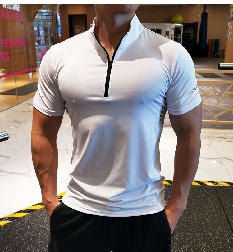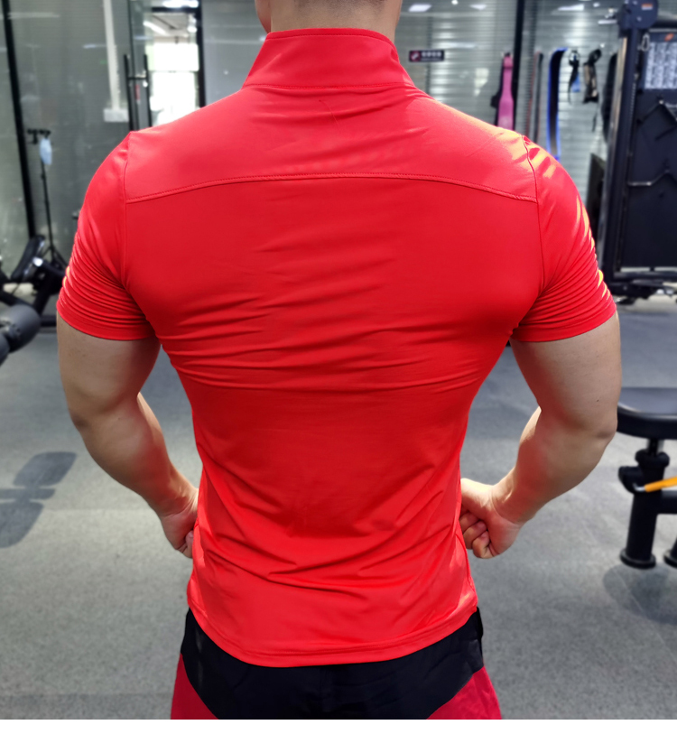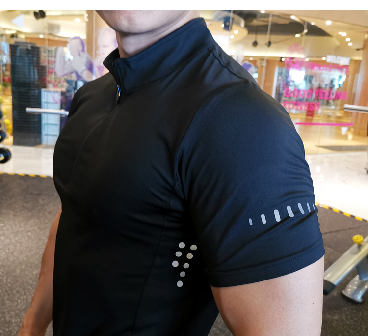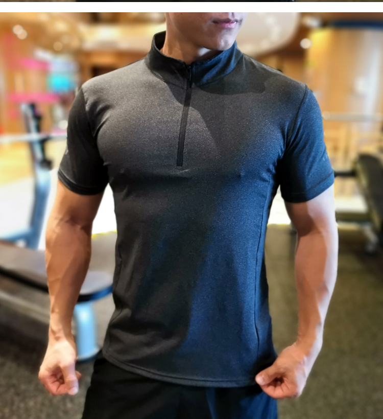 健身运动POLO衫男夏立领短袖速干高弹透气紧身衣私人教练工服定制