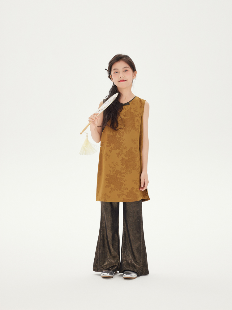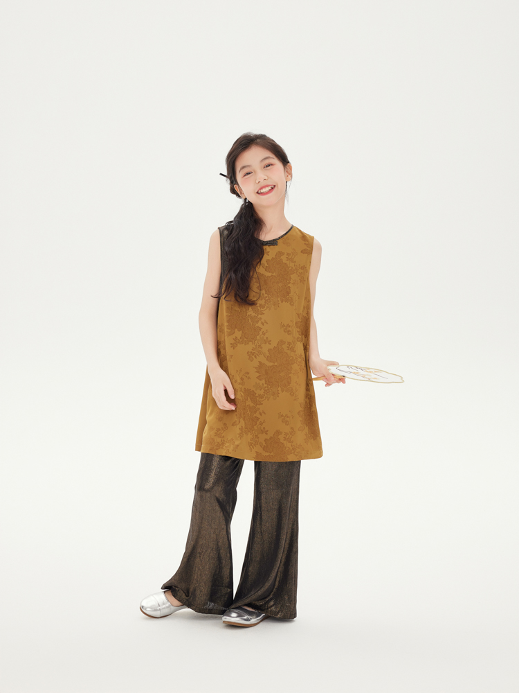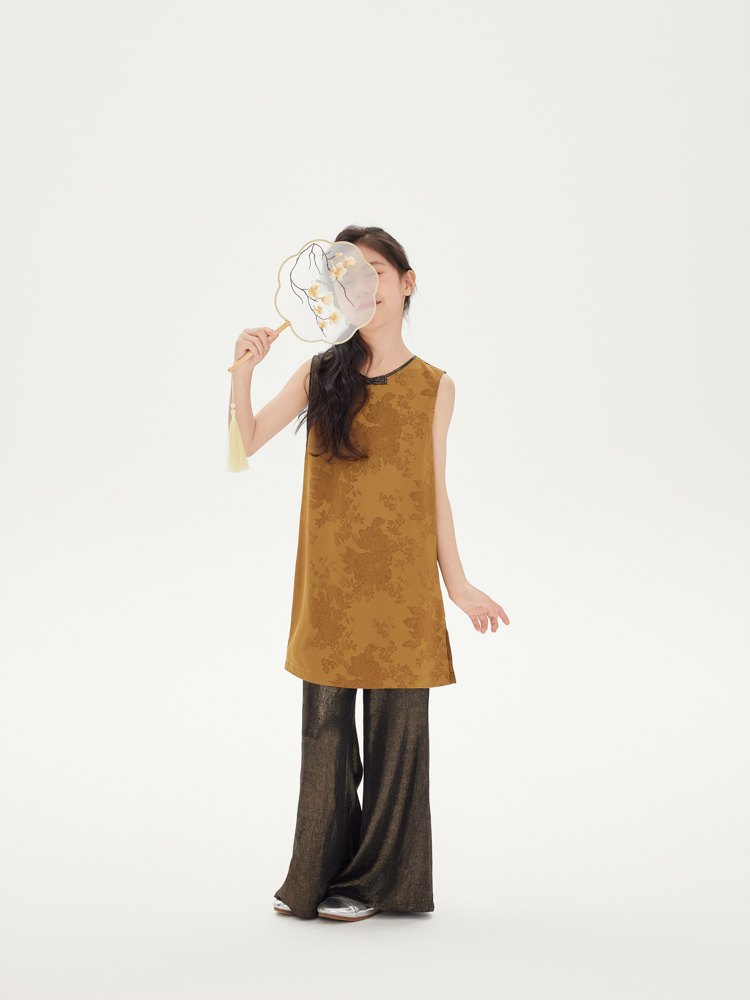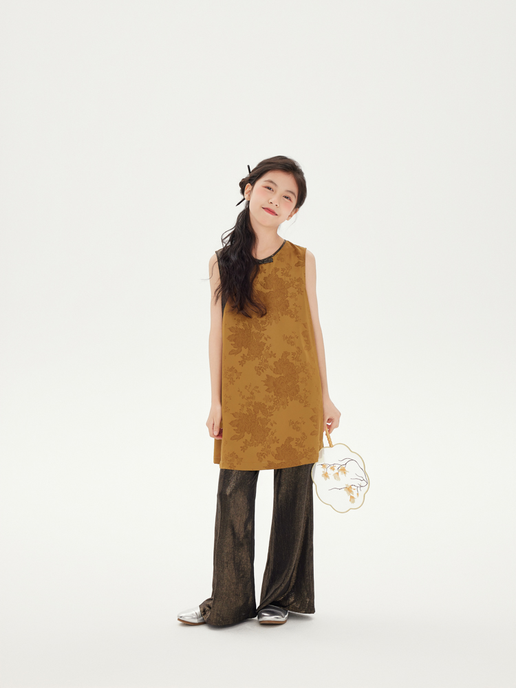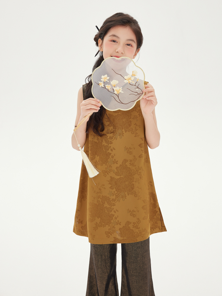leobaby女童连衣裙夏季儿童新中式烫金提花无袖裙中大童洋气裙子