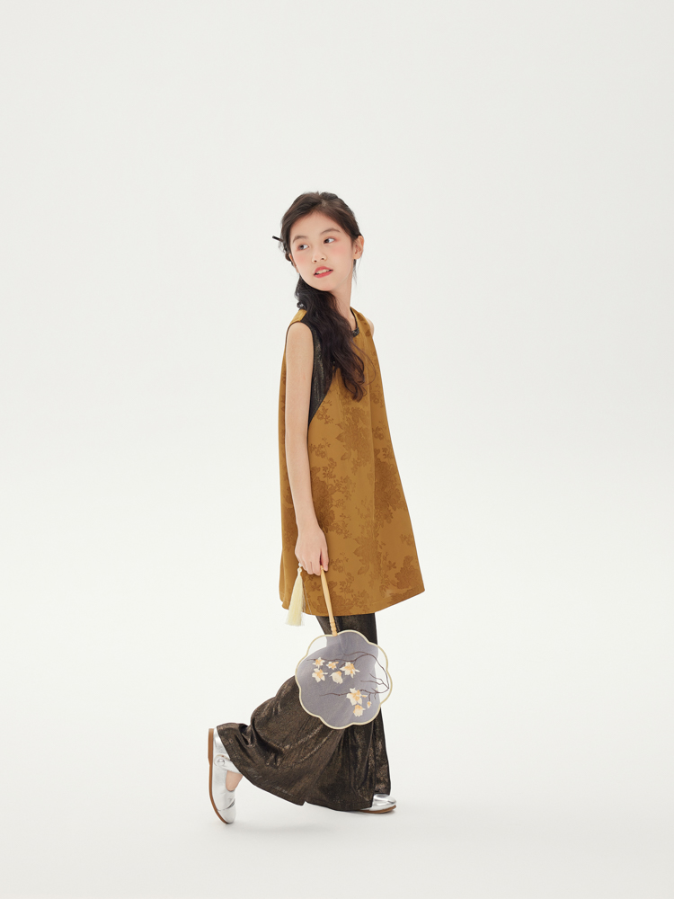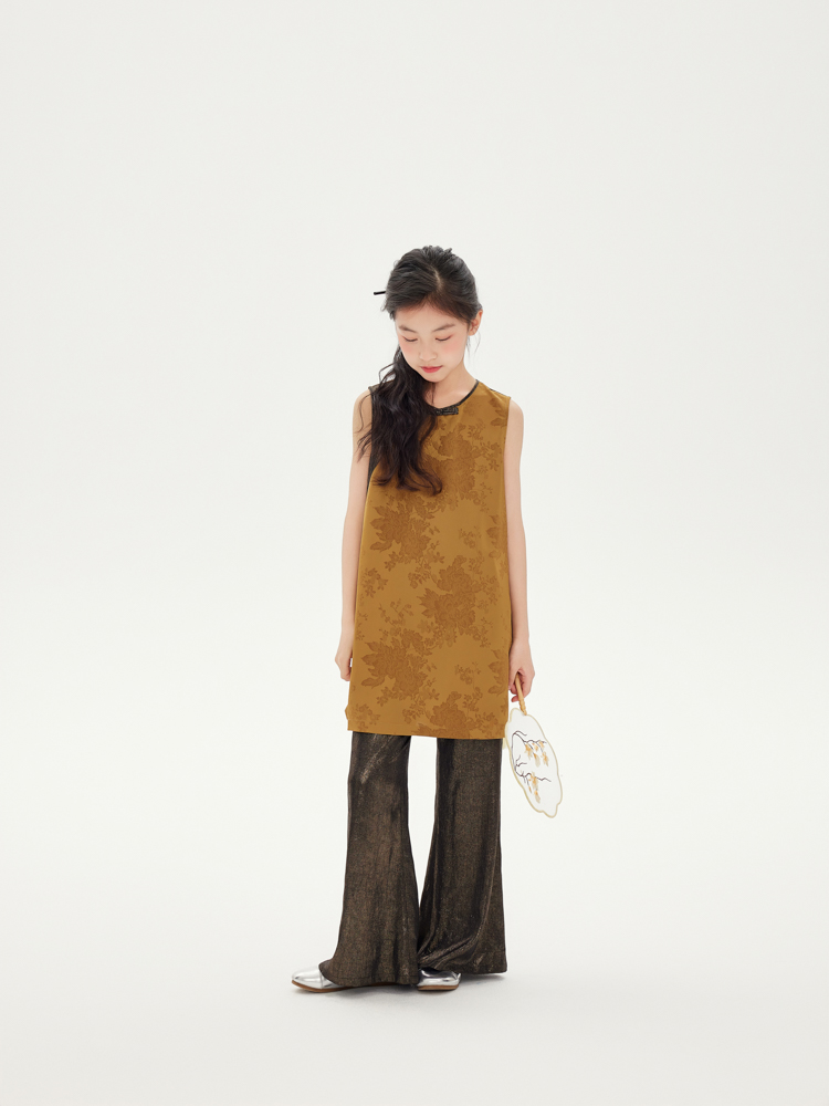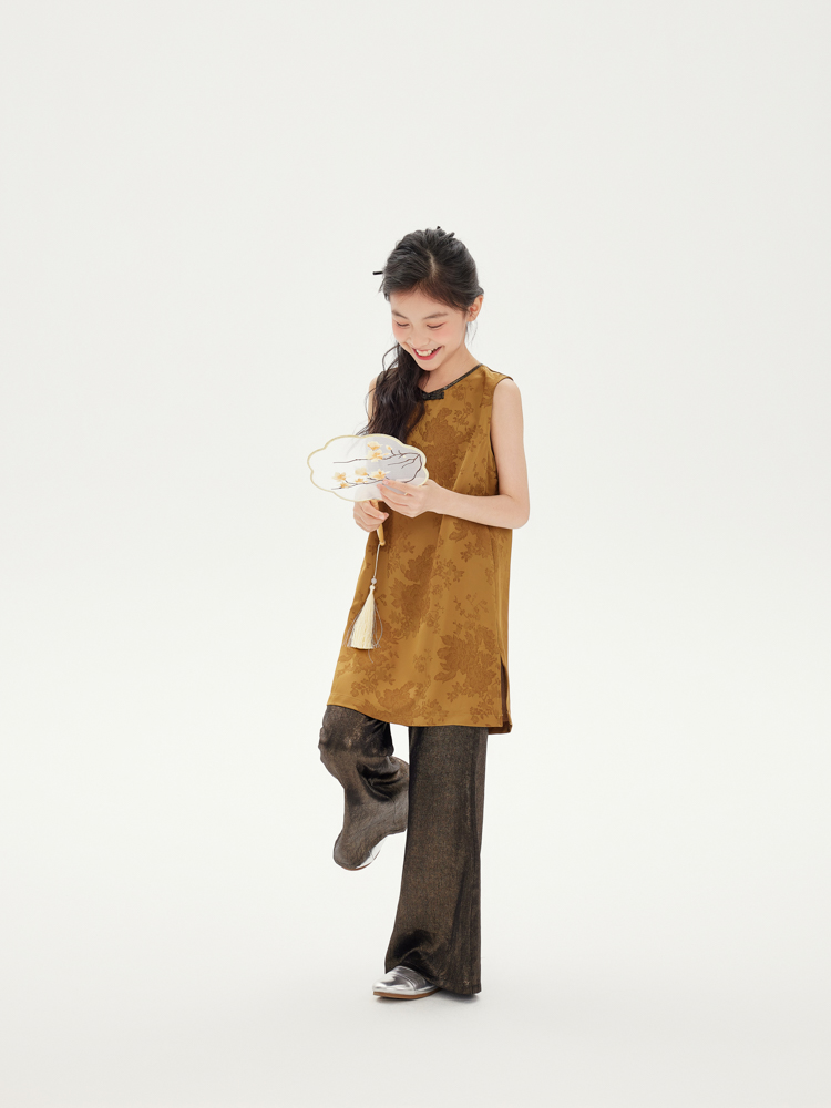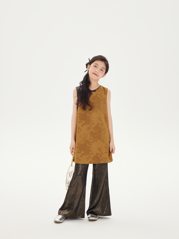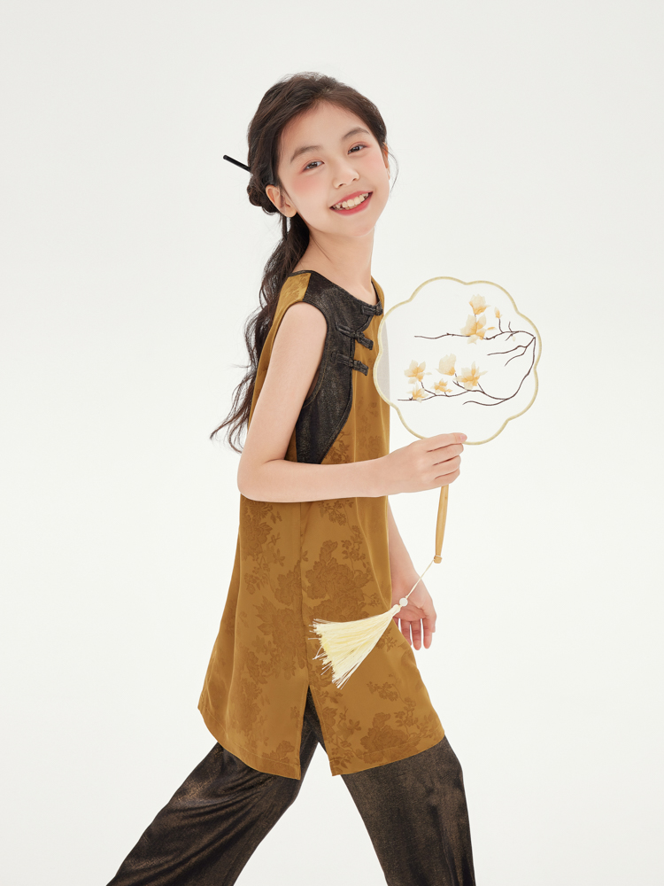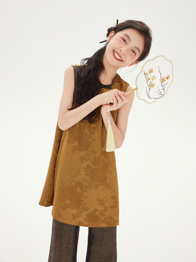 leobaby女童连衣裙夏季儿童新中式烫金提花无袖裙中大童洋气裙子