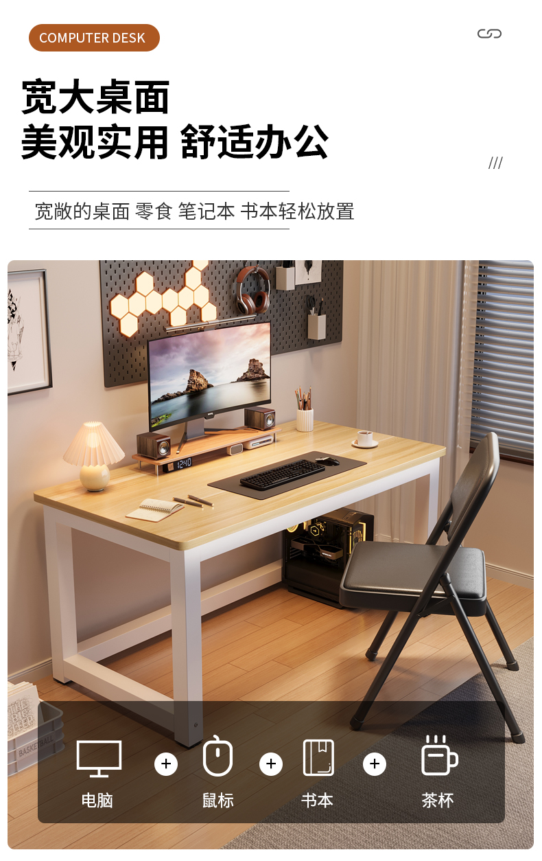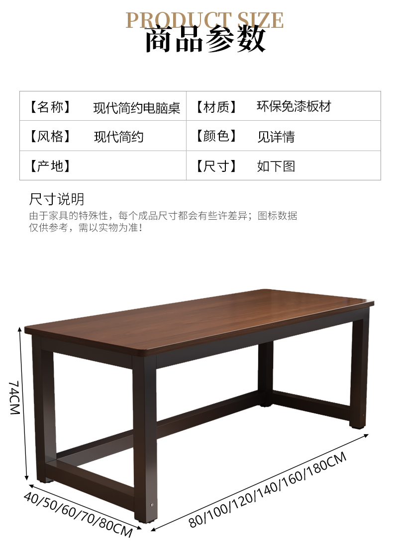 桌子电脑桌台式简易出租屋卧室书桌长方形工作台家用办公桌学习桌