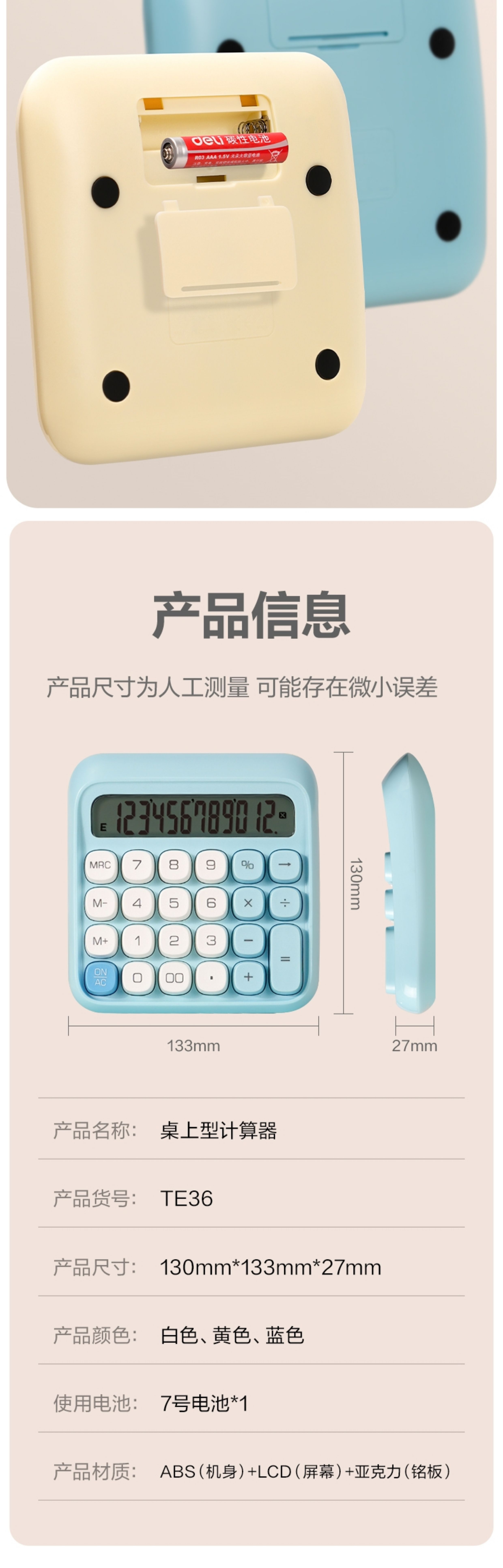 得力彩色计算器时尚拼色电脑键盘计算器办公财务会计商用计算机