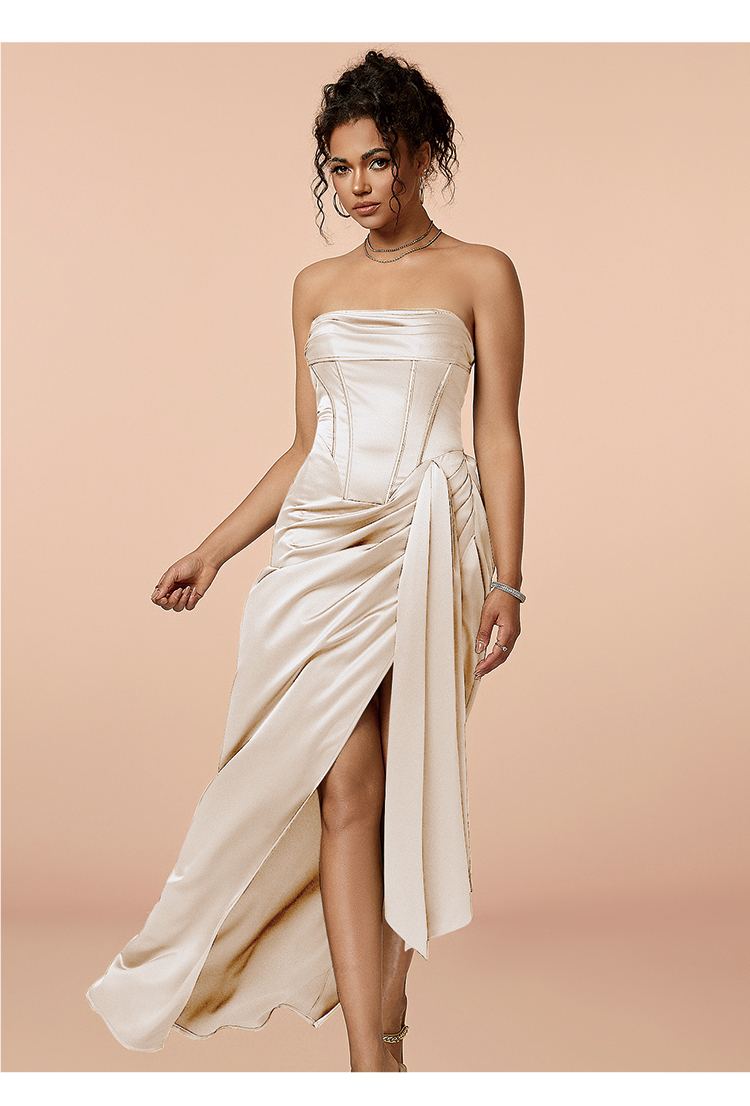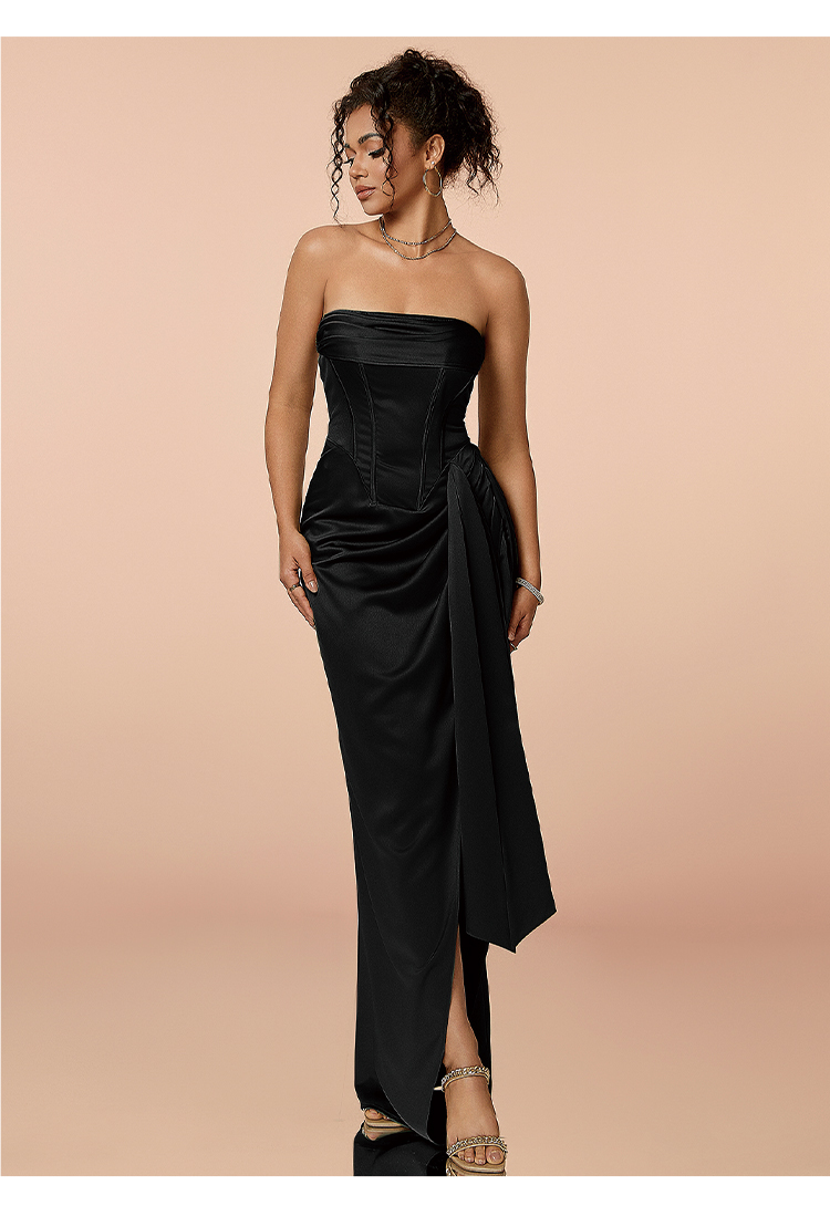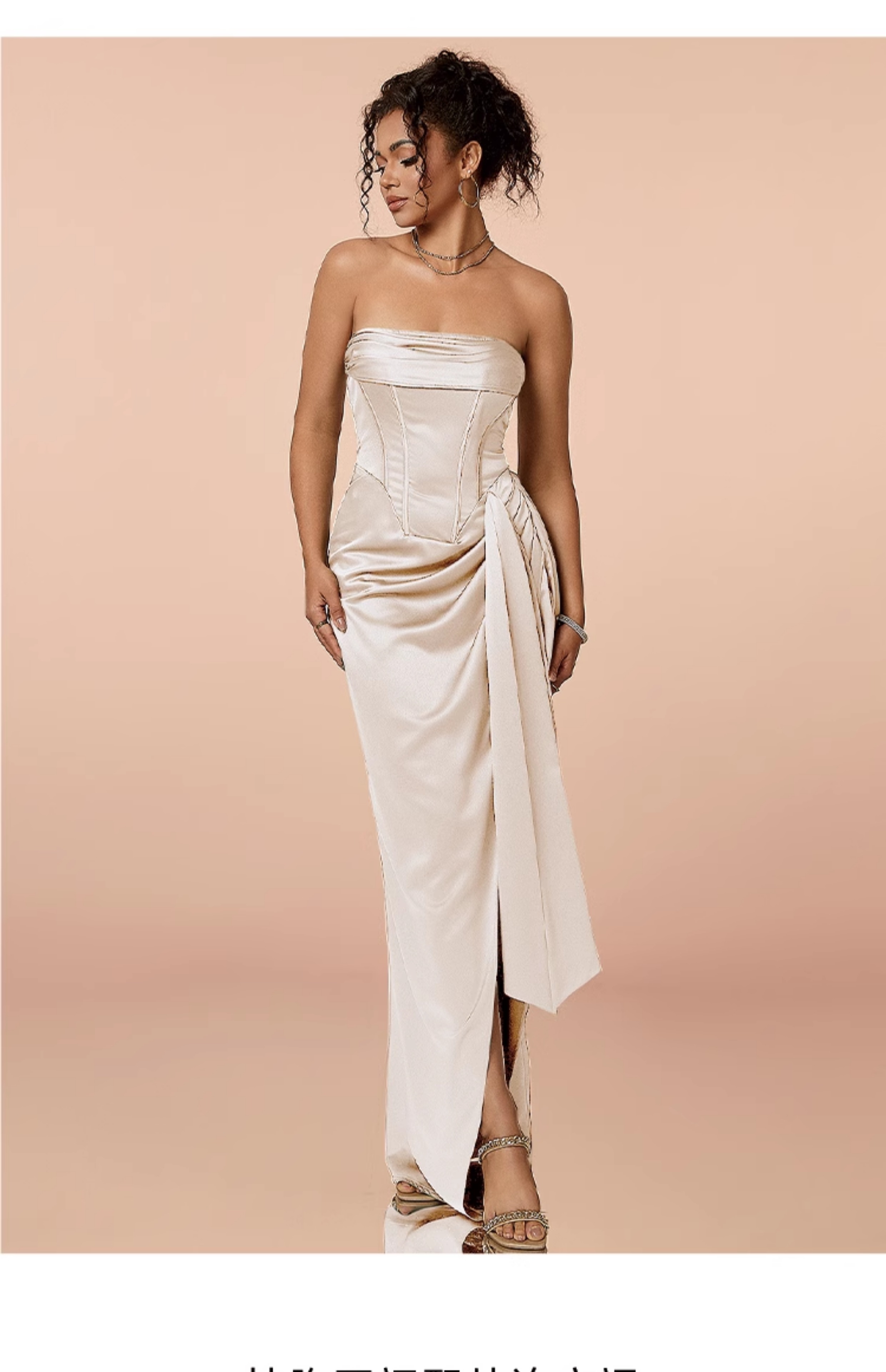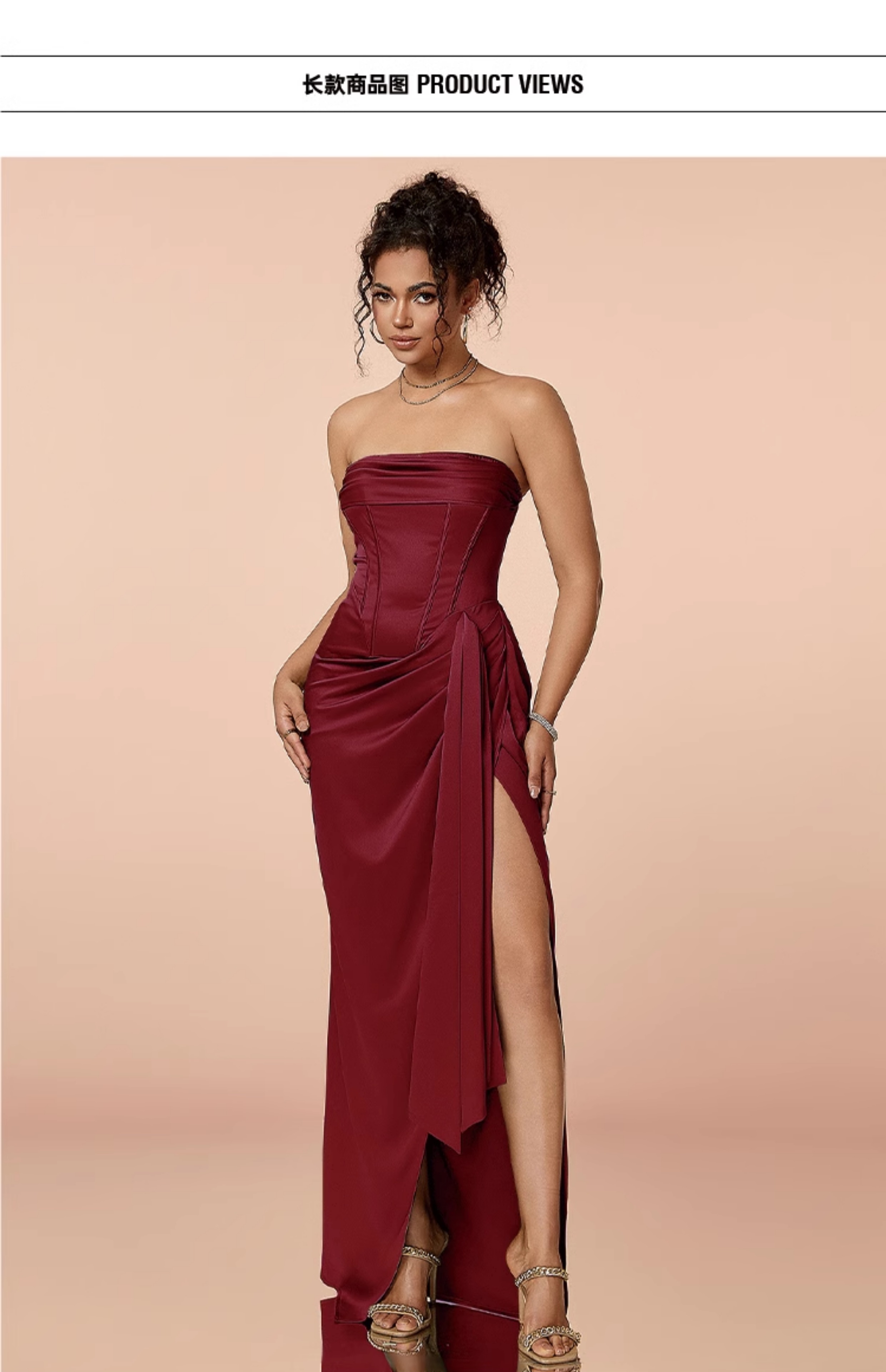 DecodeDiva叛逆千金红色抹胸连衣裙女晚宴年会性感辣妹晚礼服长裙