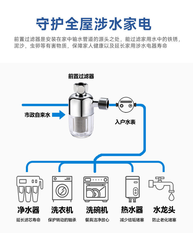 电热水器前置过滤器滤芯家用自来水洗衣机进水净水器免换芯阻垢器