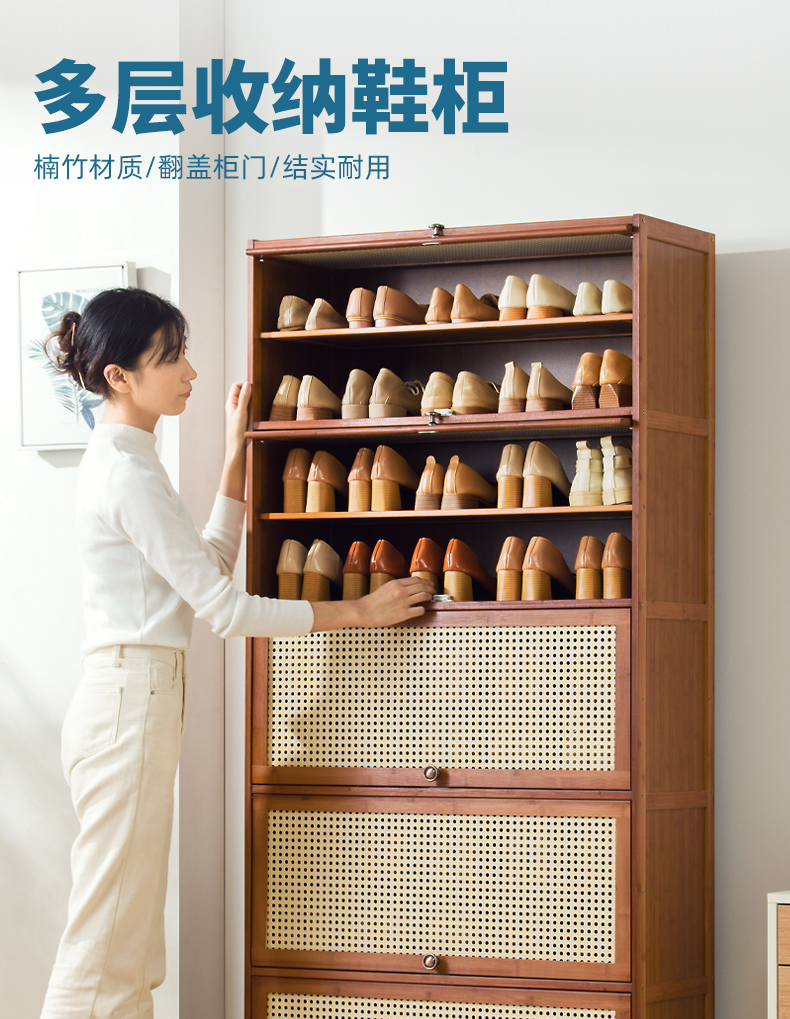 仿藤编鞋柜家用门口简易鞋架子经济型放室内好看收纳多层防尘宿舍
