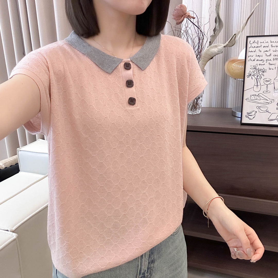大码女装今年流行漂亮小衫翻领冰丝短袖T恤女夏宽松遮肚洋气上衣