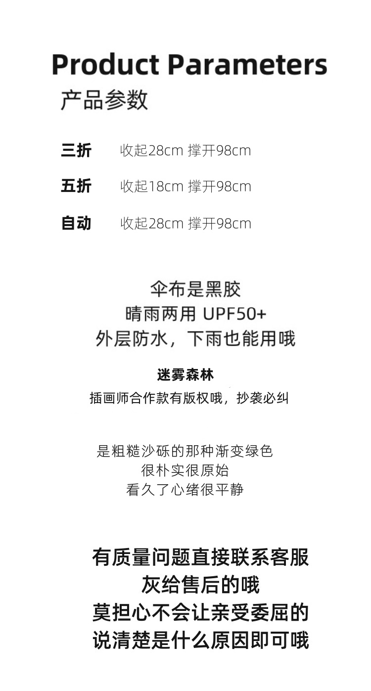 haru迷雾森林晴雨伞两用防晒防紫外线便携遮阳折叠自动小巧太阳伞