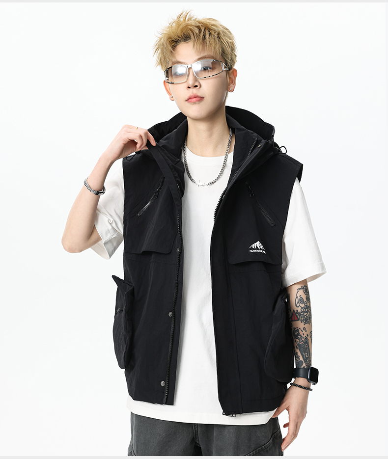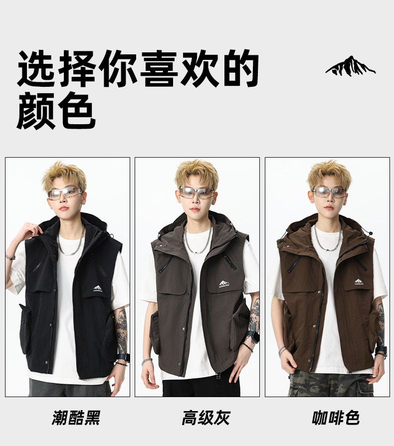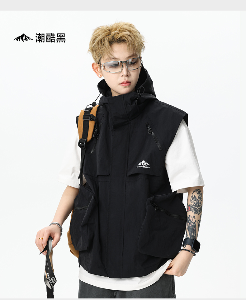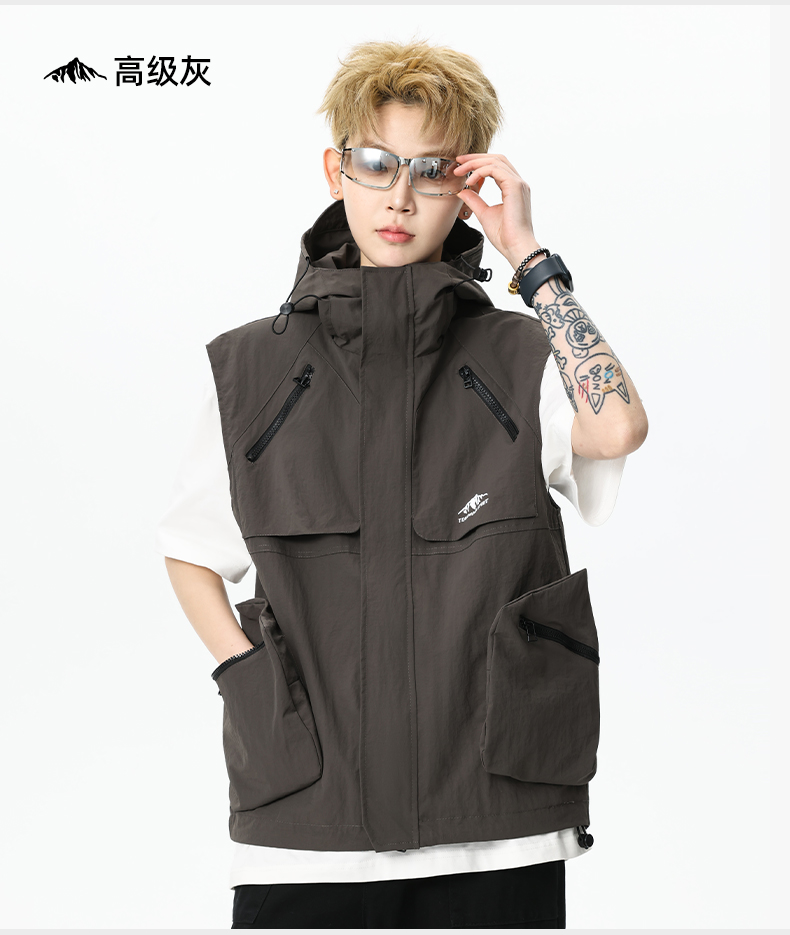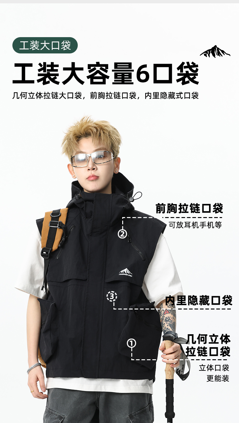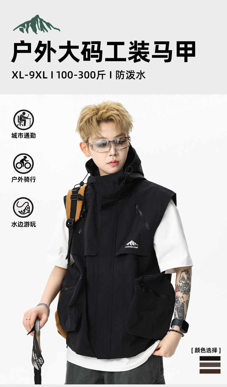 多口袋马甲男夏季连帽工装坎肩无袖背心男士胖子加肥加大大码男装