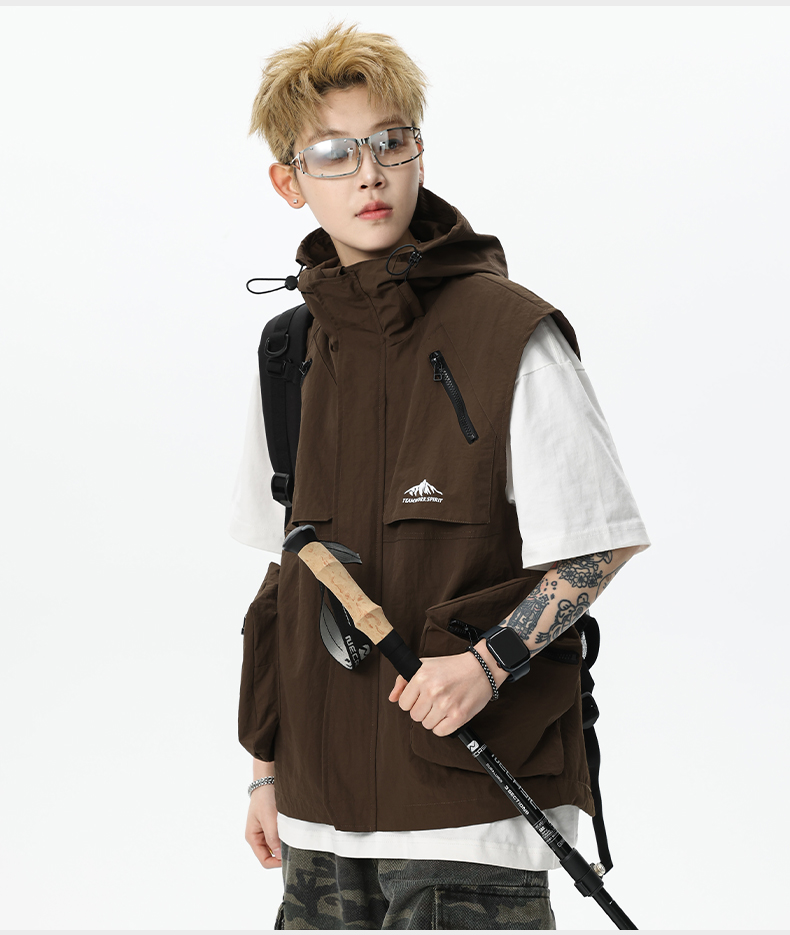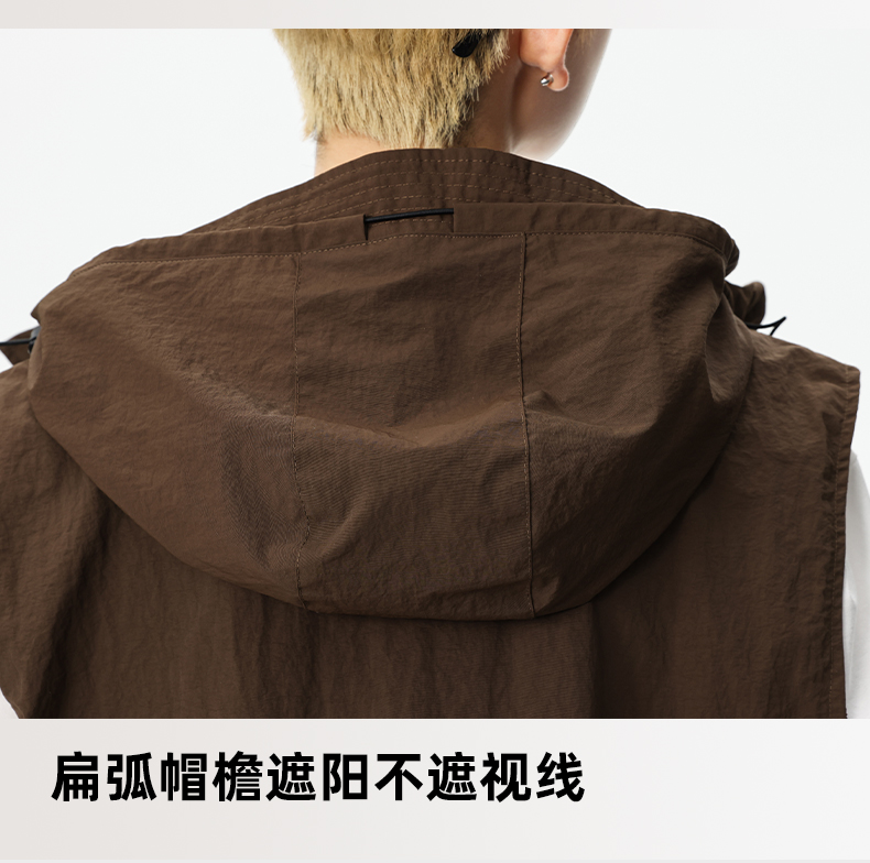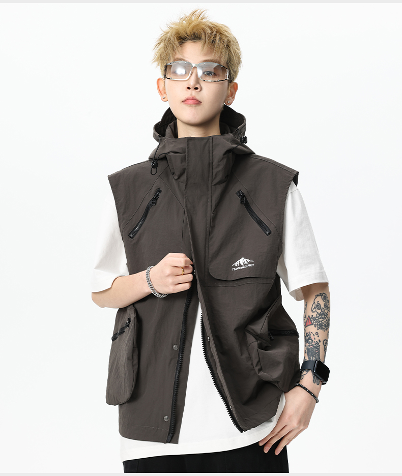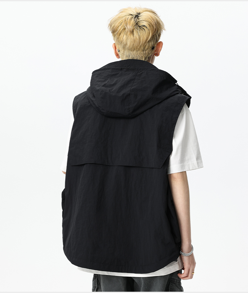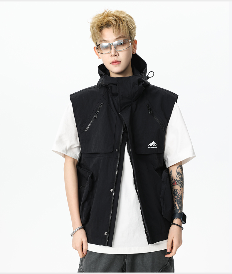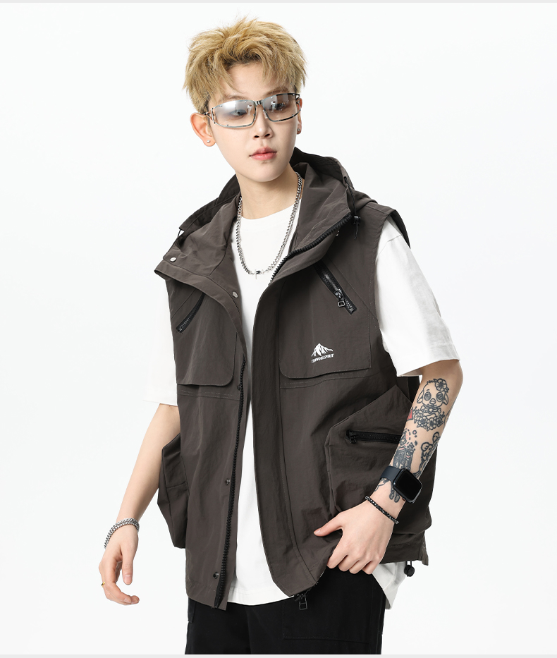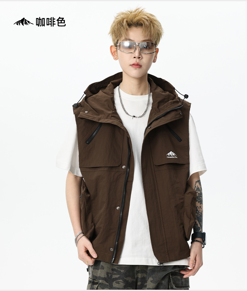 多口袋马甲男夏季连帽工装坎肩无袖背心男士胖子加肥加大大码男装