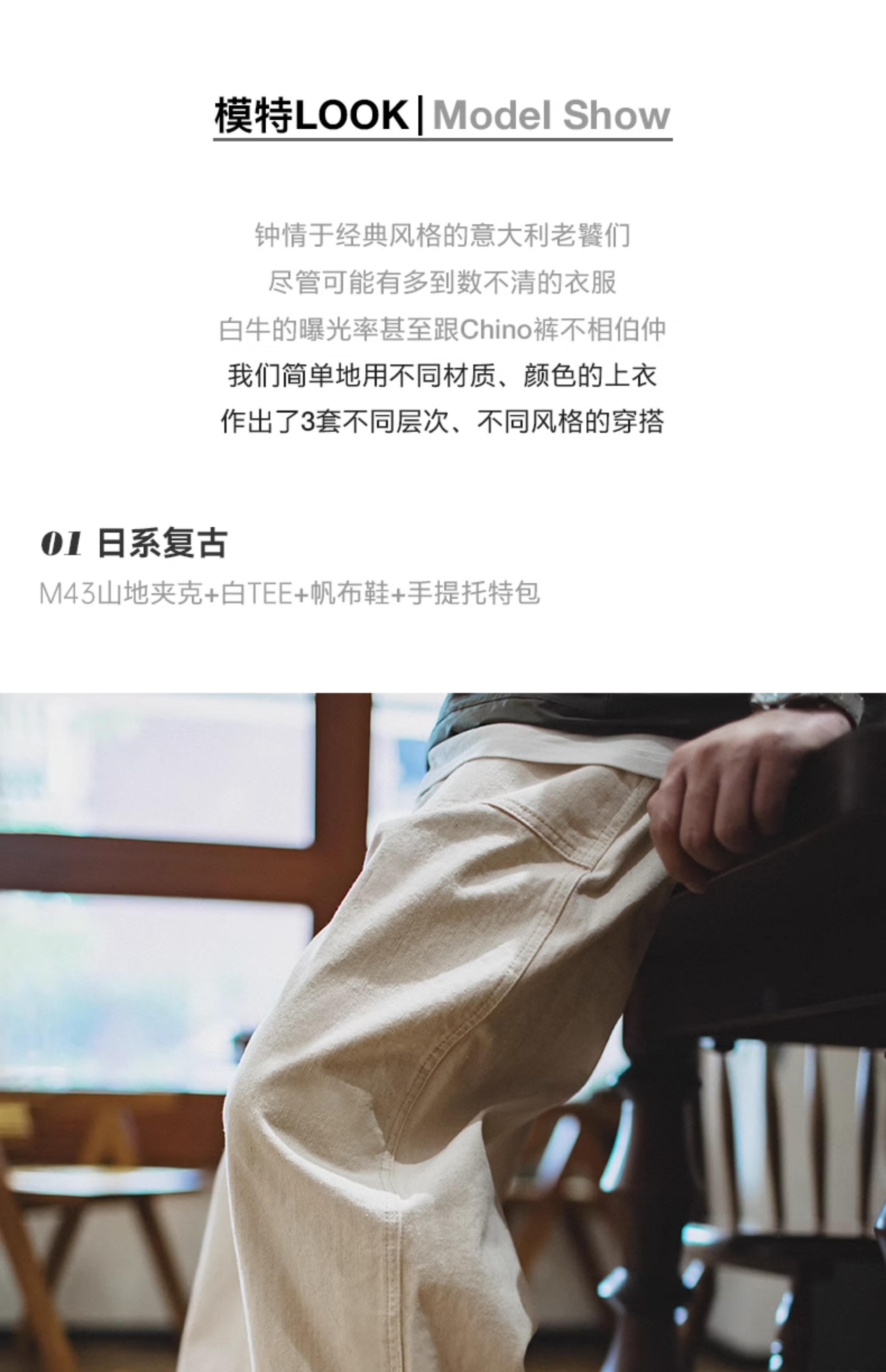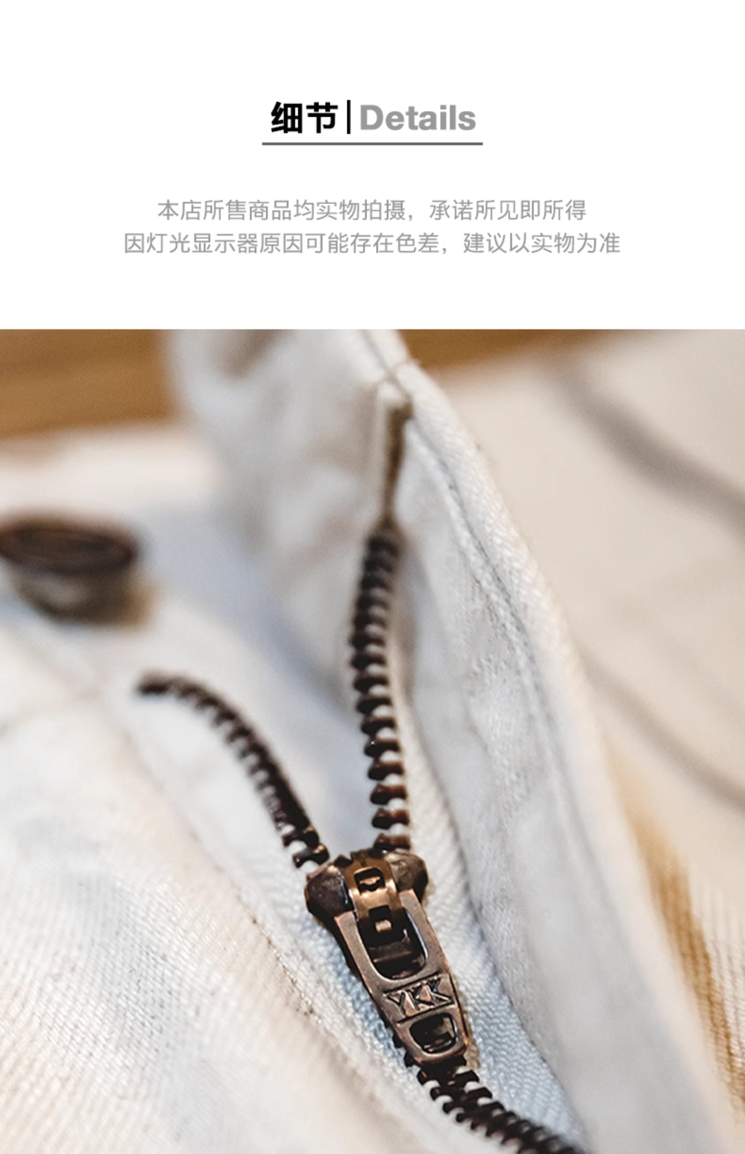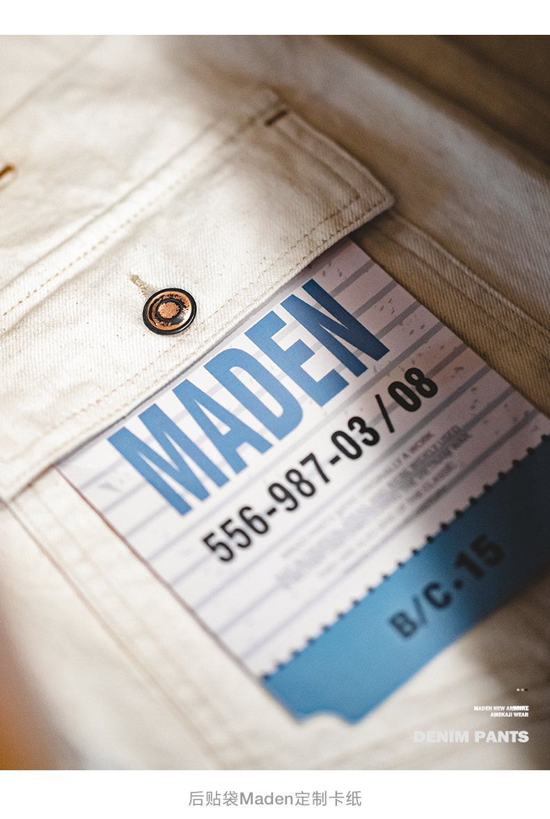 马登工装 美式复古棉籽壳白色牛仔裤宽松直筒阔腿休闲长裤子男春