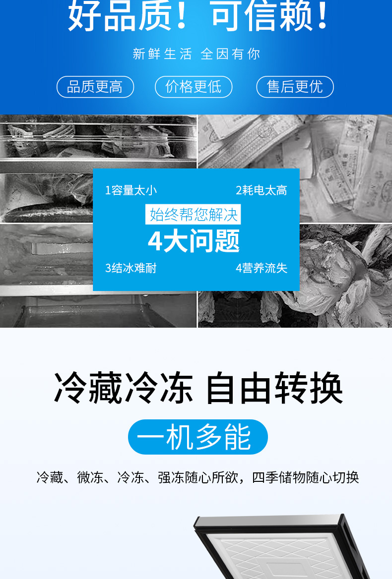 无霜冰熊小冰柜家用全冷冻小型迷你保鲜两用冷冻冷藏双温冷柜节能