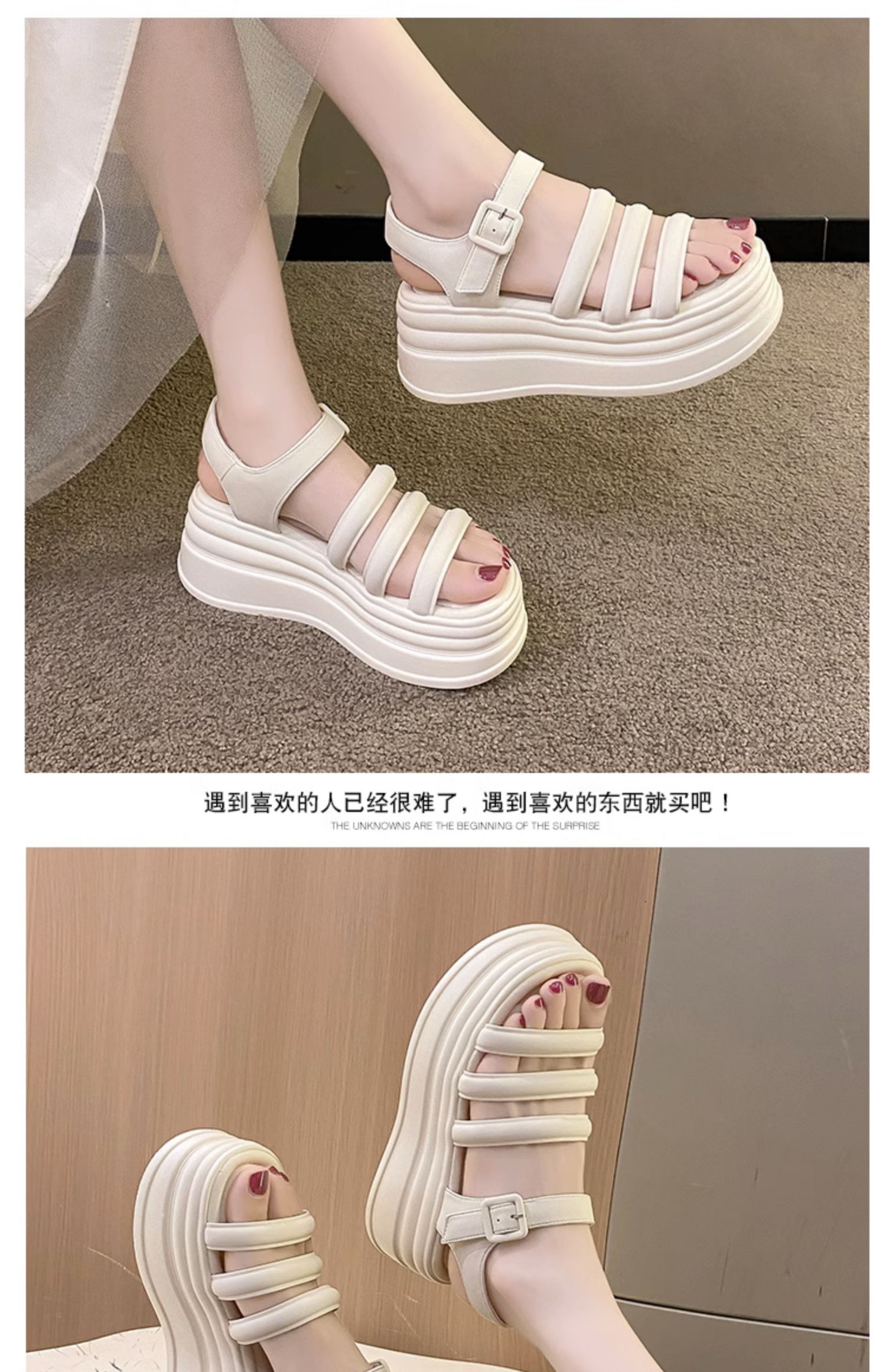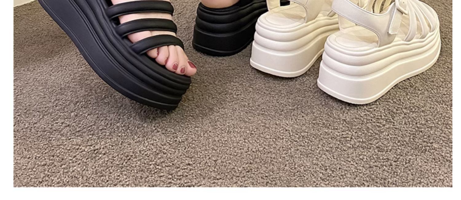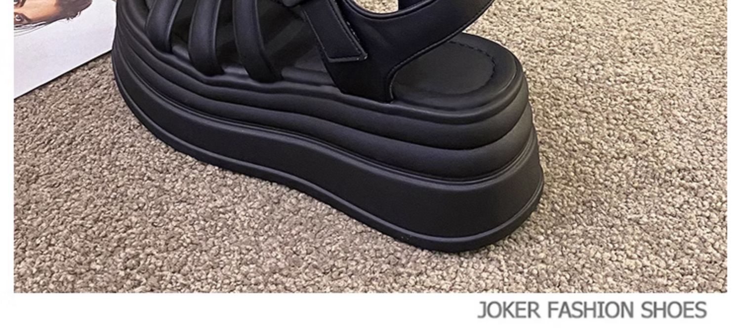 小个子增高罗马鞋女网红高跟英伦夏季女鞋仙女风松糕底一字扣凉鞋