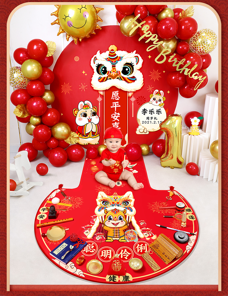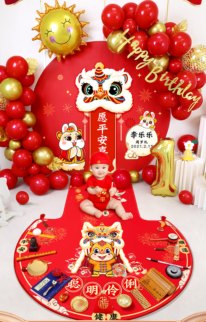 周岁生日布置道具装饰气球兔宝宝1岁抓周用品套装场景网红背景墙