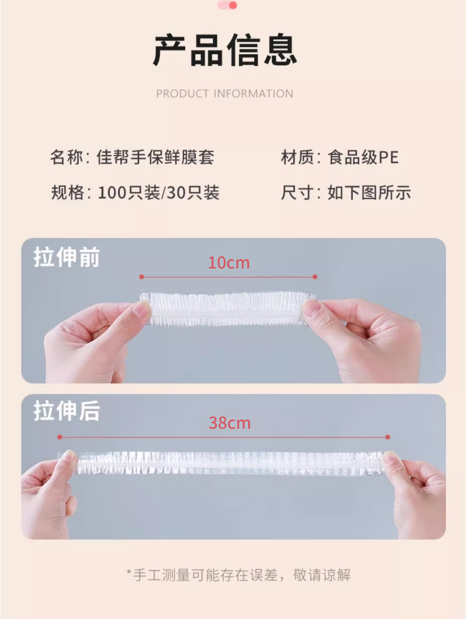 佳帮手一次性保鲜膜套罩食品级家用保鲜袋厨房专用带松紧剩菜碗套