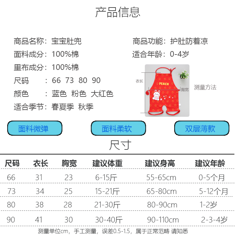 婴儿肚兜纯棉春夏季护肚子新生儿宝宝神器男女儿童四季薄款防着凉