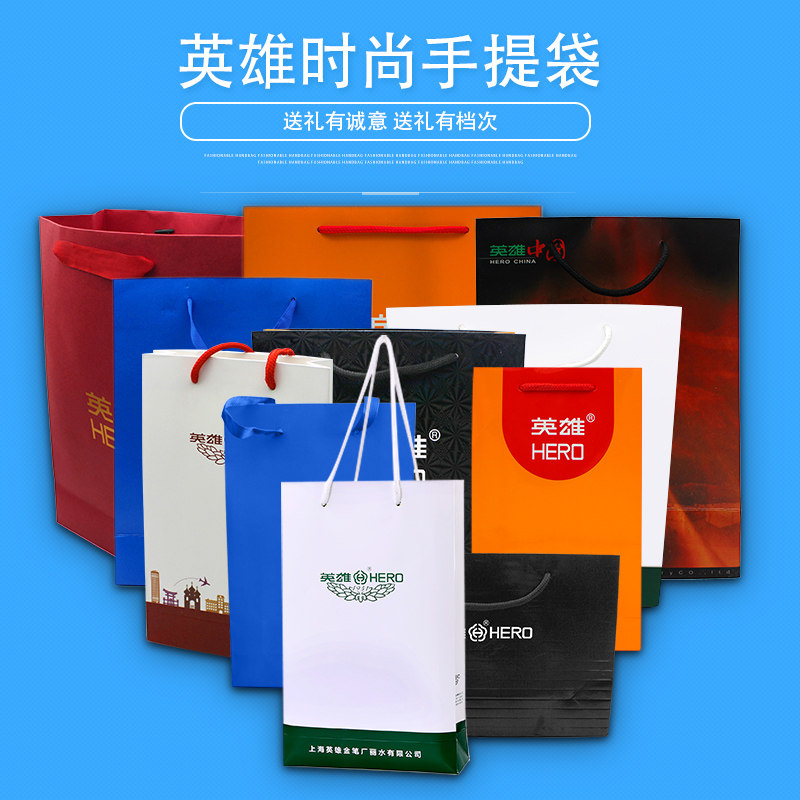 HERO英雄牌原装正品钢笔手提礼品袋企业公司logo广告印刷定制送礼时尚简约礼物包装袋子旗舰店