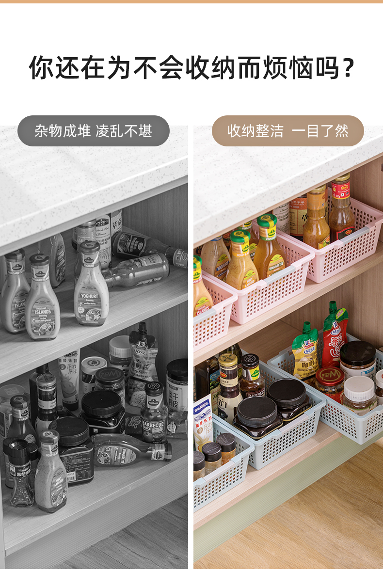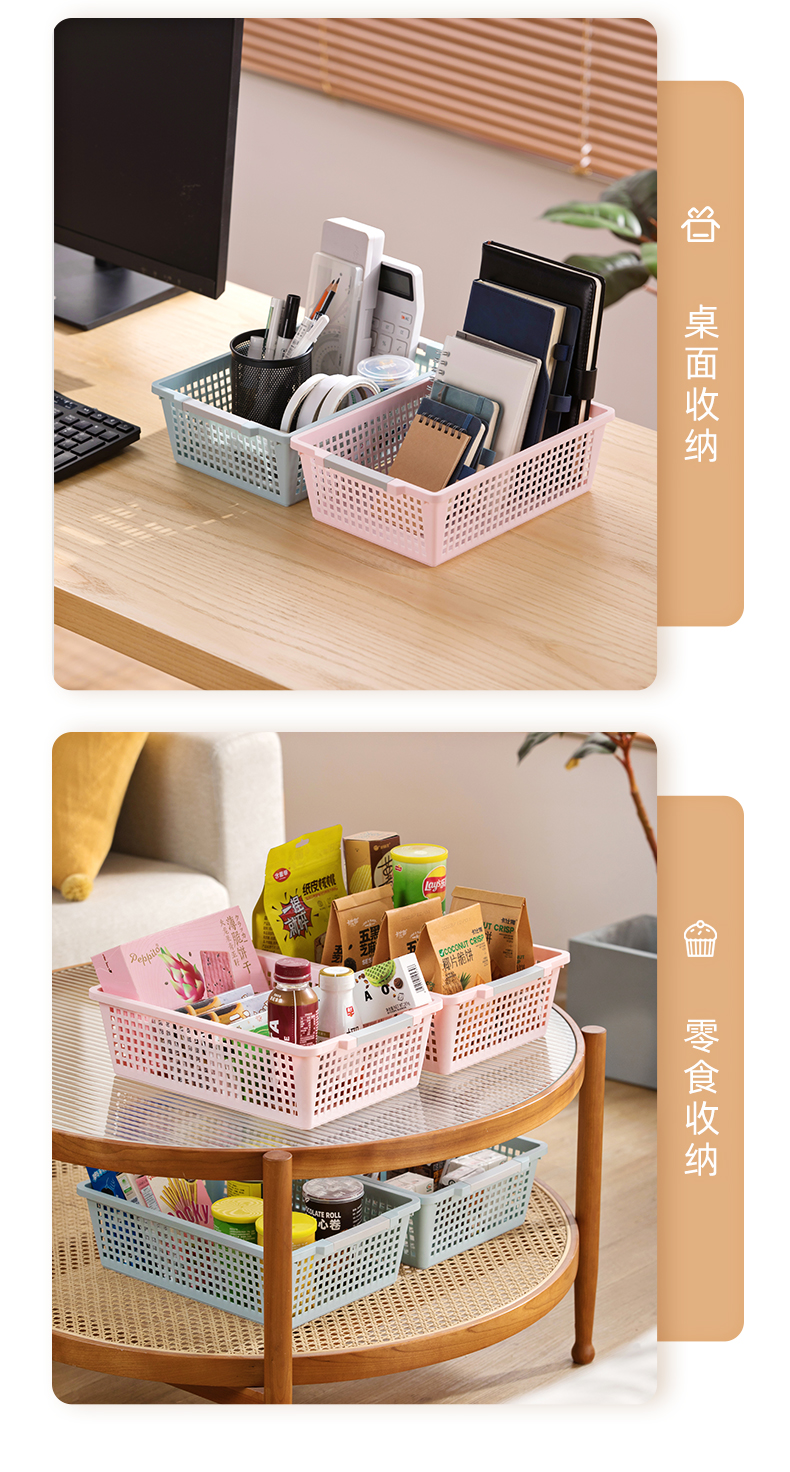 茶花塑料收纳筐厨房收纳杂物收纳筐家用玩具整理筐桌面塑料置物篮