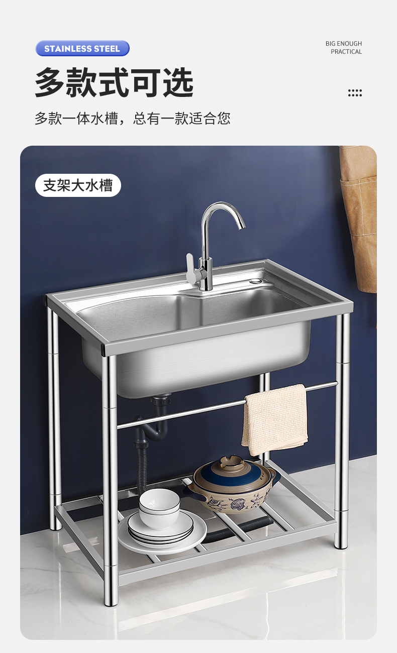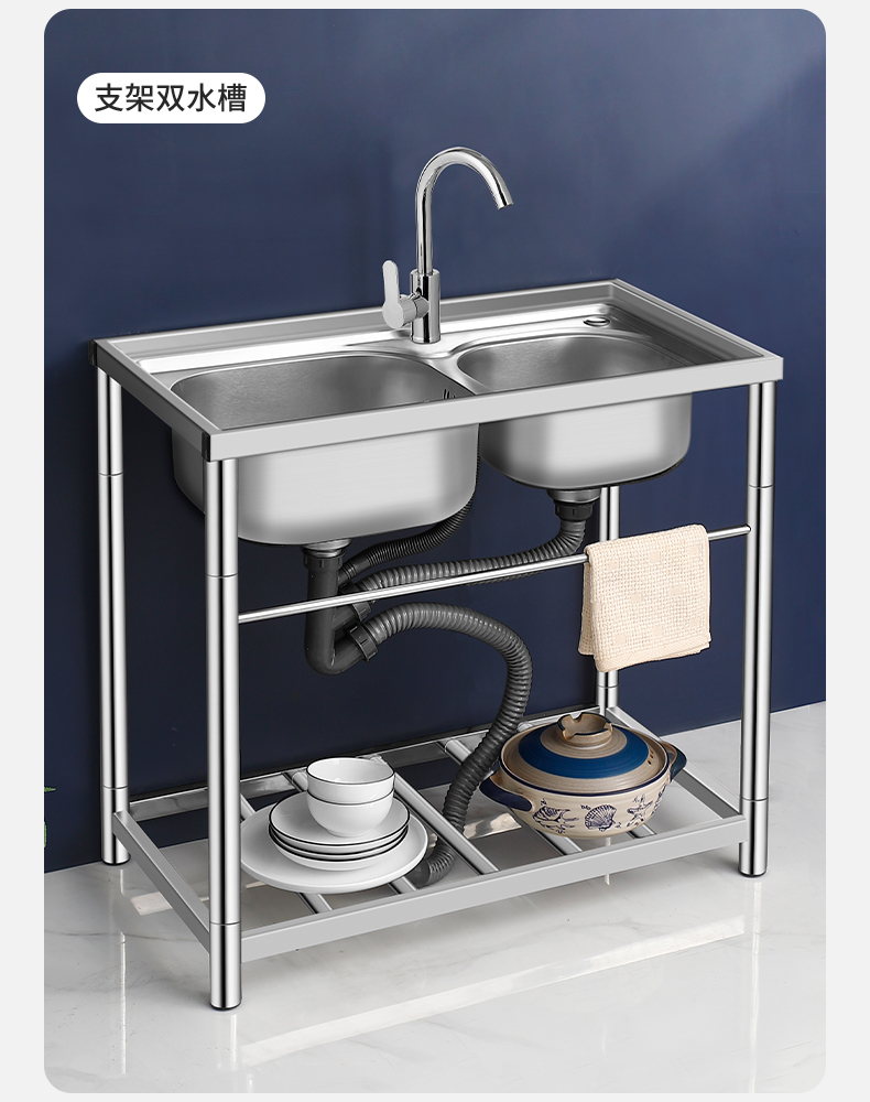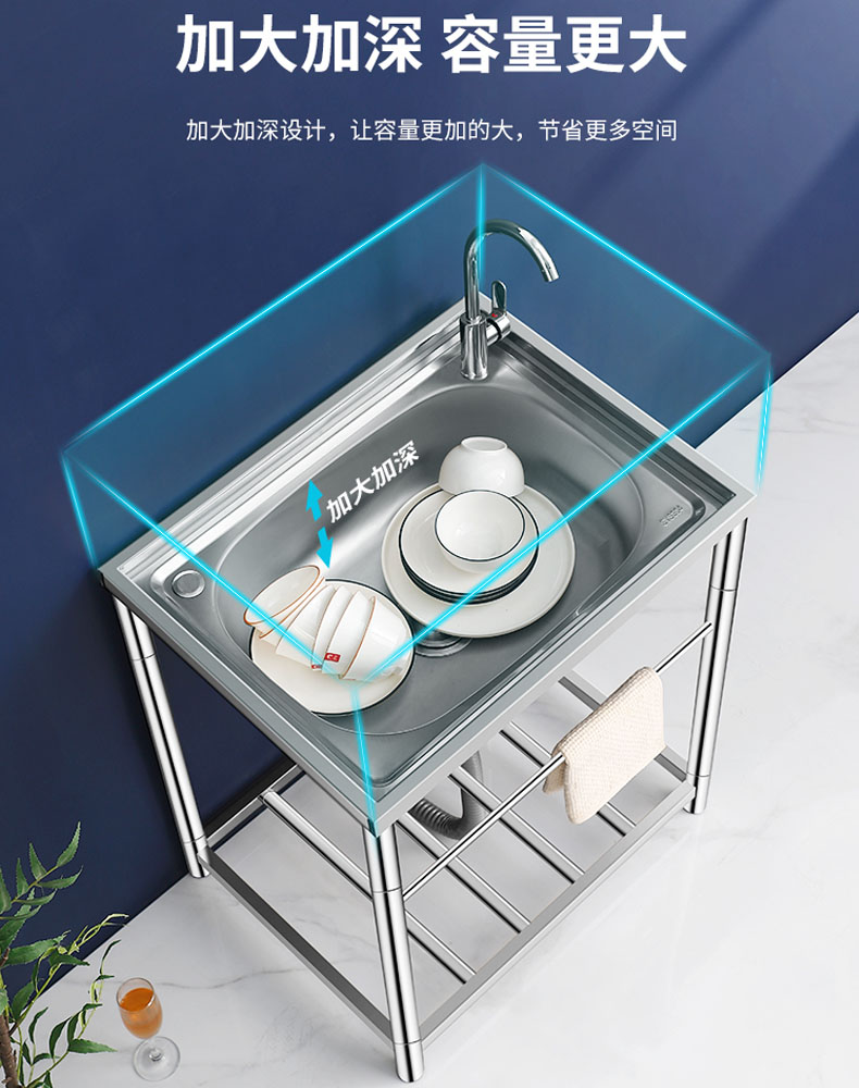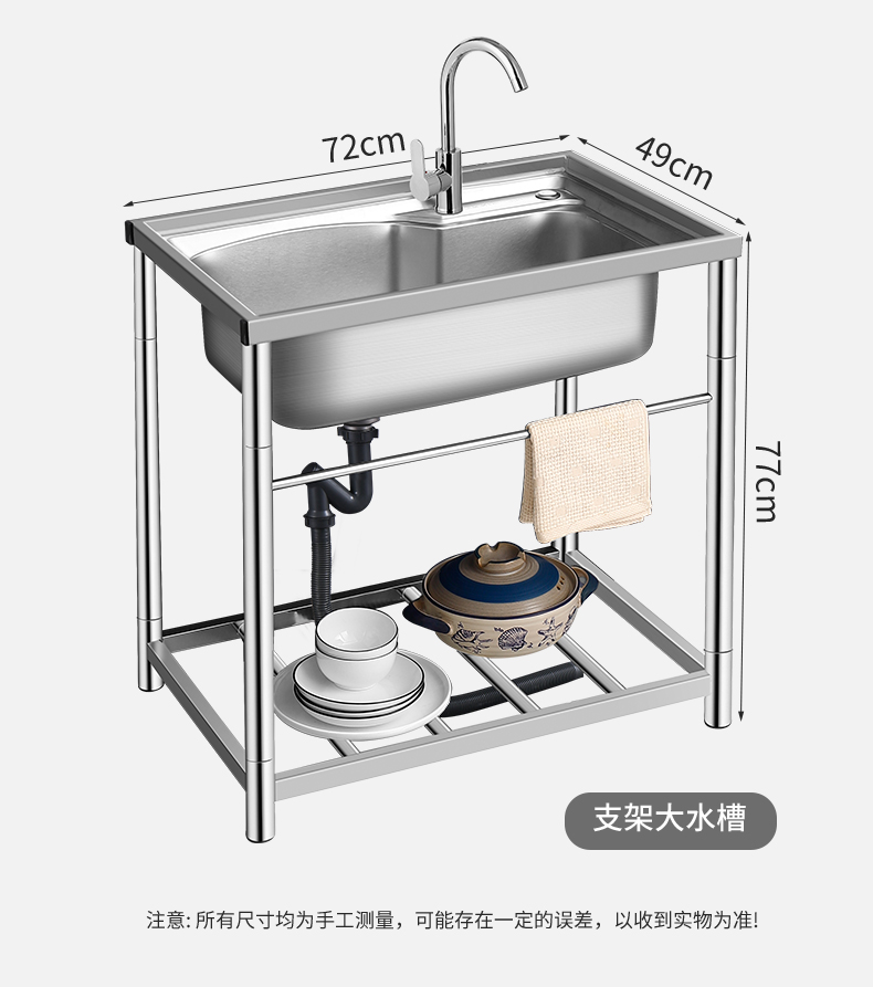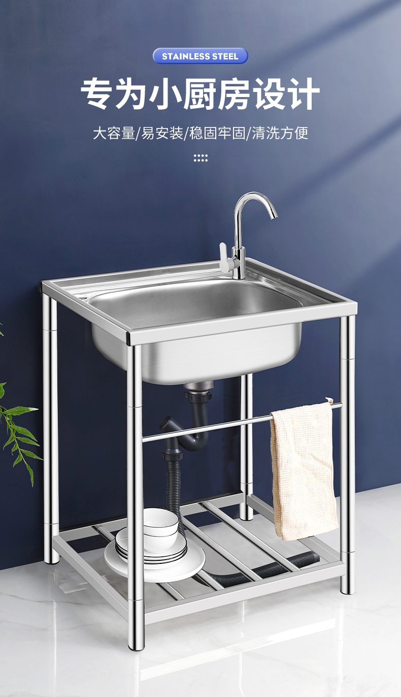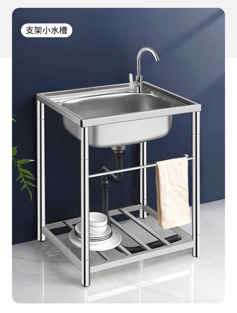 商用厨房洗菜盆加厚不锈钢洗手盆带支架一体洗碗池家用水槽大单槽