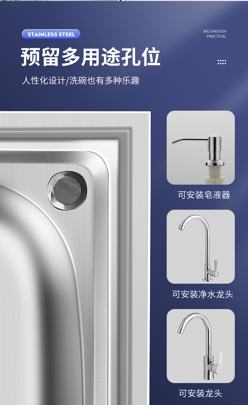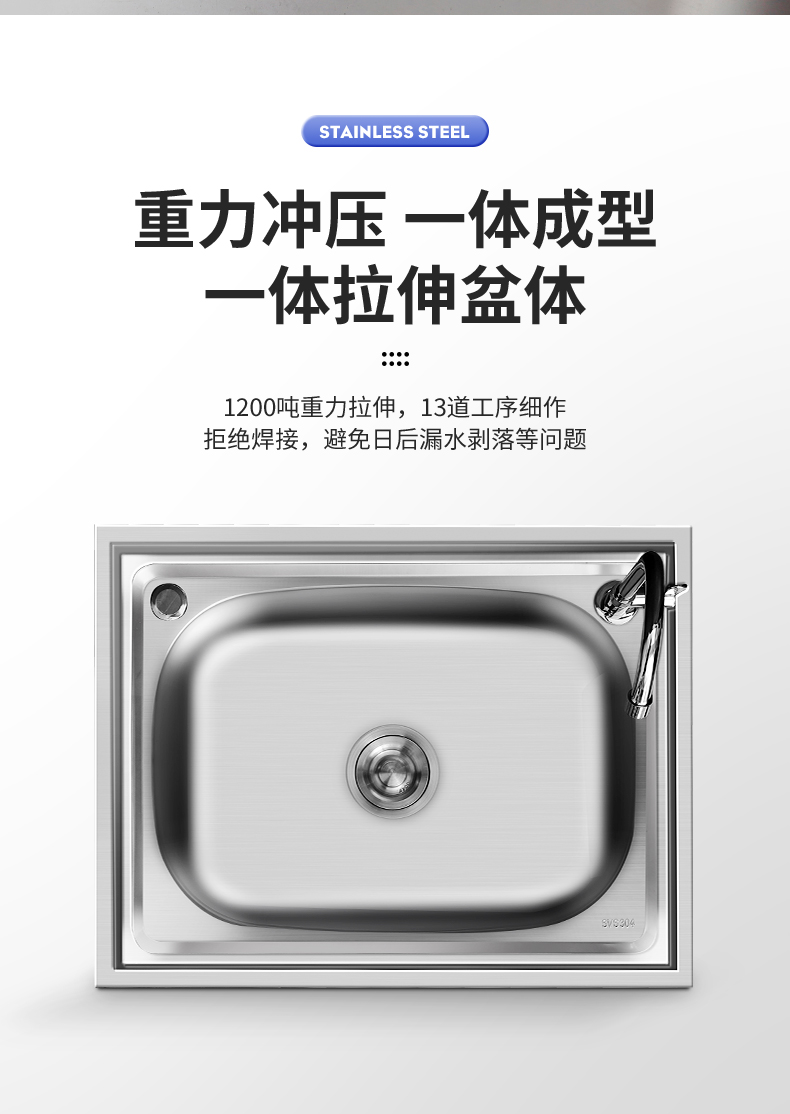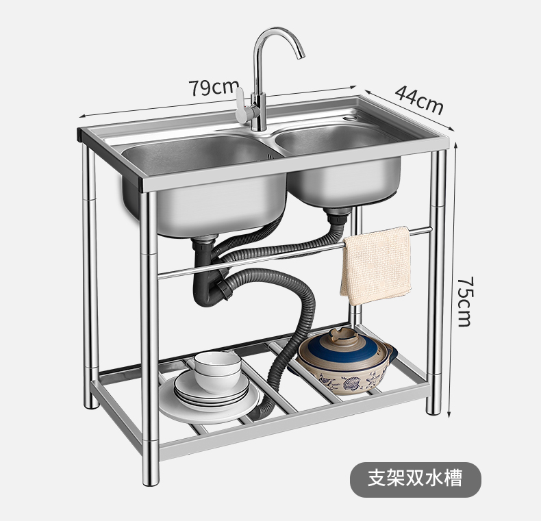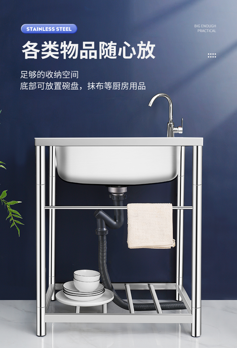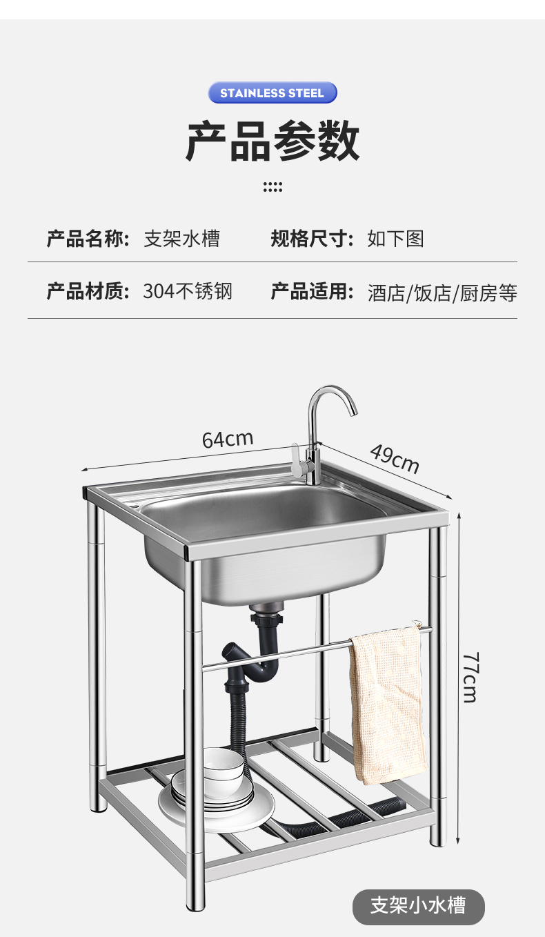 商用厨房洗菜盆加厚不锈钢洗手盆带支架一体洗碗池家用水槽大单槽