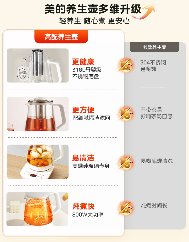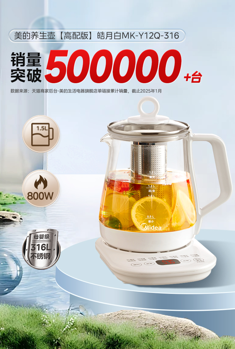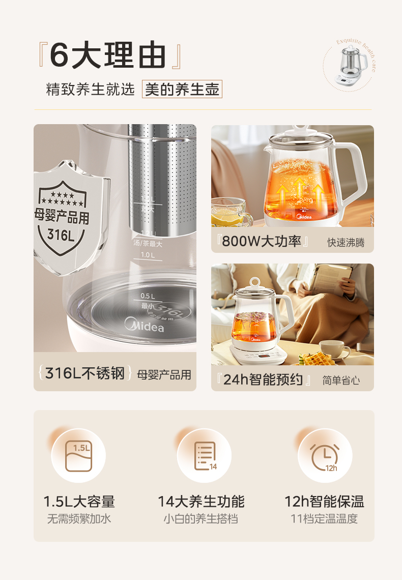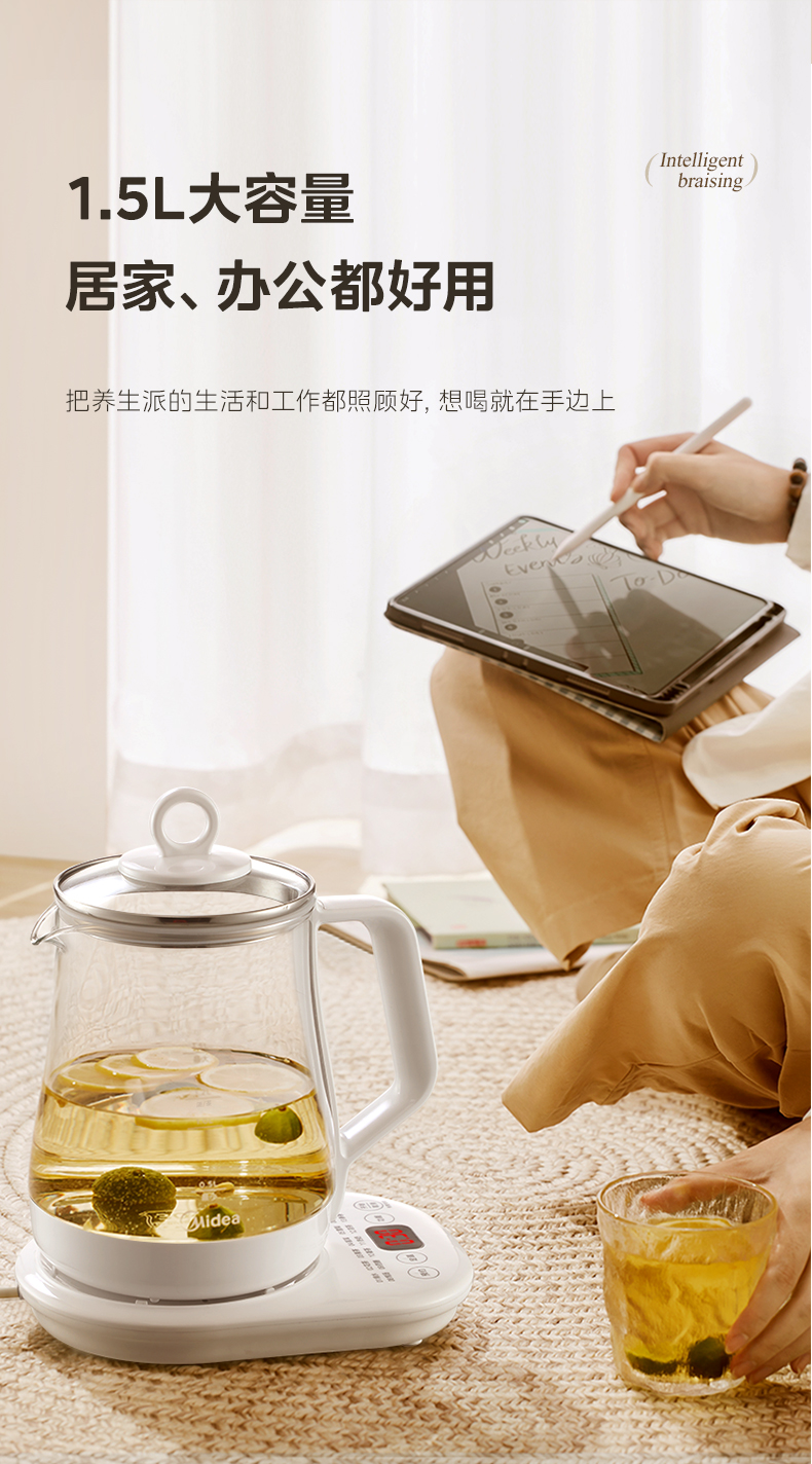 美的养生壶多功能家用大容量煮茶器办公室小型玻璃烧水壶养身茶壶
