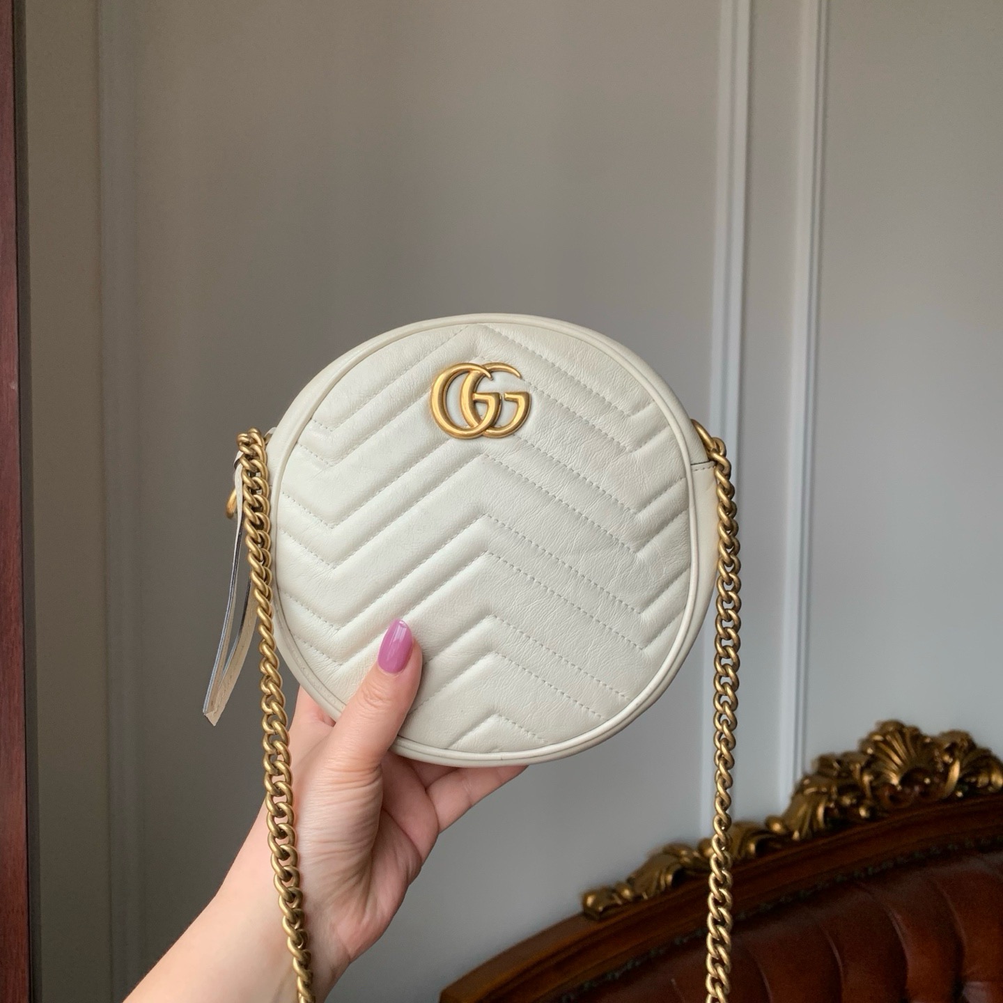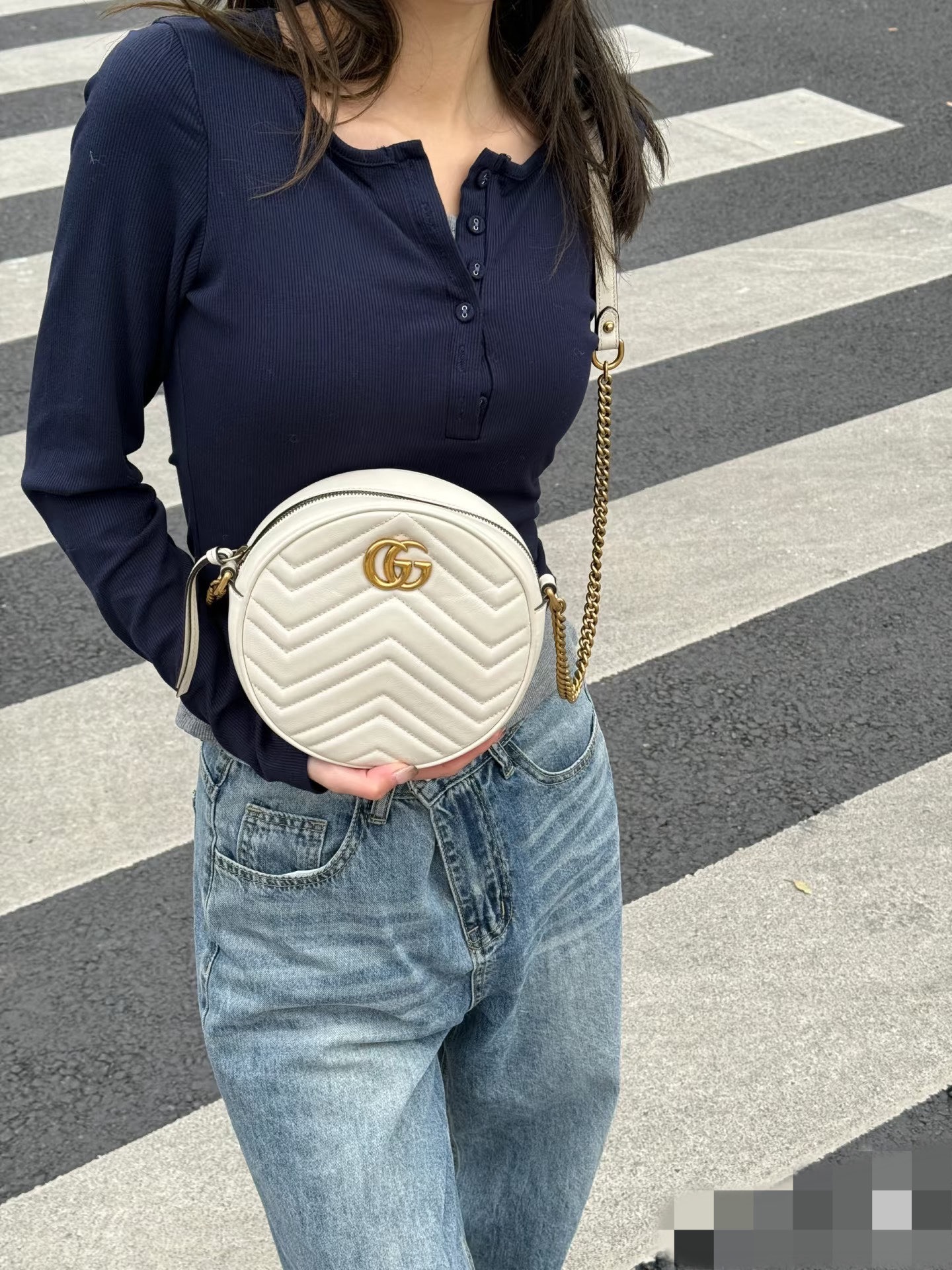 99新古驰中号圆饼斜挎包金扣