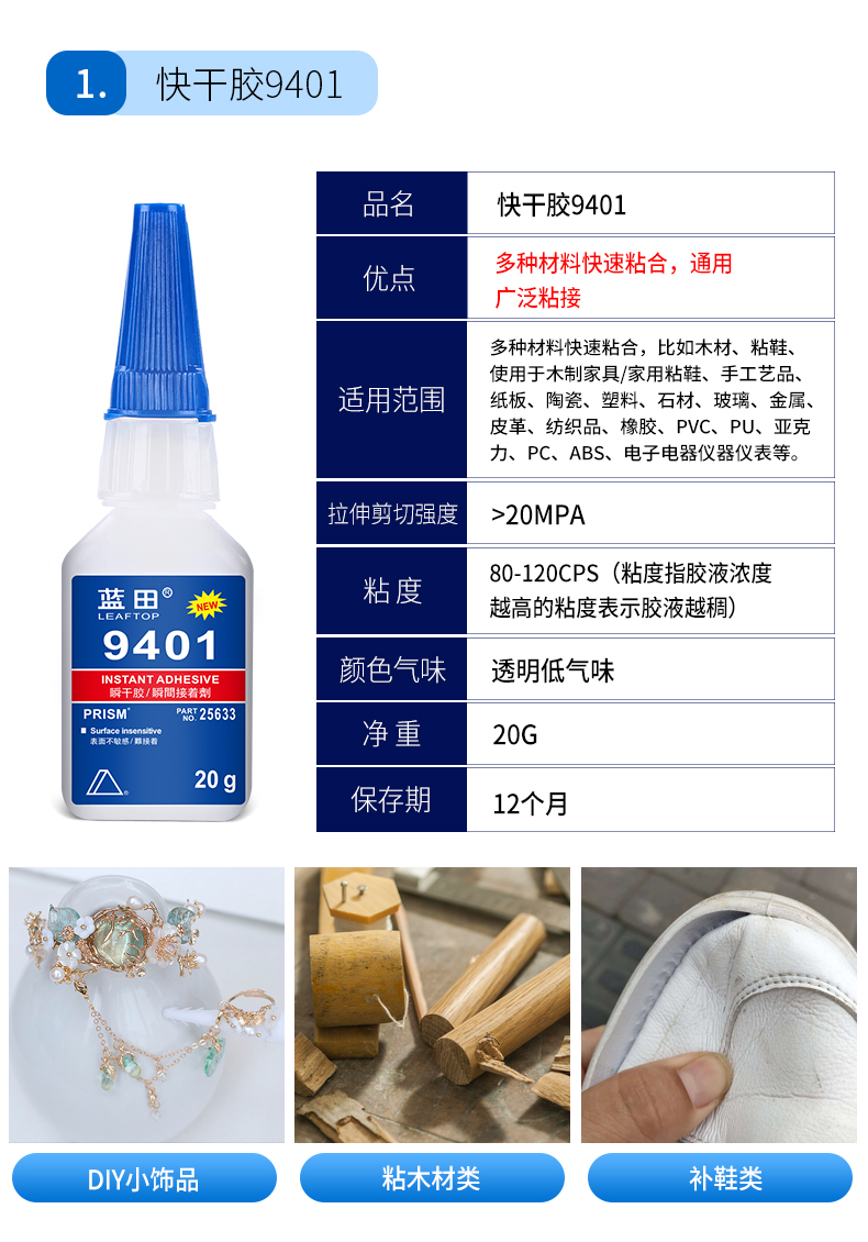 蓝田401胶瞬间胶强力快干透明胶粘陶瓷木头塑料金属大理石补鞋胶修鞋专用胶饰品胶不发白无气味焊接502胶水