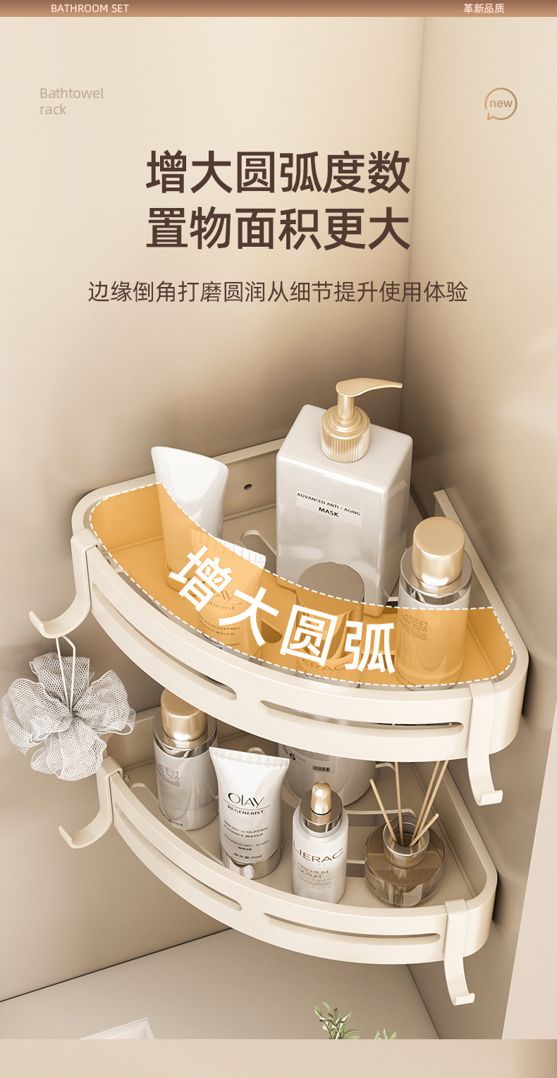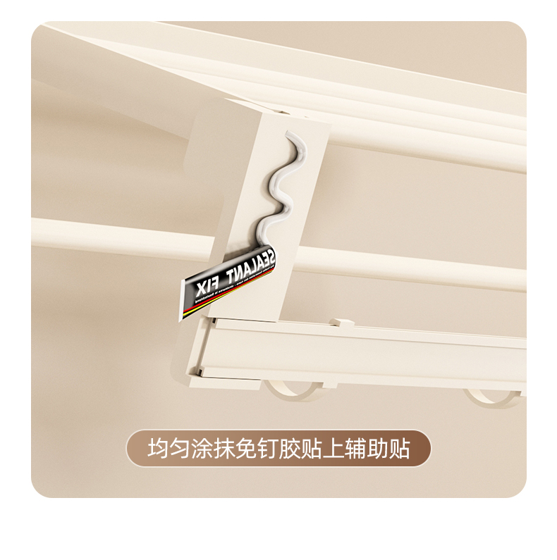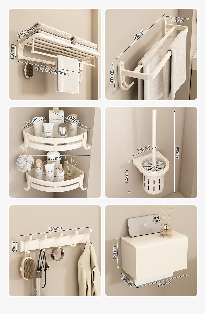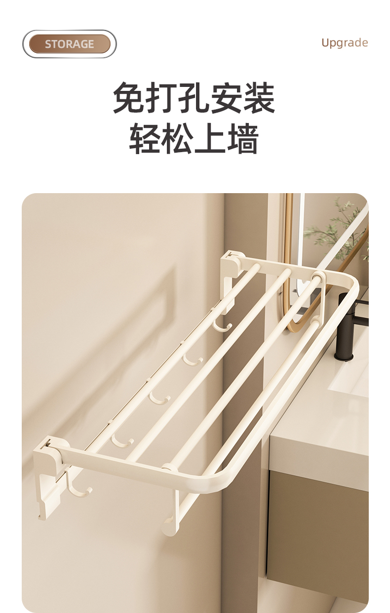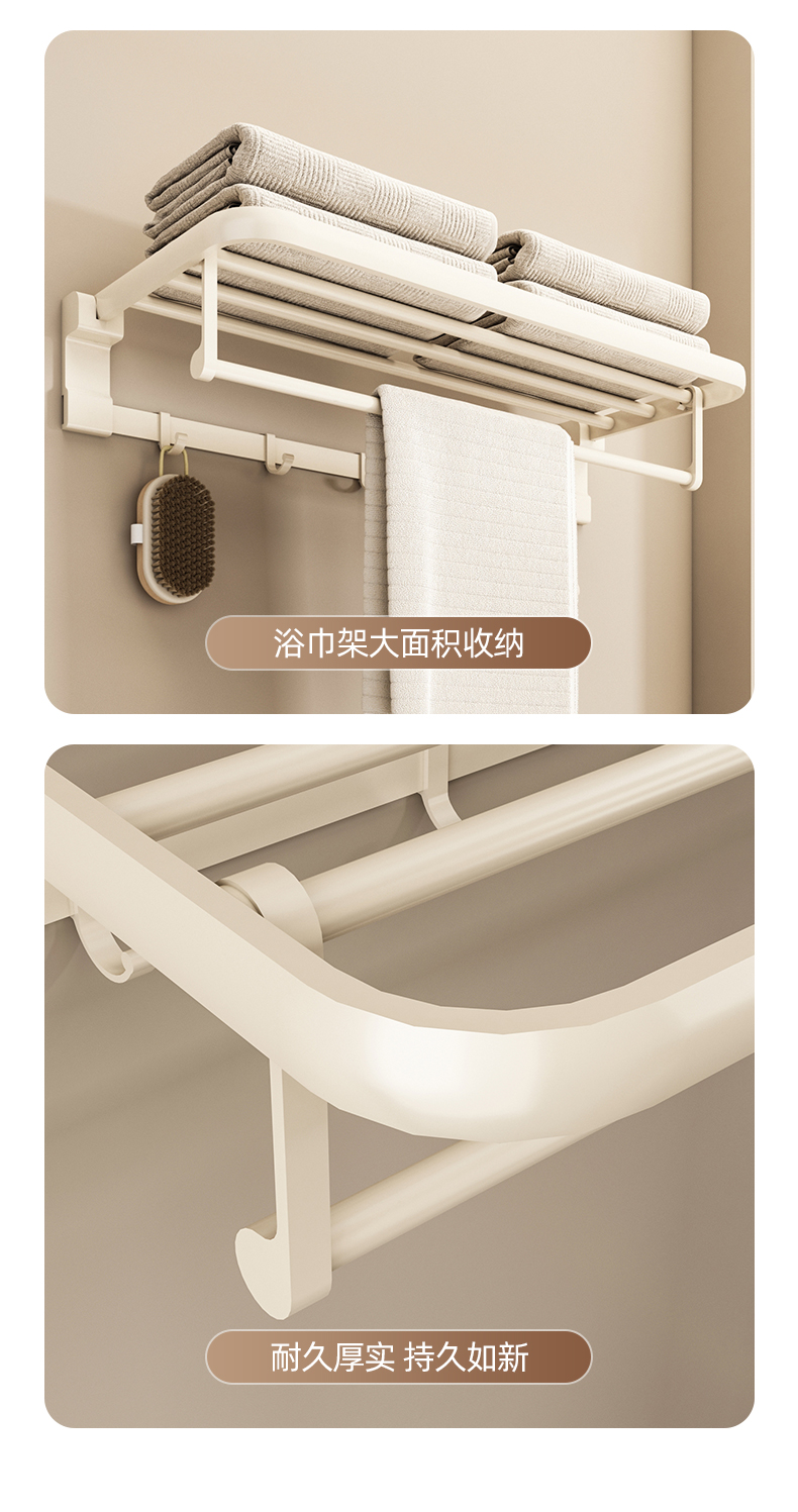 奶白色卫生间毛巾架置物架免打孔卫浴架子浴室浴巾架厕所挂杆
