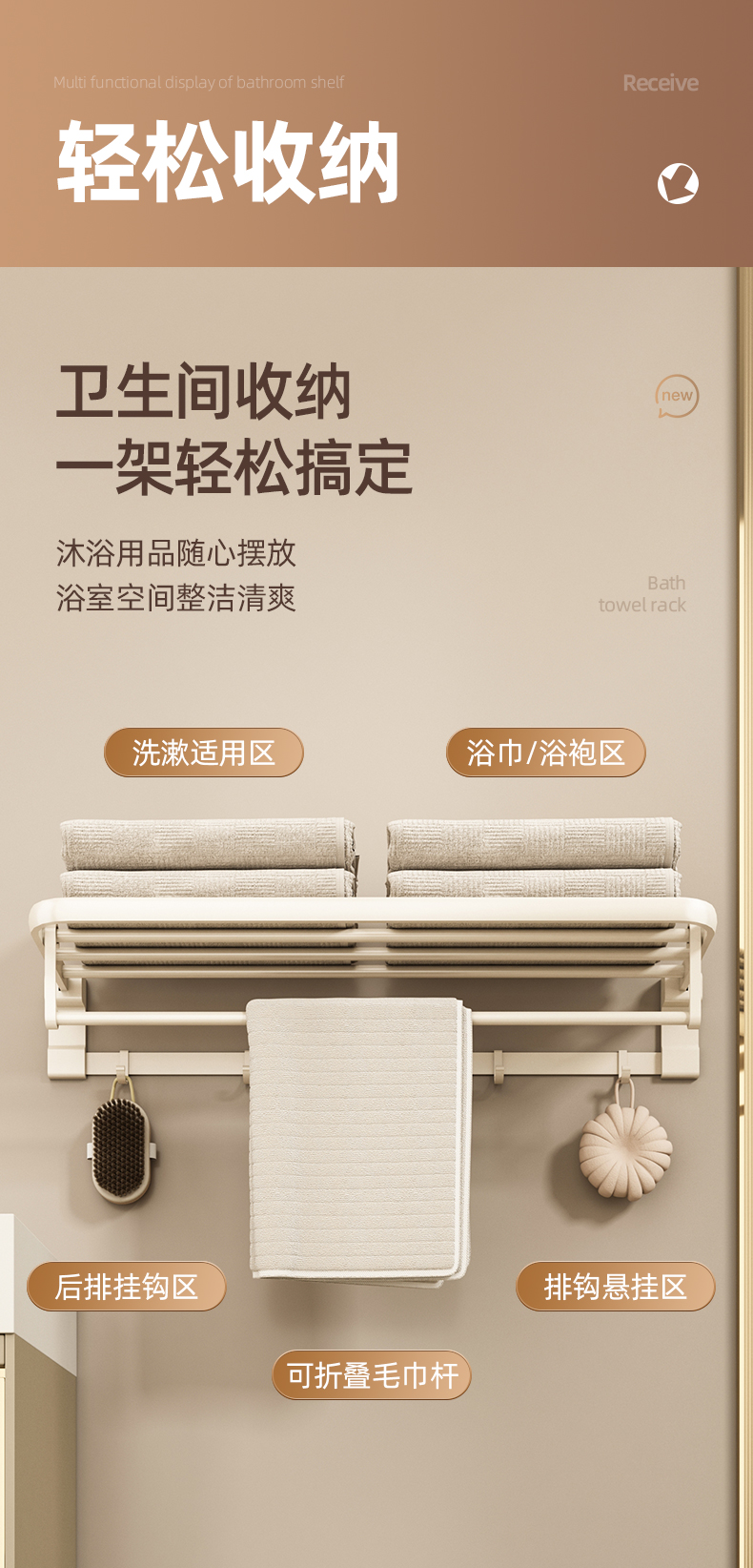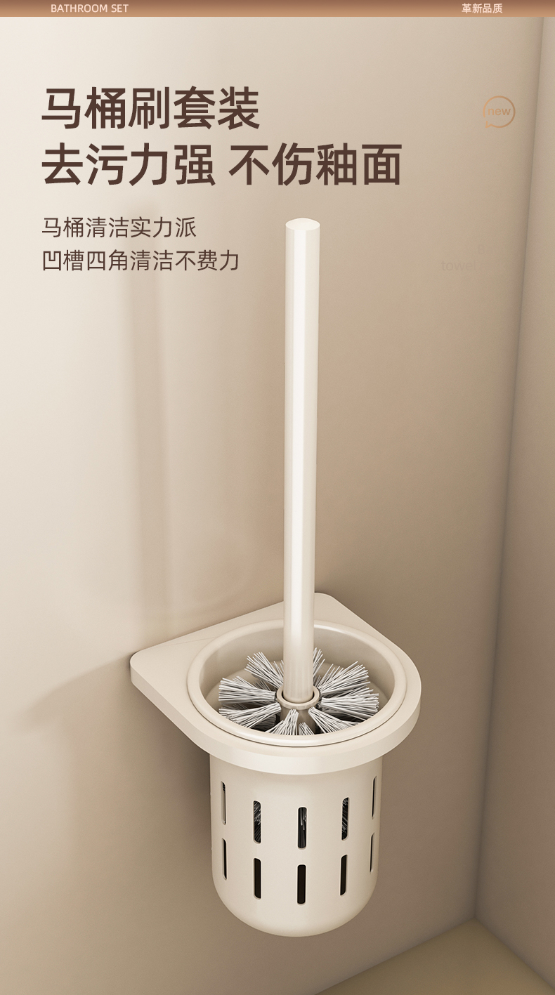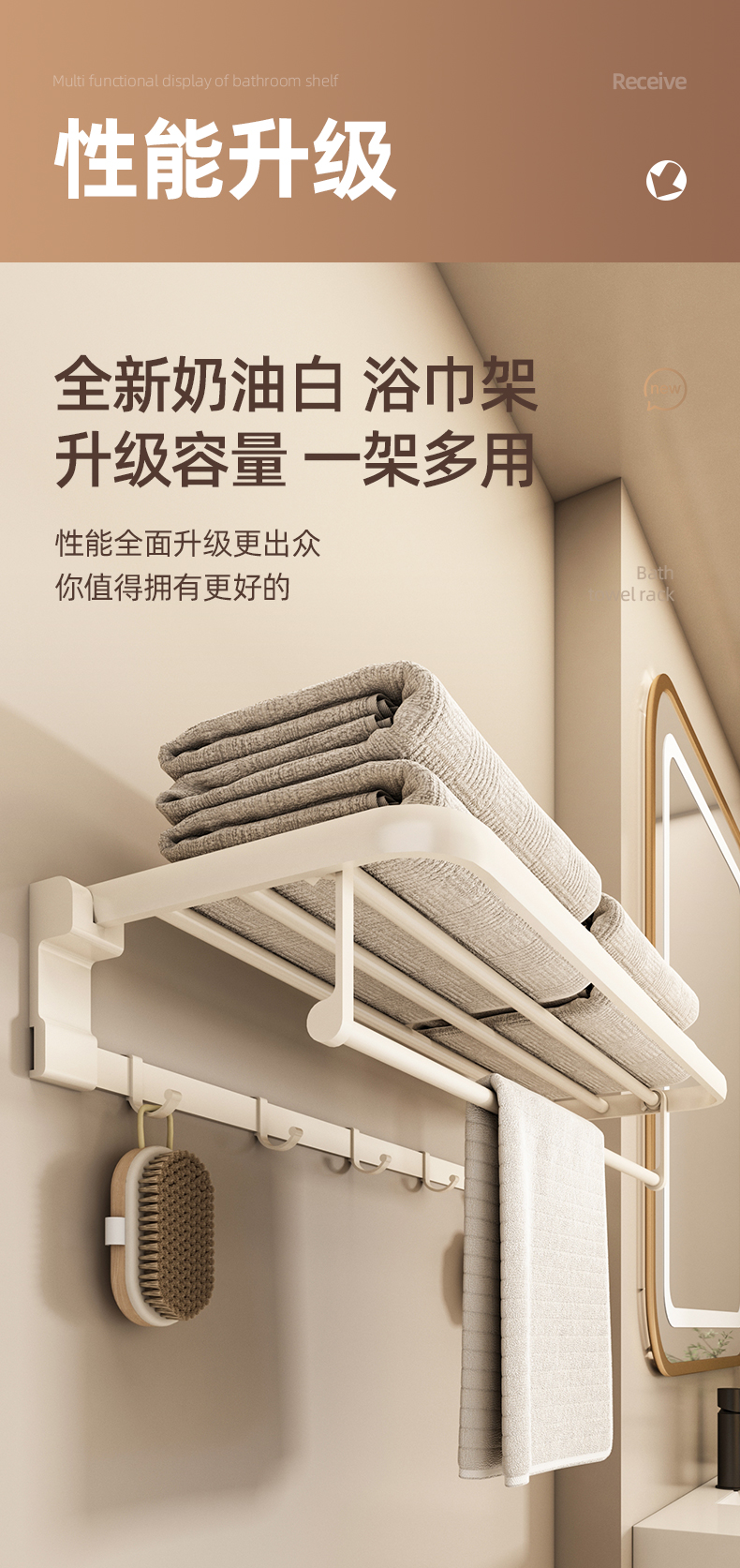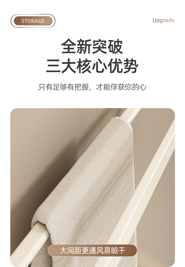 奶白色卫生间毛巾架置物架免打孔卫浴架子浴室浴巾架厕所挂杆