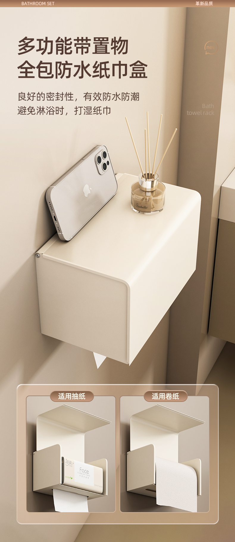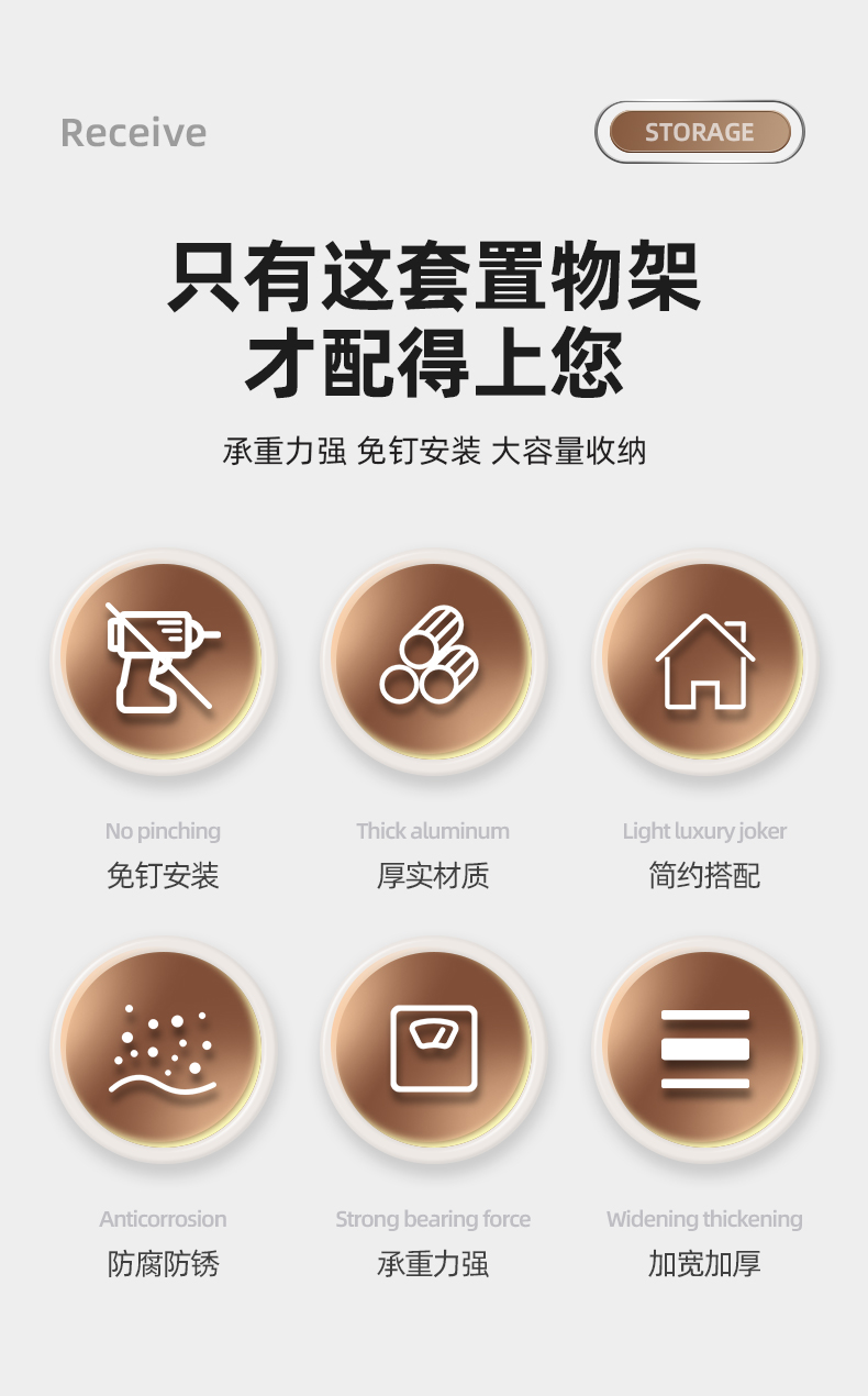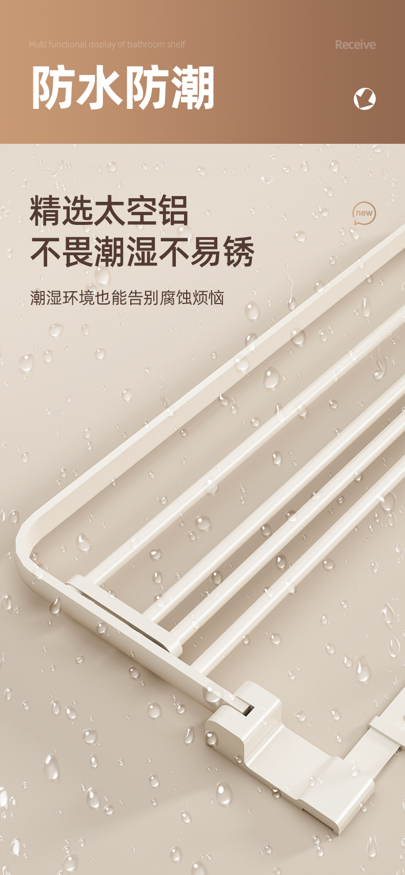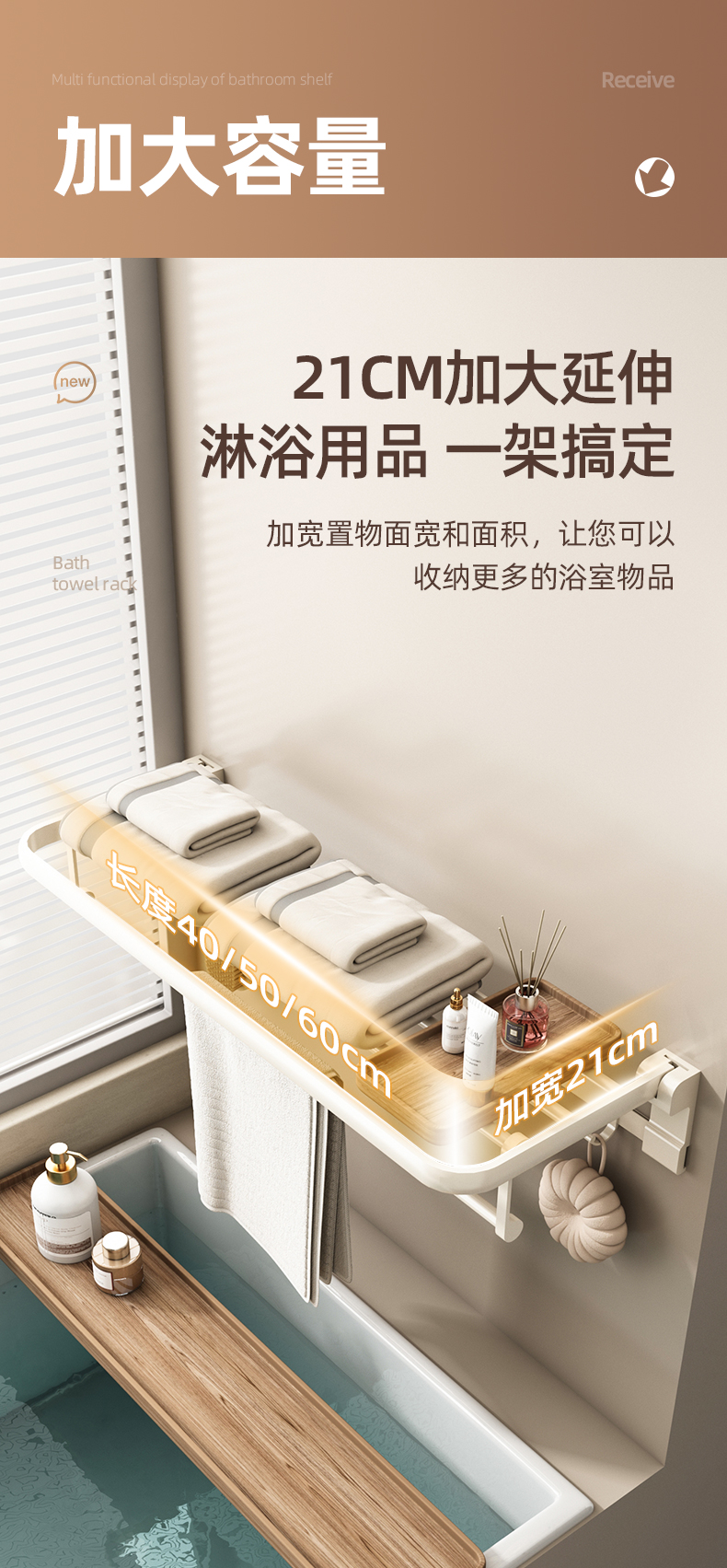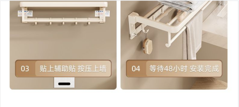 奶白色卫生间毛巾架置物架免打孔卫浴架子浴室浴巾架厕所挂杆