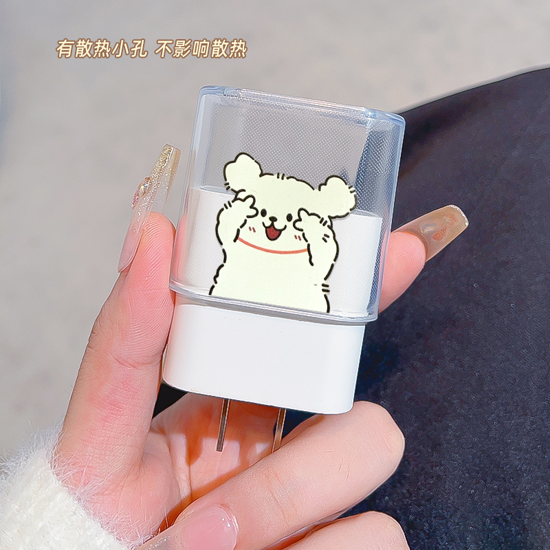 线条小狗卡通苹果充电器保护套iPhone16充电头保护壳卡通适用于15promax数据线保护扣硅胶可爱防折断防猫咬