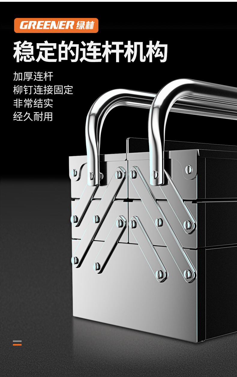 绿林不锈钢工具箱三层折叠家用加厚手提式五金工业级收纳盒多功能