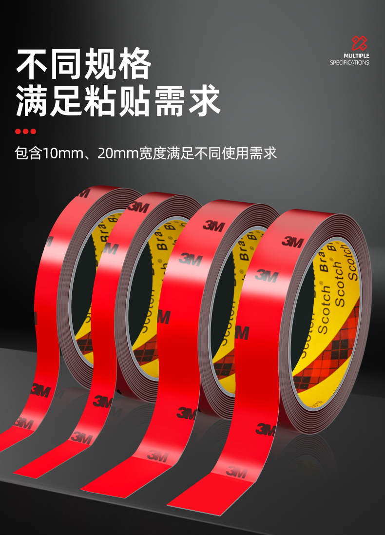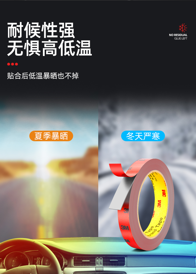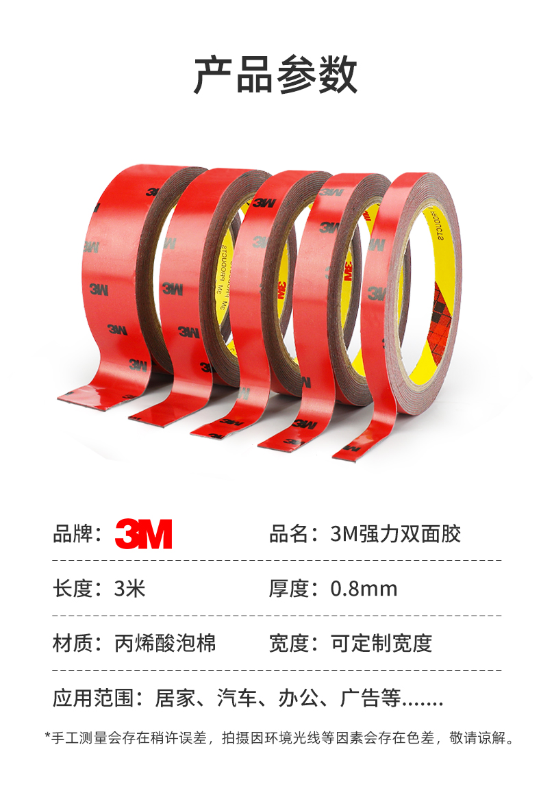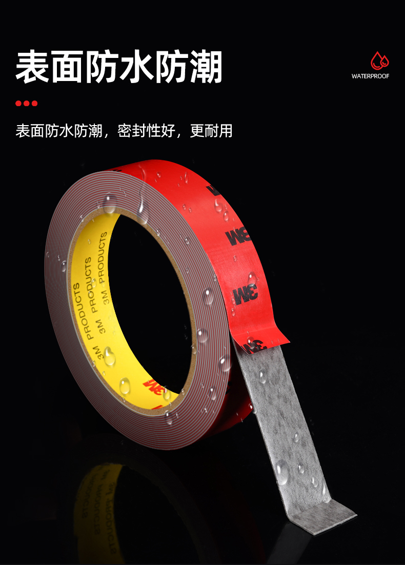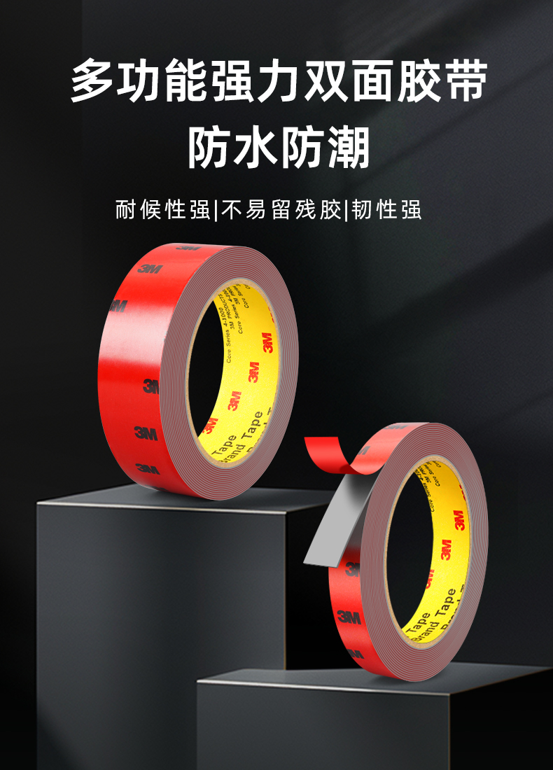 3M双面胶高粘度防水无痕超强力胶带汽车晴雨挡尾翼固定专用泡沫胶