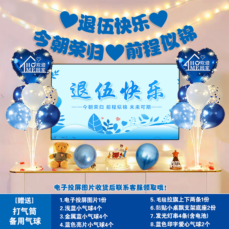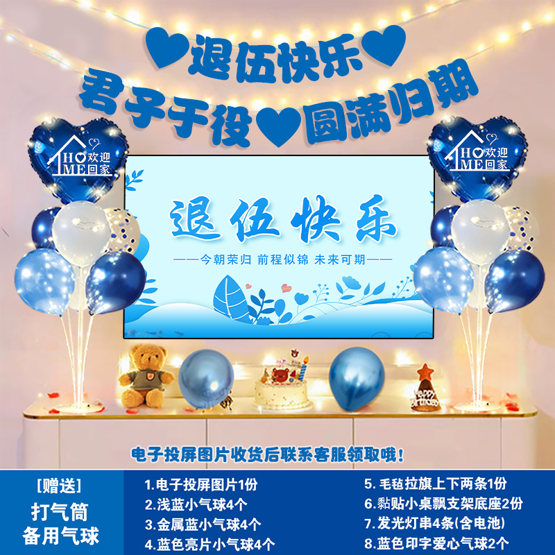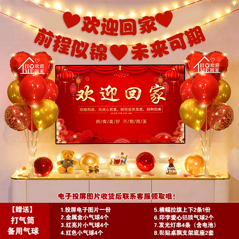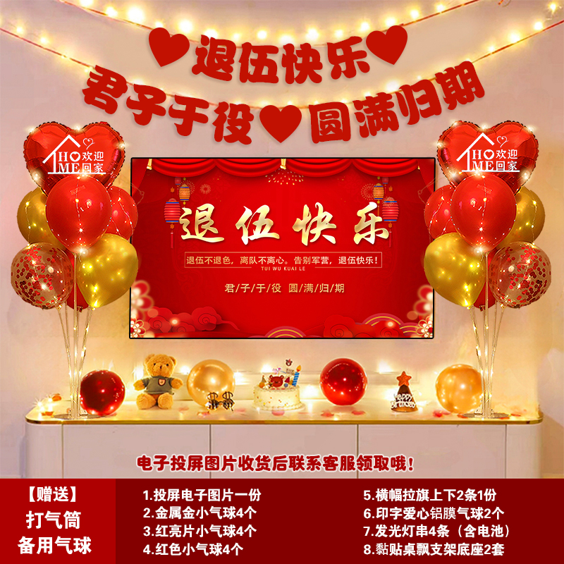 欢迎回家仪式感气球布置老兵军人孩子光荣退伍气氛欢迎回家横幅