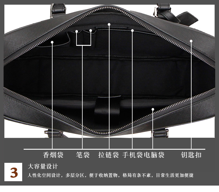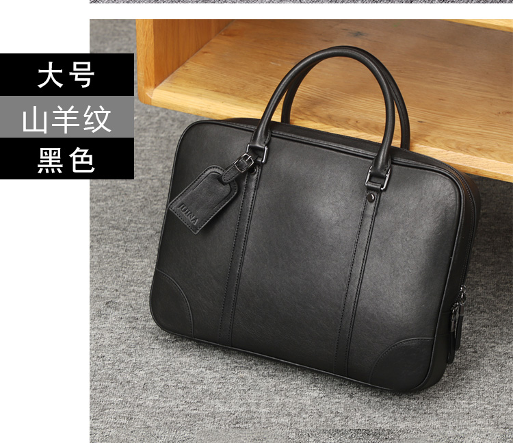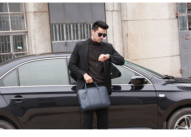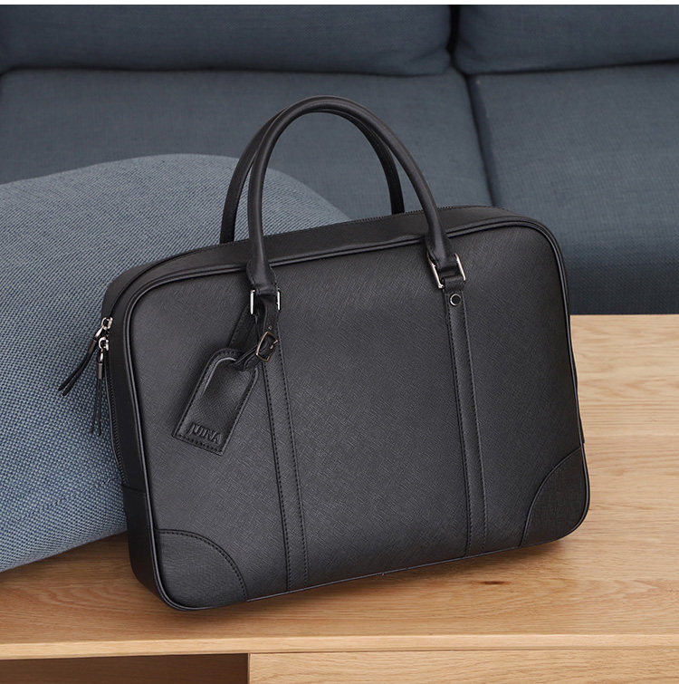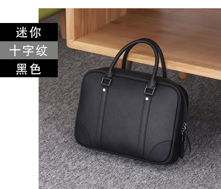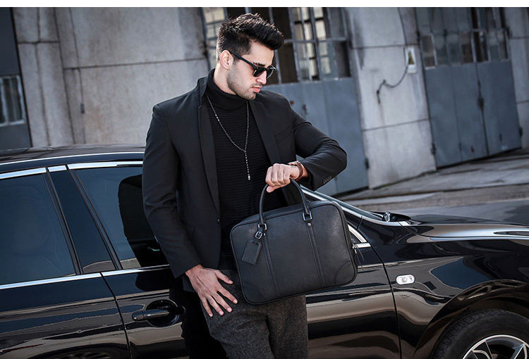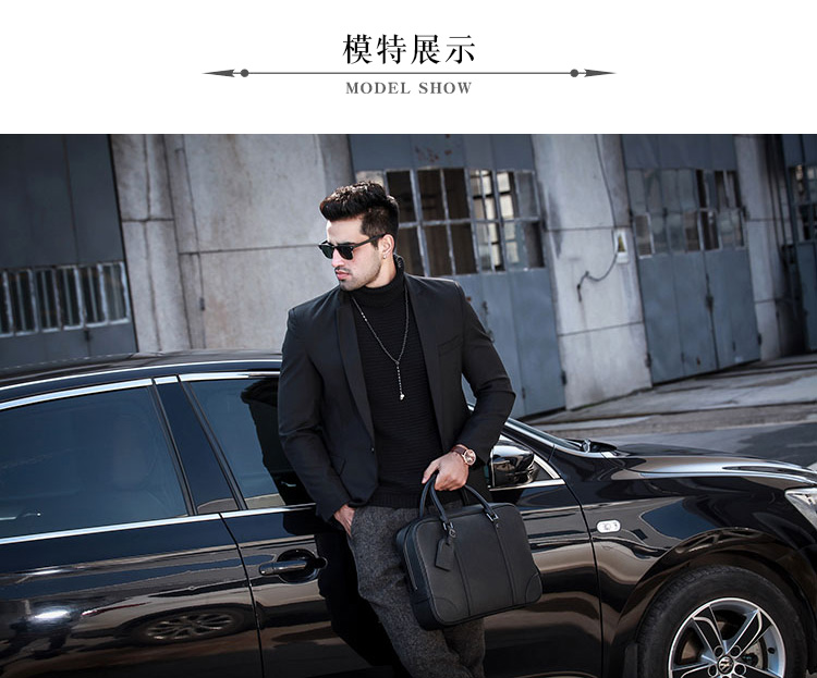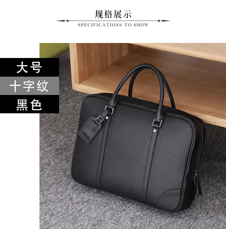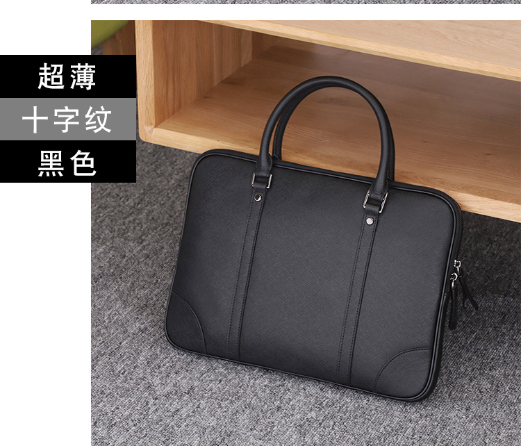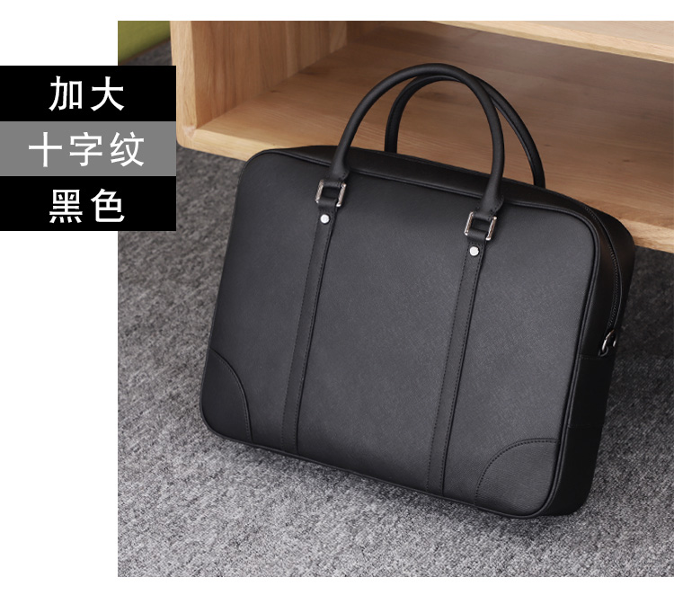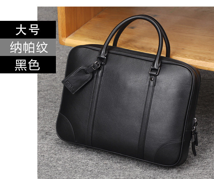男士手提包横款公文包牛皮电脑包大容量斜挎包简约男包真皮商务包