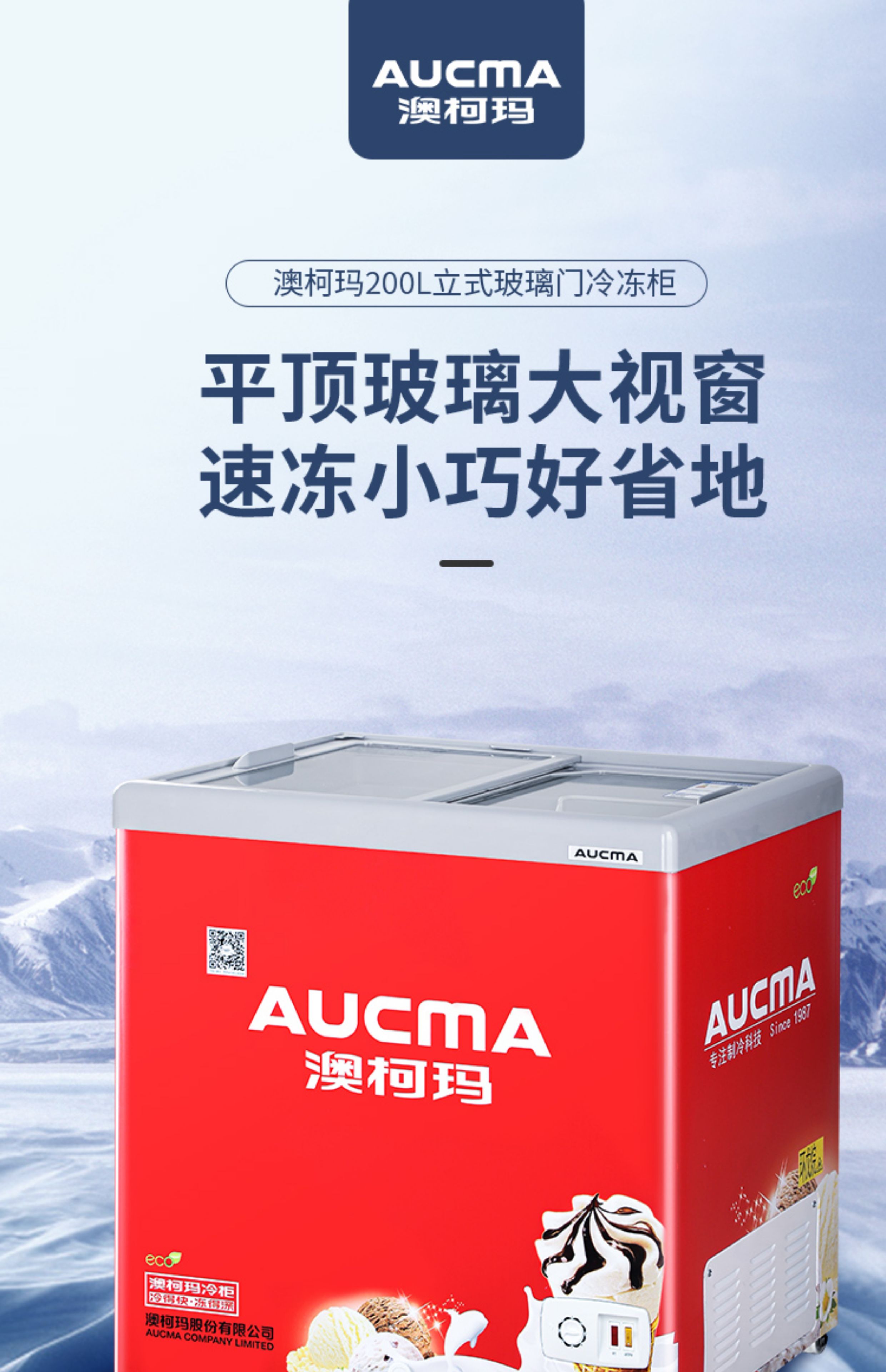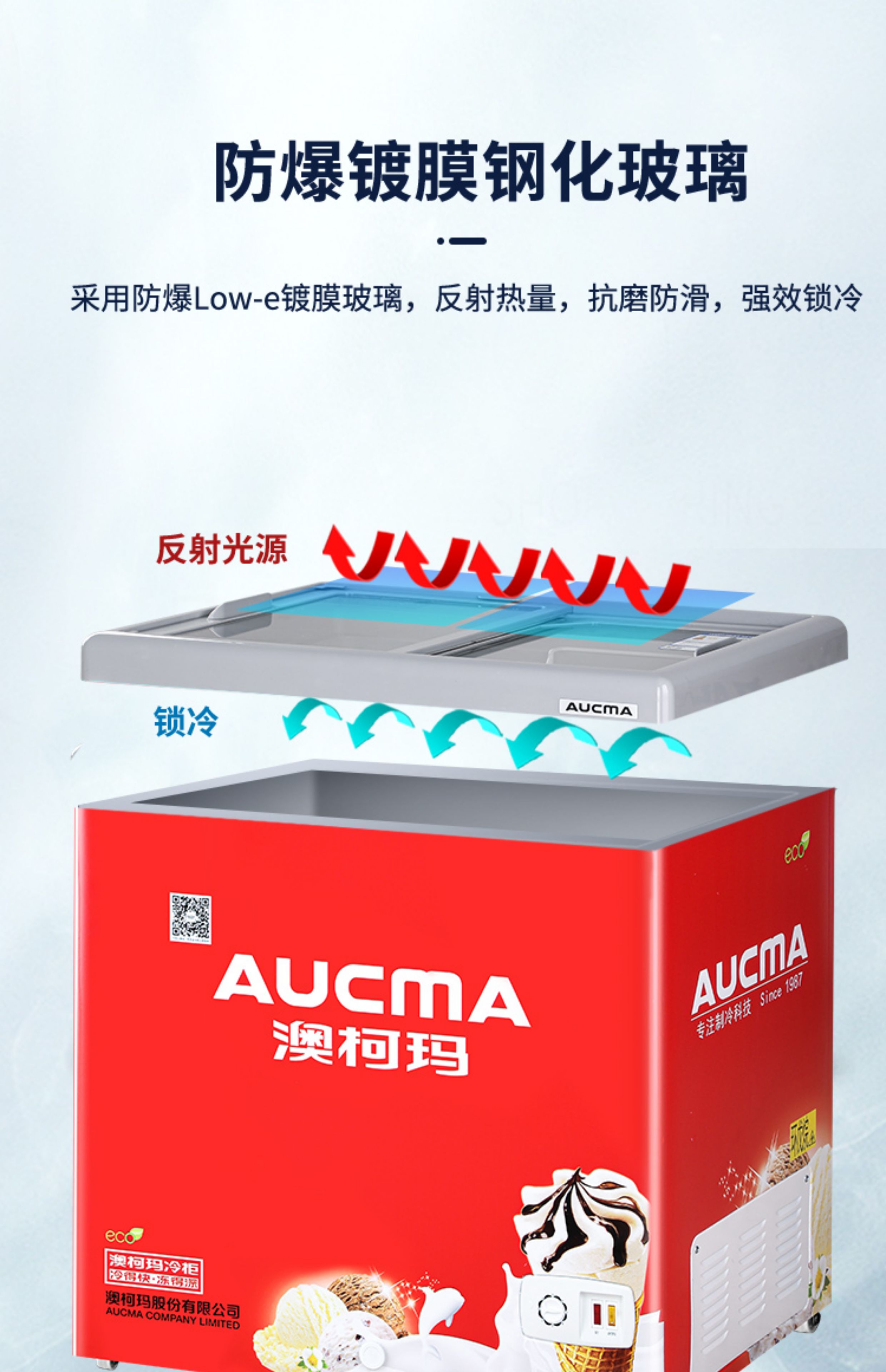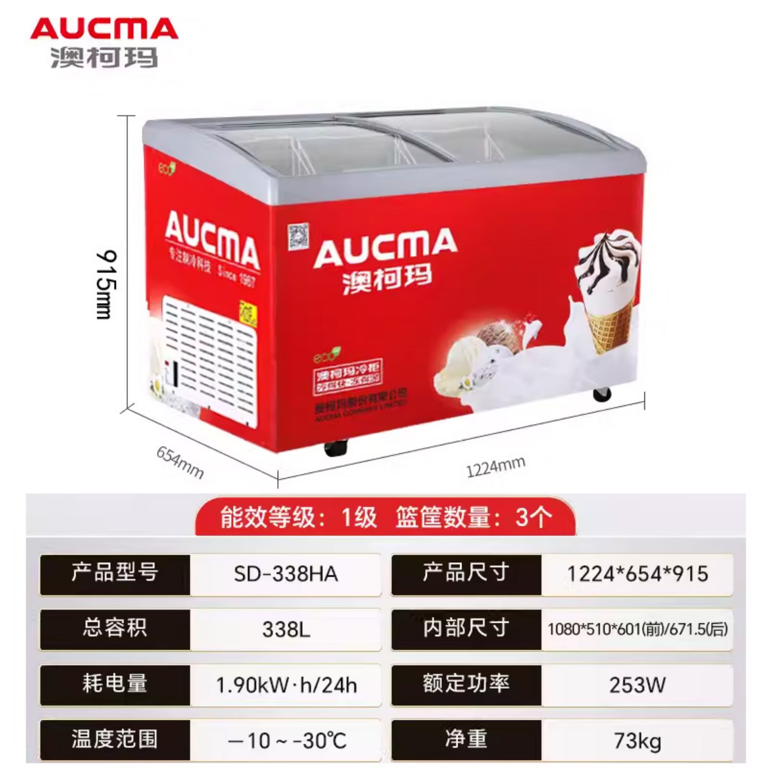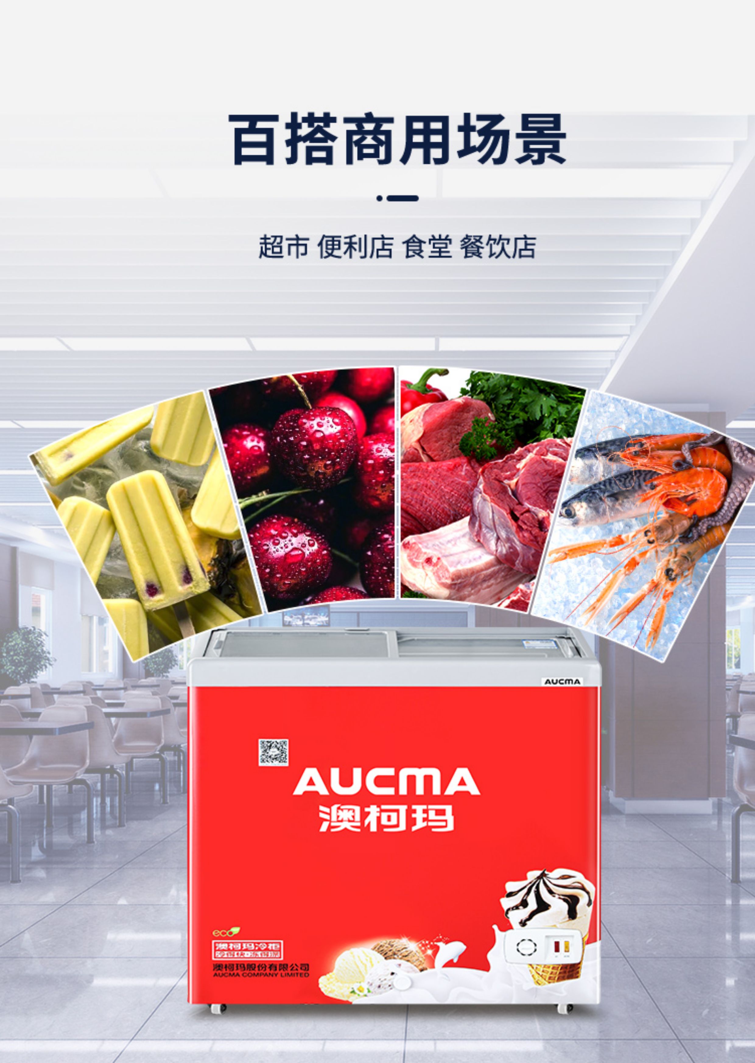 澳柯玛冰柜商用展示柜超市雪糕柜卧式冷柜弧形玻璃冰箱雪柜保鲜柜