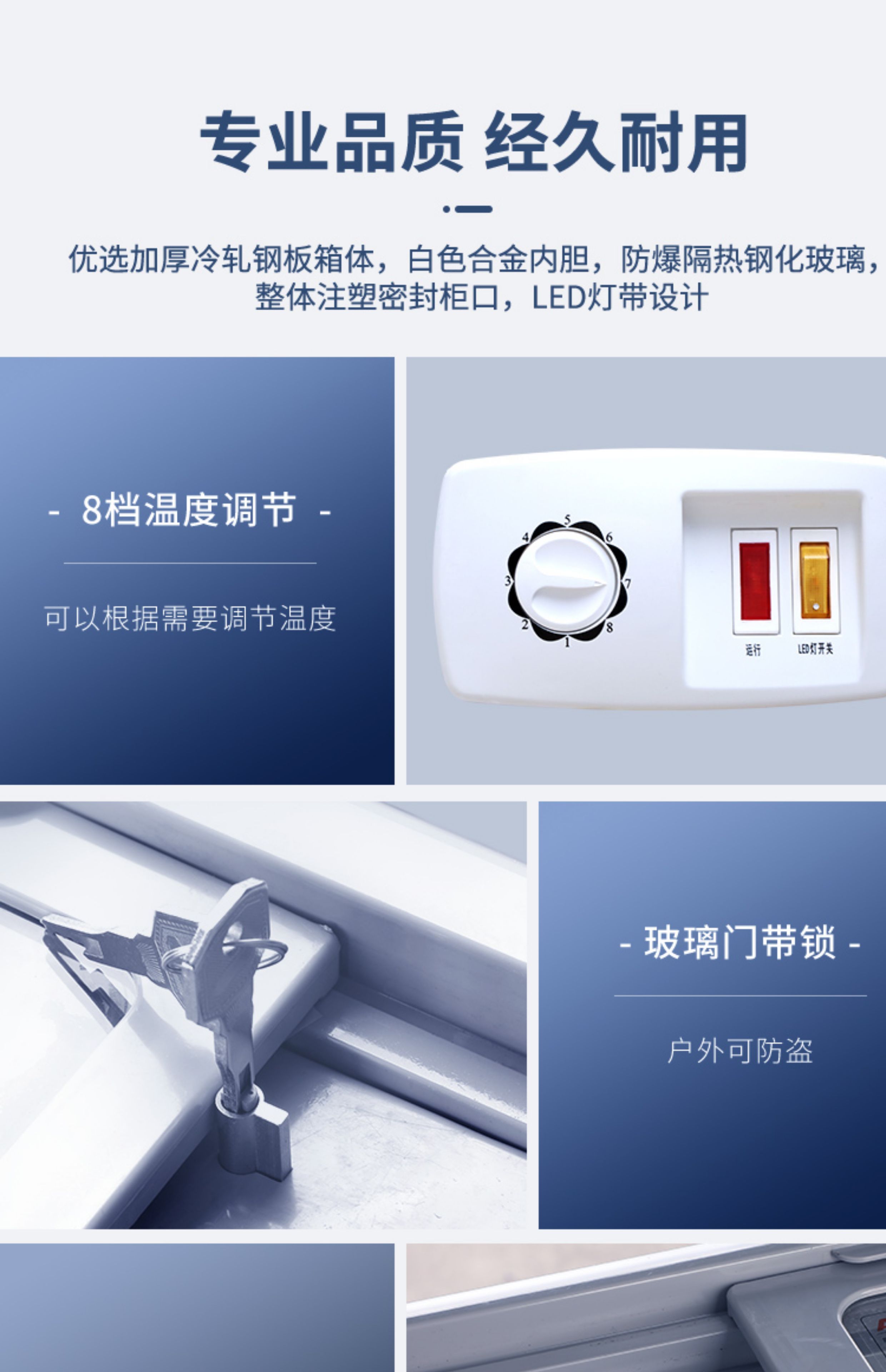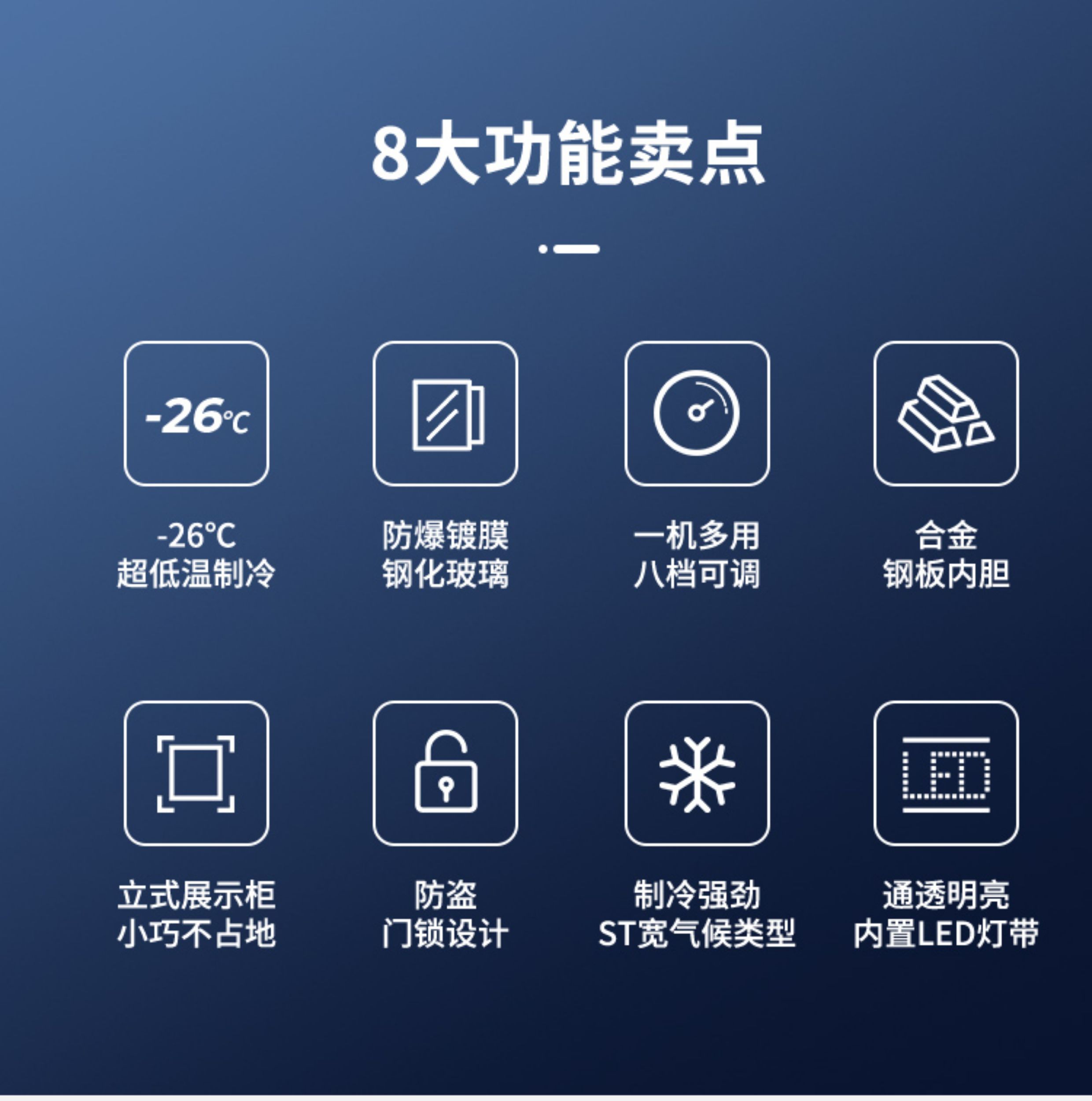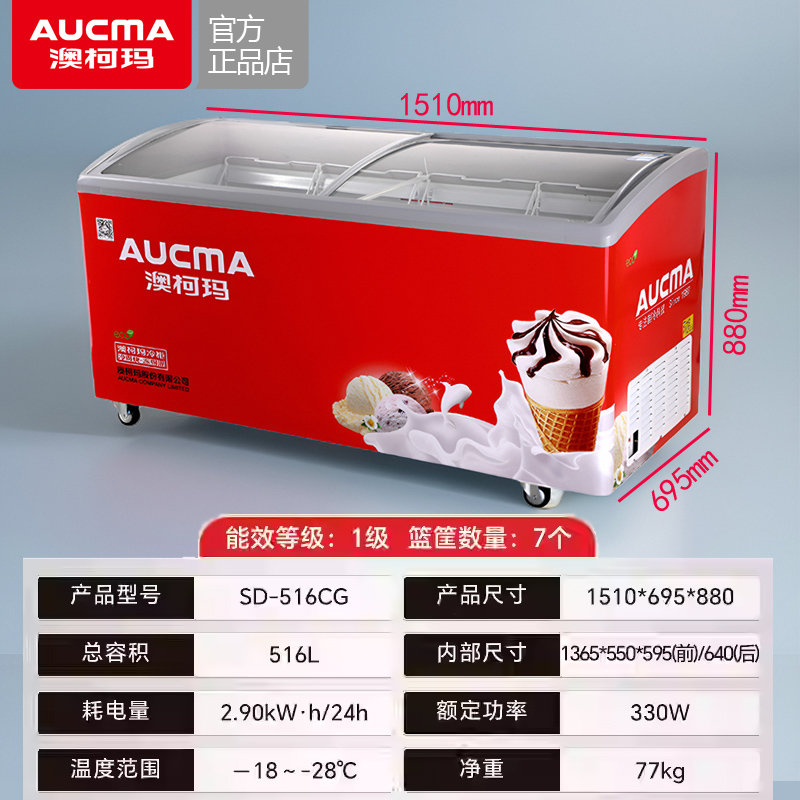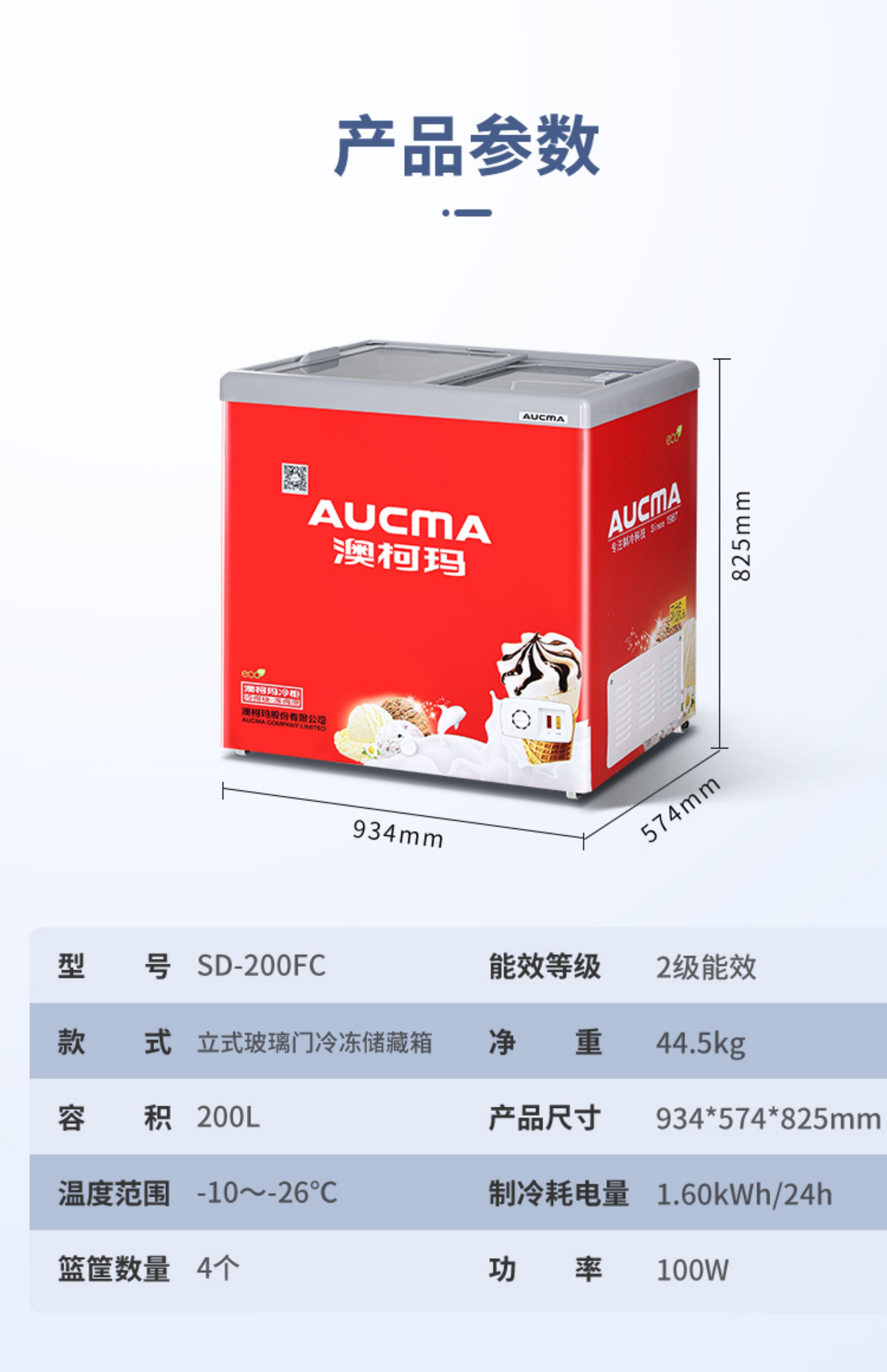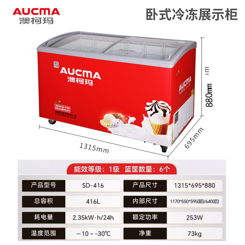 澳柯玛冰柜商用展示柜超市雪糕柜卧式冷柜弧形玻璃冰箱雪柜保鲜柜