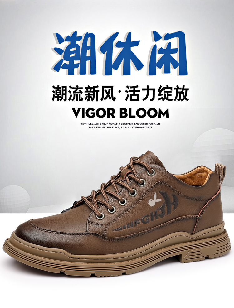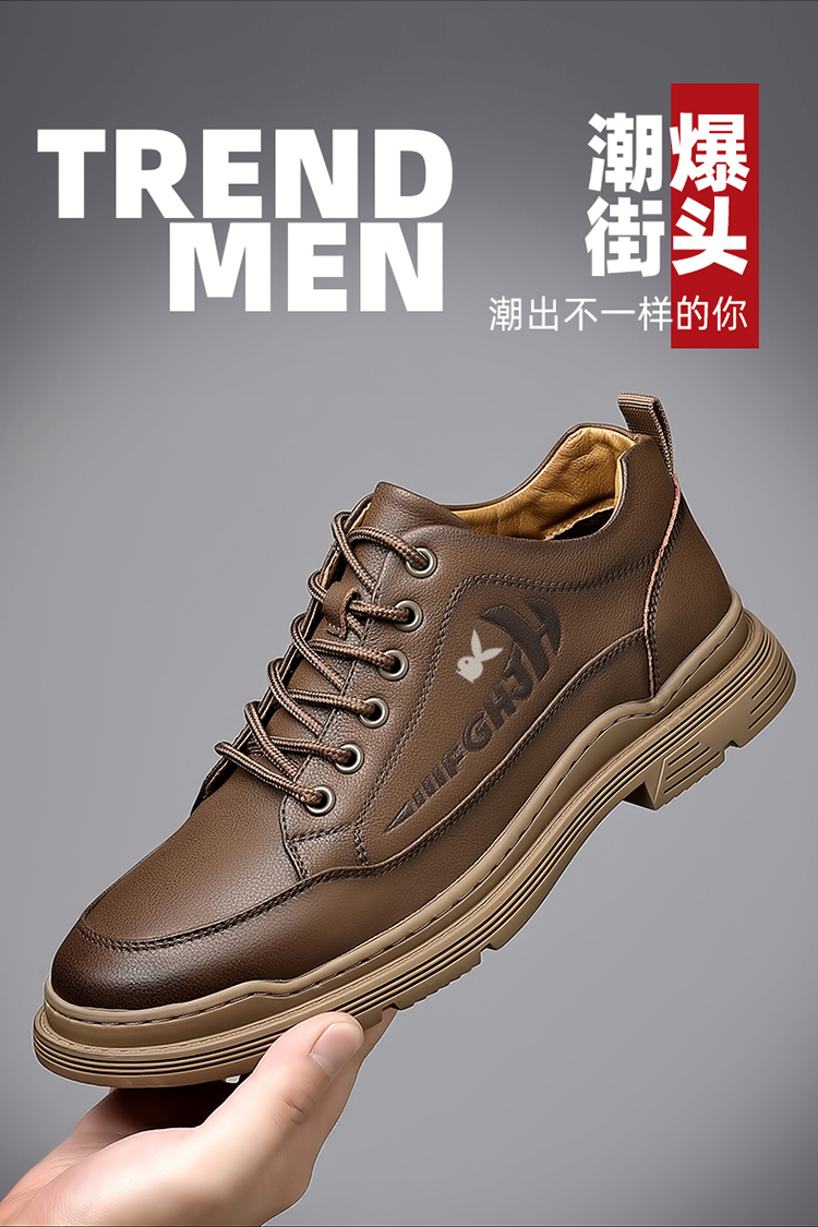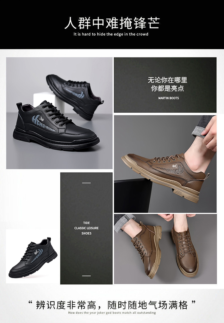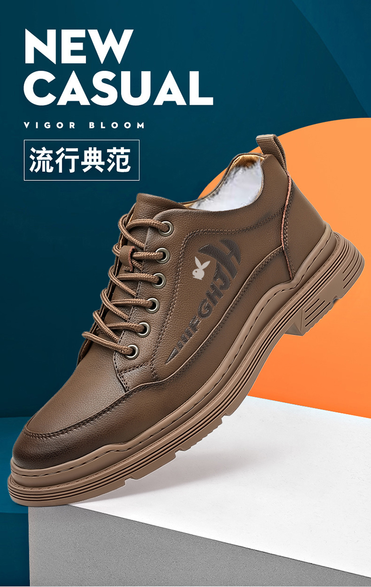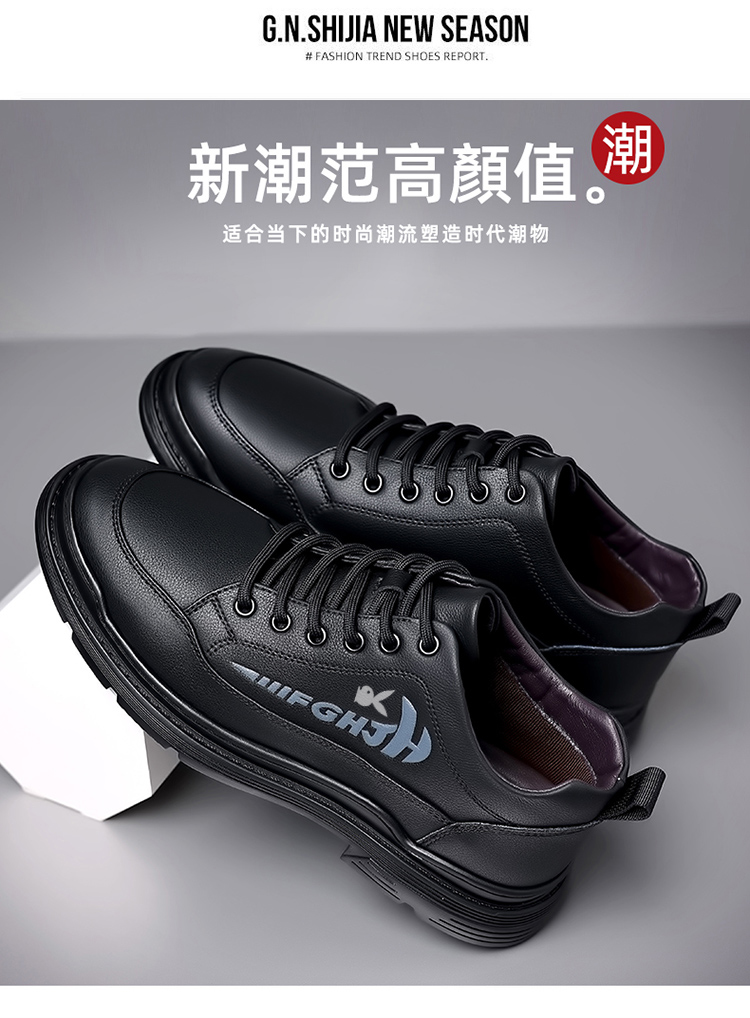 头层牛皮男鞋冬季真皮商务休闲皮鞋内增高加绒棉鞋高帮马丁短靴子