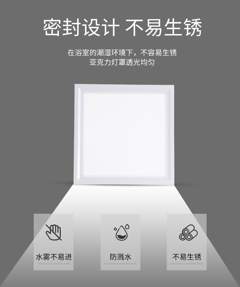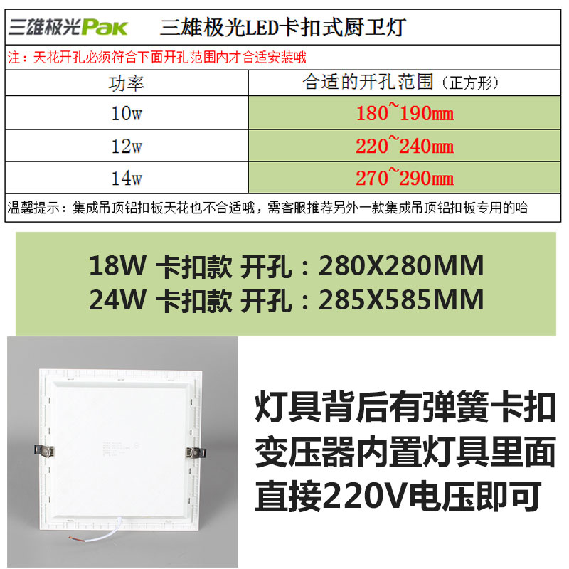 三雄极光厨卫灯嵌入式扣板平板灯超薄led集成吊顶灯具厨房灯