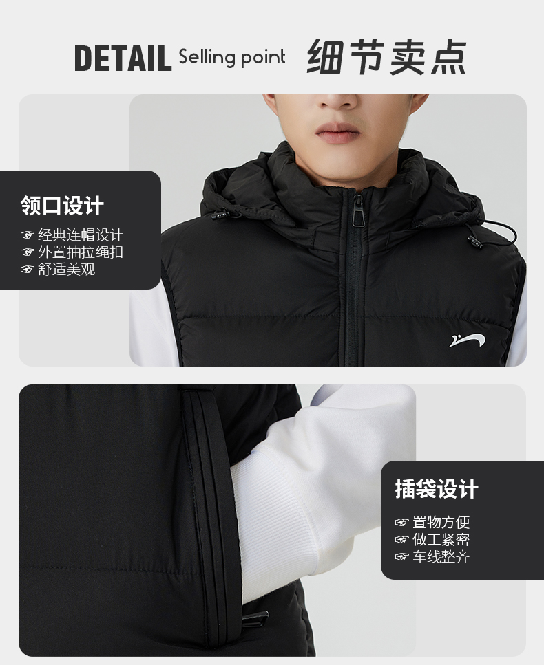 贵人鸟棉马甲男款冬季2024新款男士外穿连帽马夹女坎肩保暖背心秋