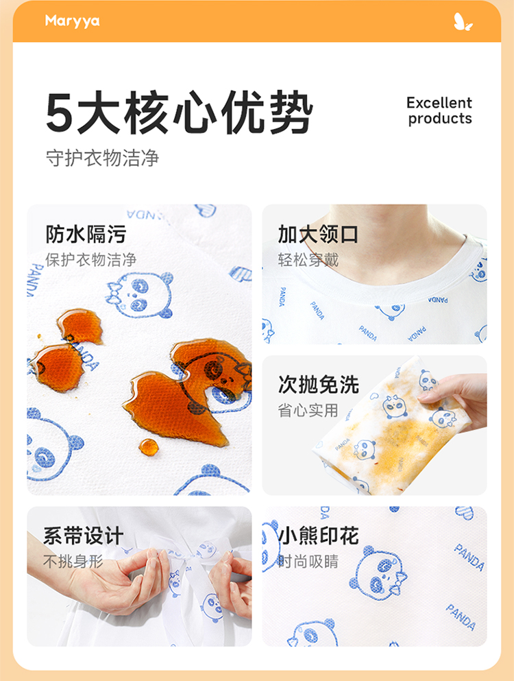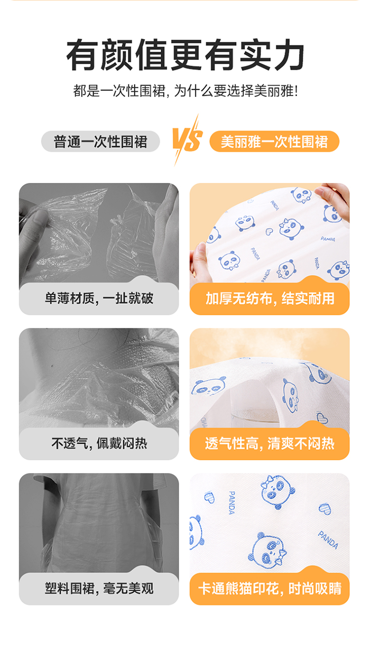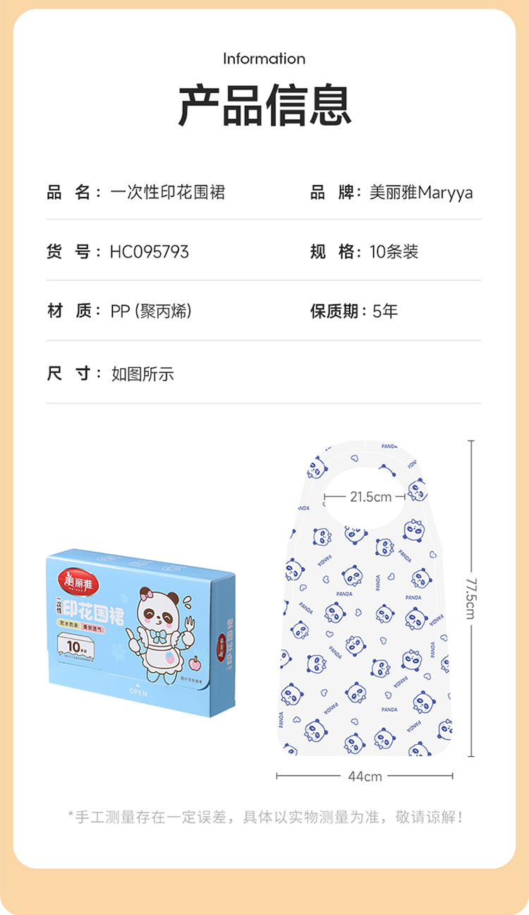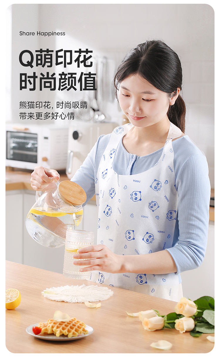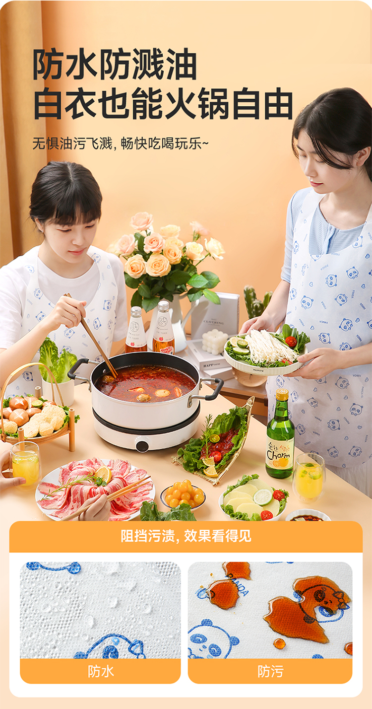 美丽雅一次性围裙印花家用厨房防水防油防污用餐吃饭烧烤围裙罩衣