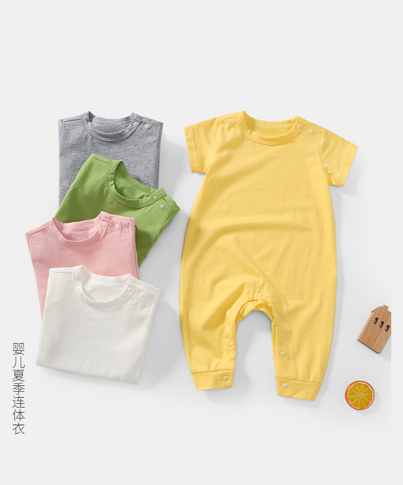初生儿衣服长裤连体衣婴儿短袖薄款哈衣满月宝宝爬爬服夏季空调服