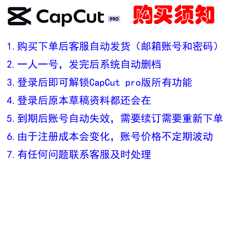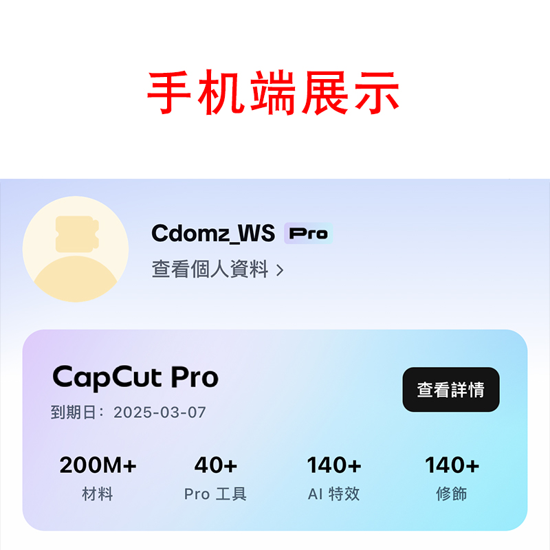 手机平板电脑三段通用Capcut Pro 国际版 capcutvip会员一人一号